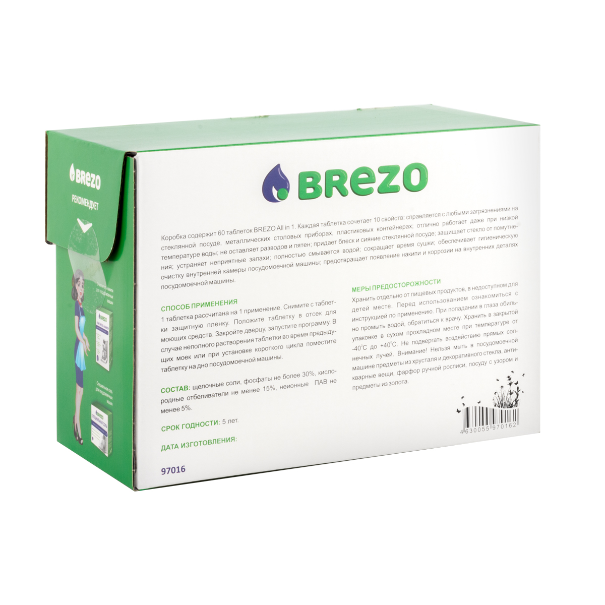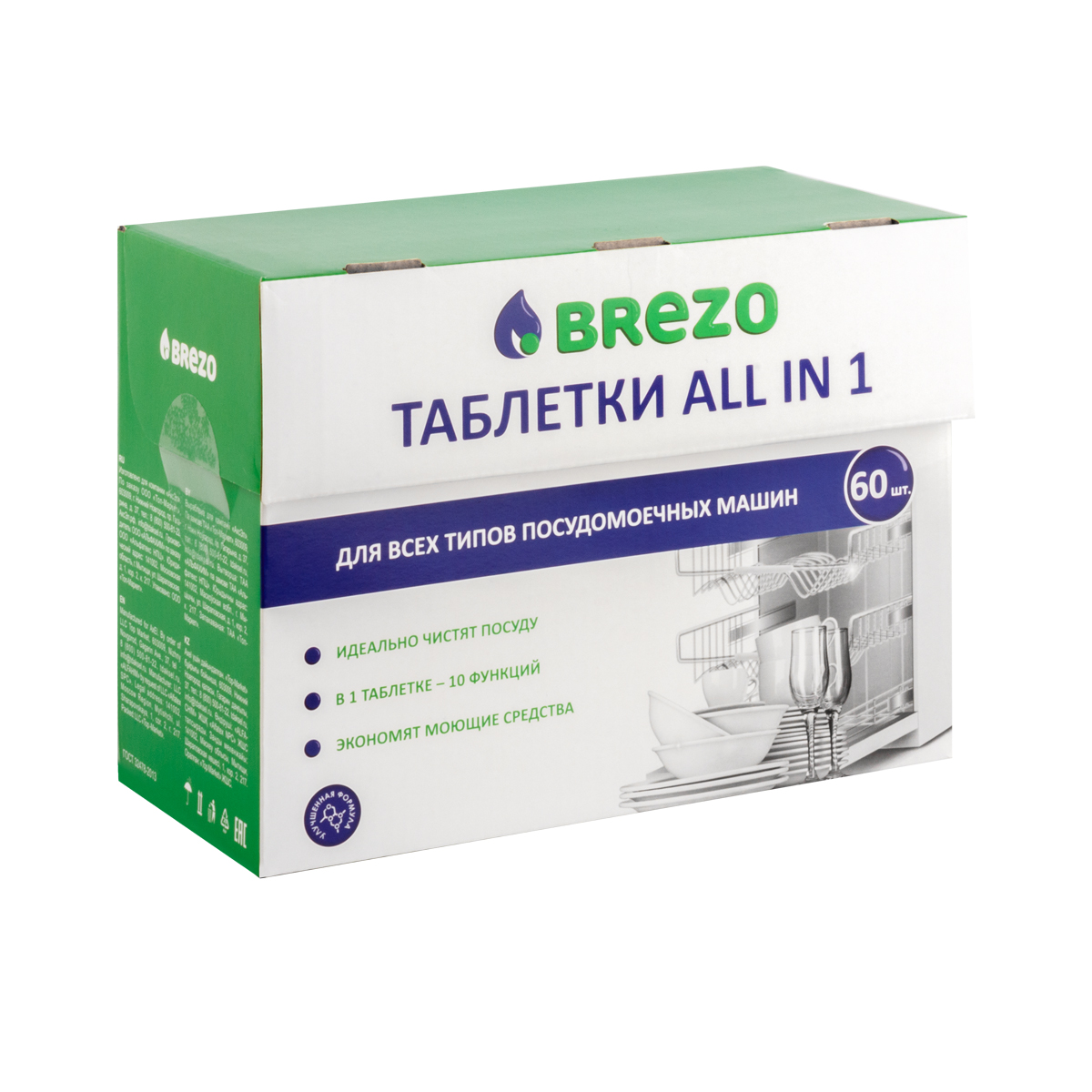 Таблетки BREZO ALL IN 1, 100 шт., бесфосфатные для посудомоечной машины