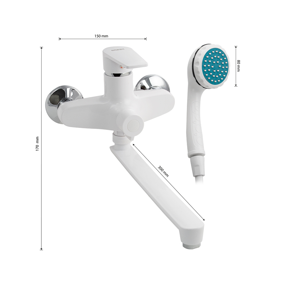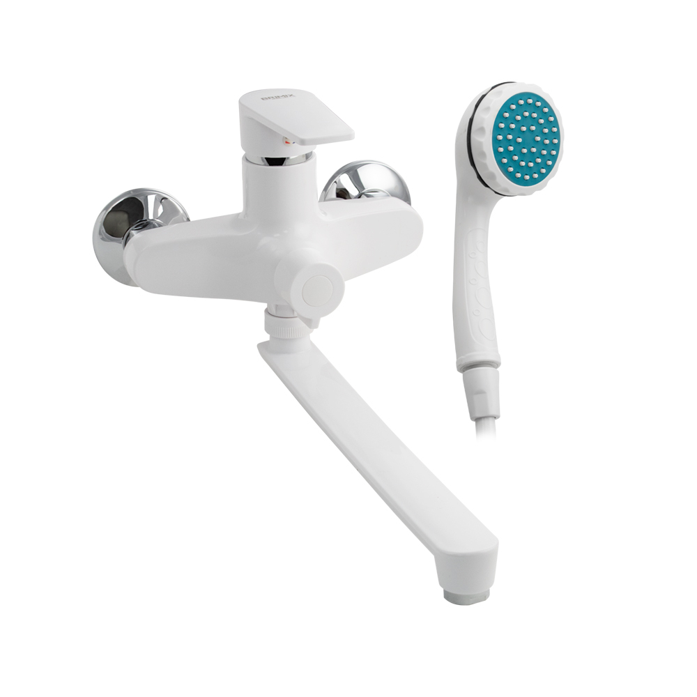 Смеситель для ванны и душа BRIMIX с длинным изливом.Из высокопрочного ABS пластика.Цвет БЕЛЫЙ.