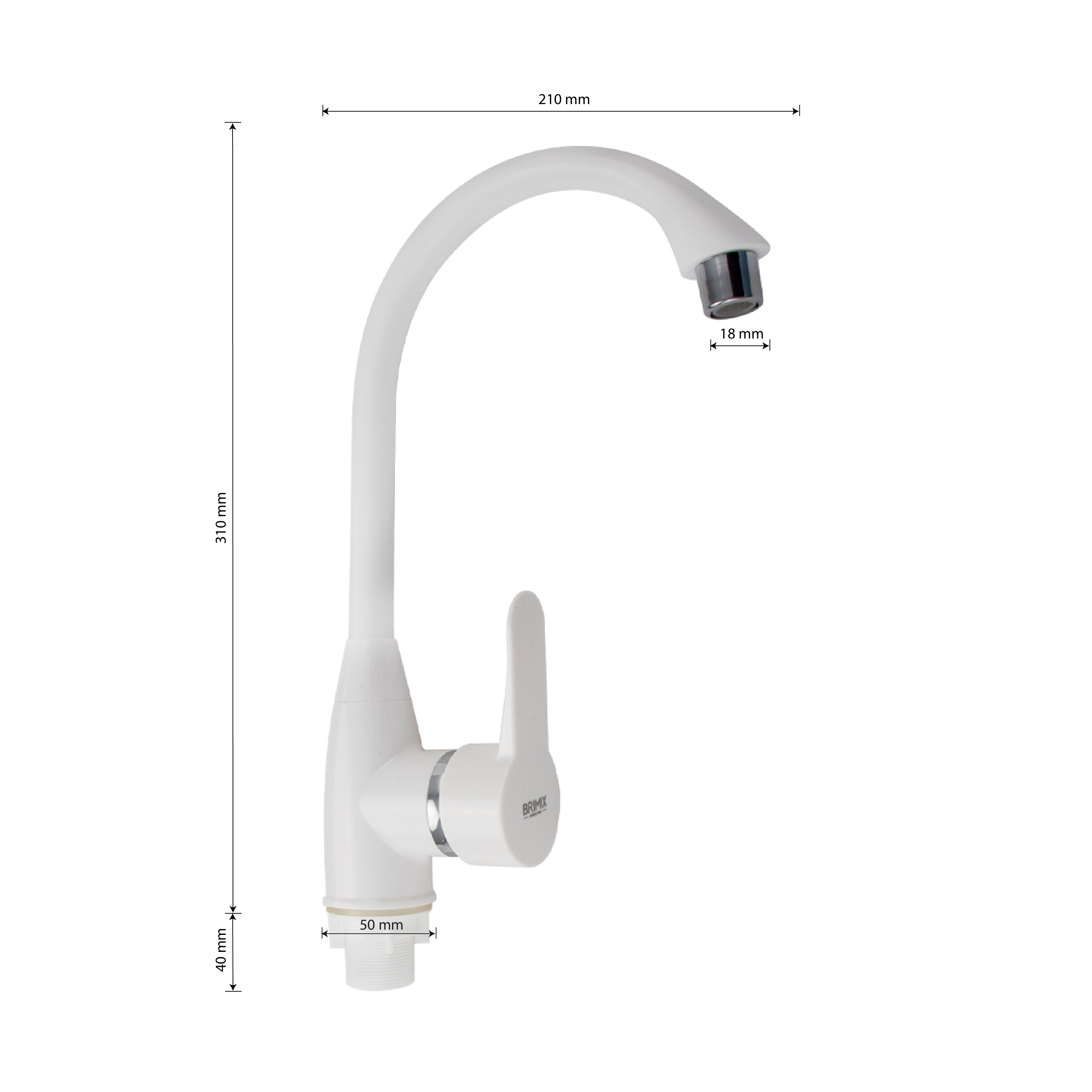 Смеситель для кухни BRIMIX из высокопрочного ABS пластика.арт 592.Цвет БЕЛЫЙ.