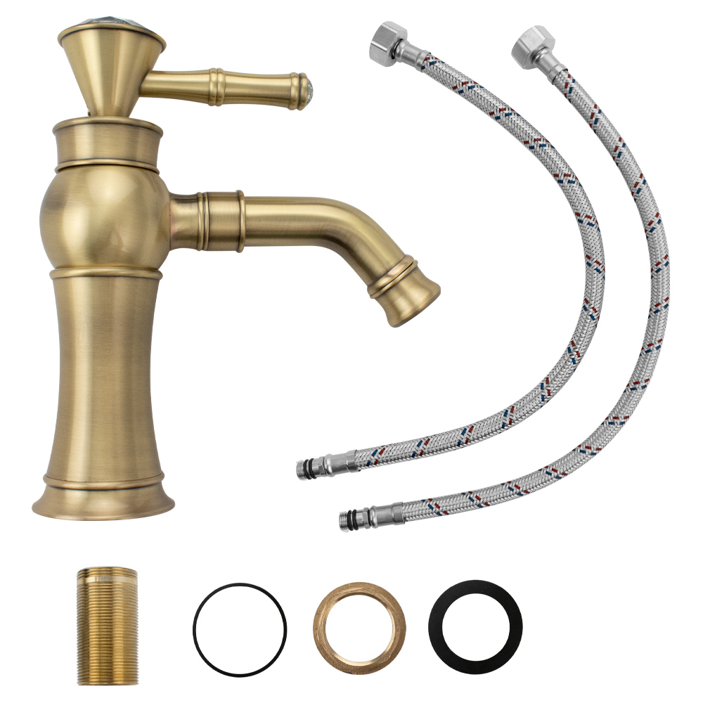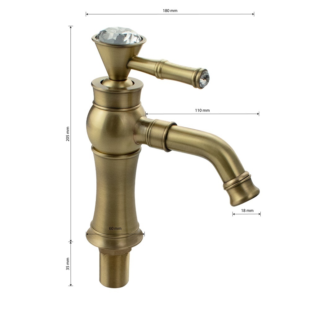 Смеситель шаровый для раковины, под БРОНЗУ , ручка с большим КРИСТАЛЛОМ