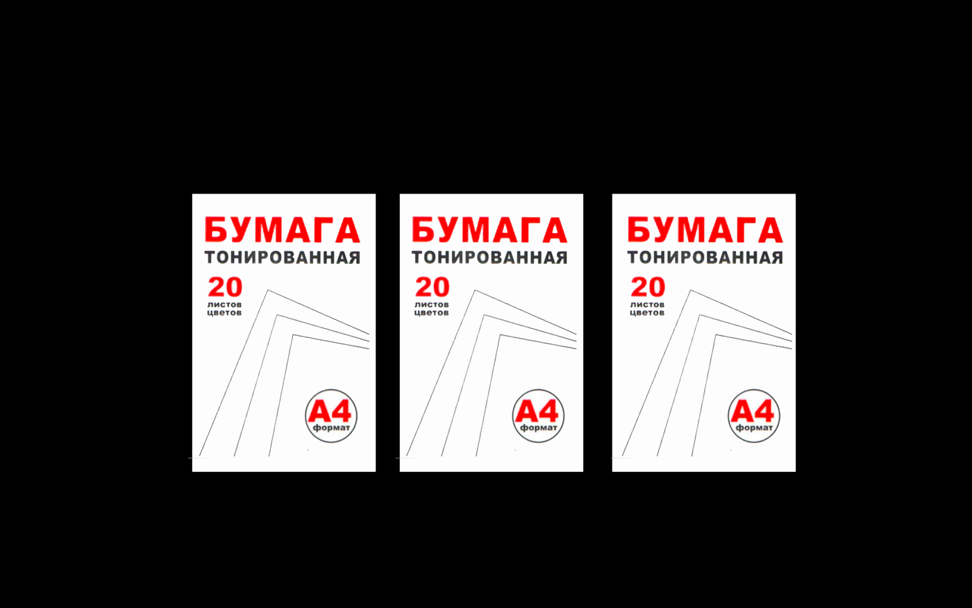 Бумага цветная тонированная 20 листов 20 цветов. Набор из 3-х пачек