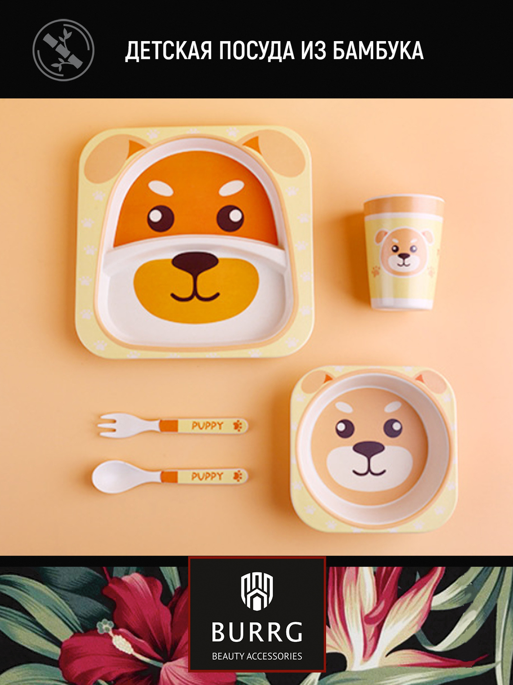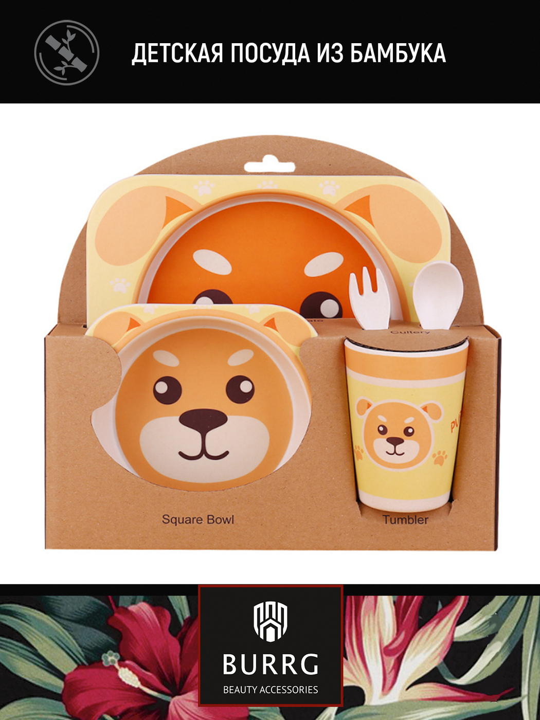 Набор бамбуковой эко-посуды для кормления детей BURRG, 5 предметов