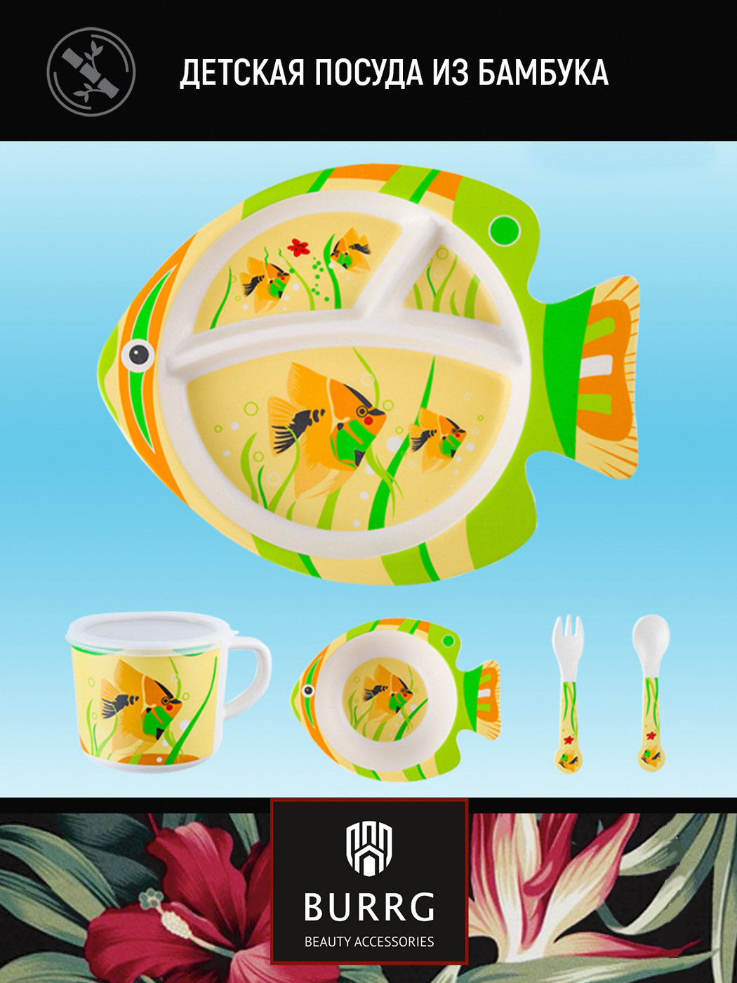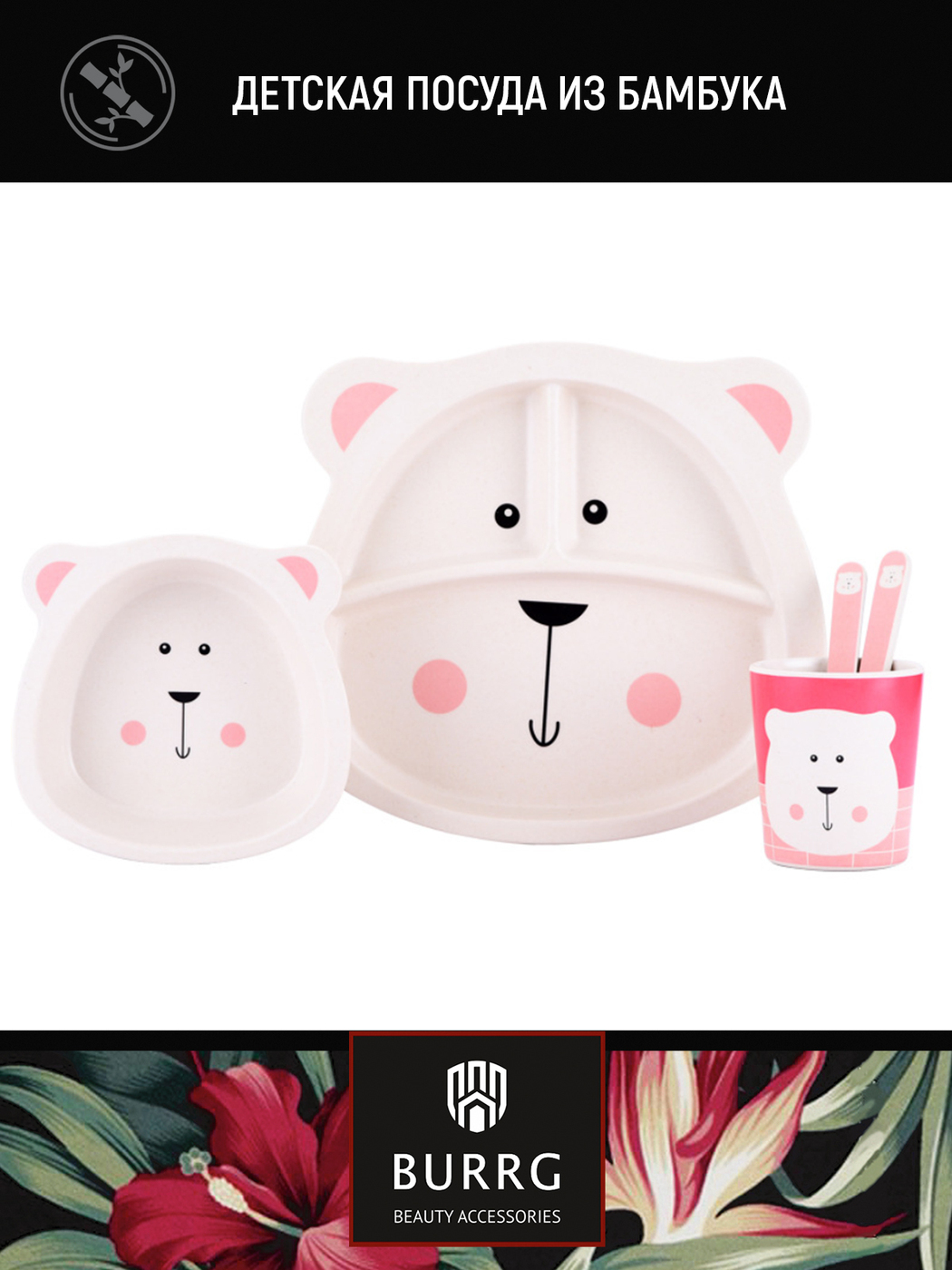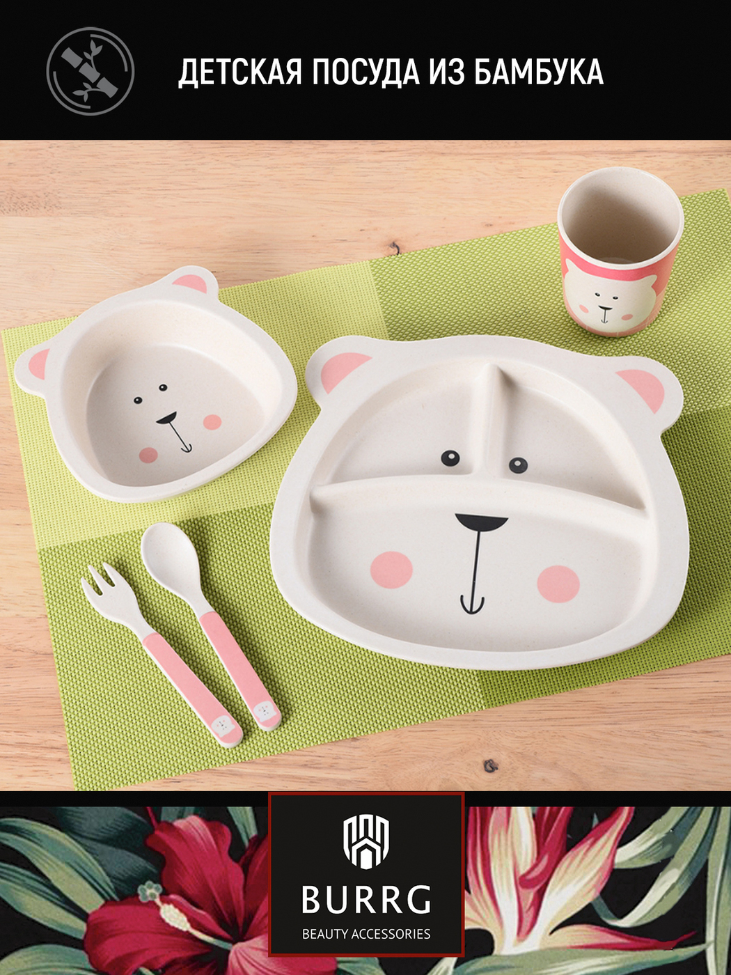 Набор бамбуковой эко-посуды для кормления детей BURRG, 5 предметов
