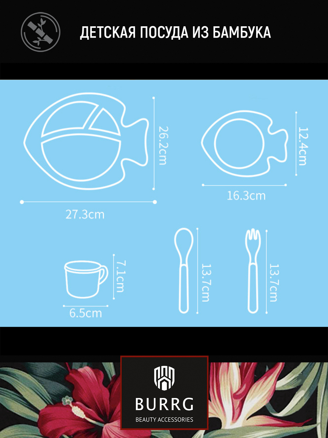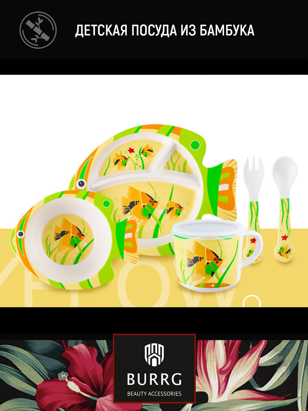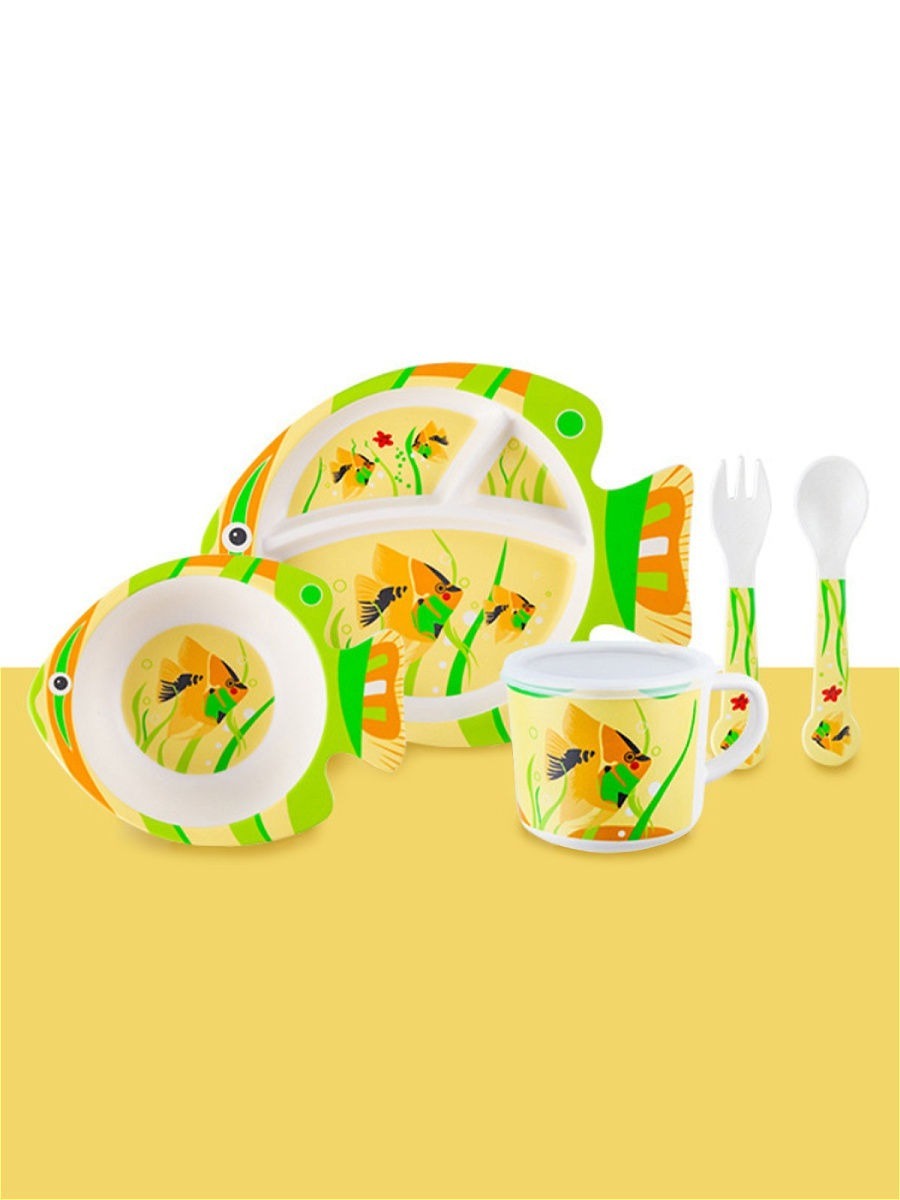 Набор бамбуковой эко-посуды для кормления детей BURRG, 5 предметов