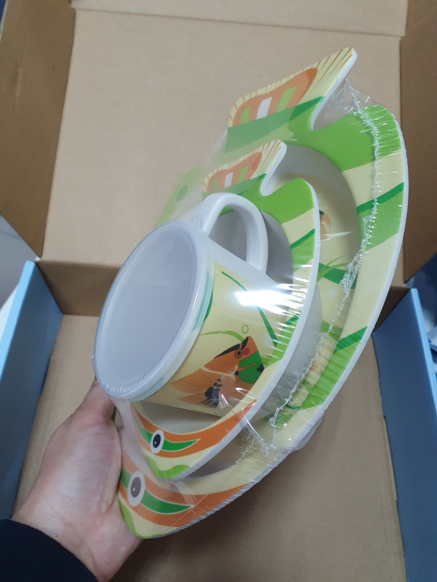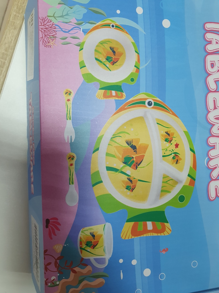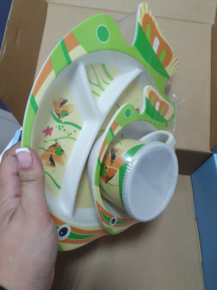 Набор бамбуковой посуды для кормления детей BURRG Кит, 5 предметов