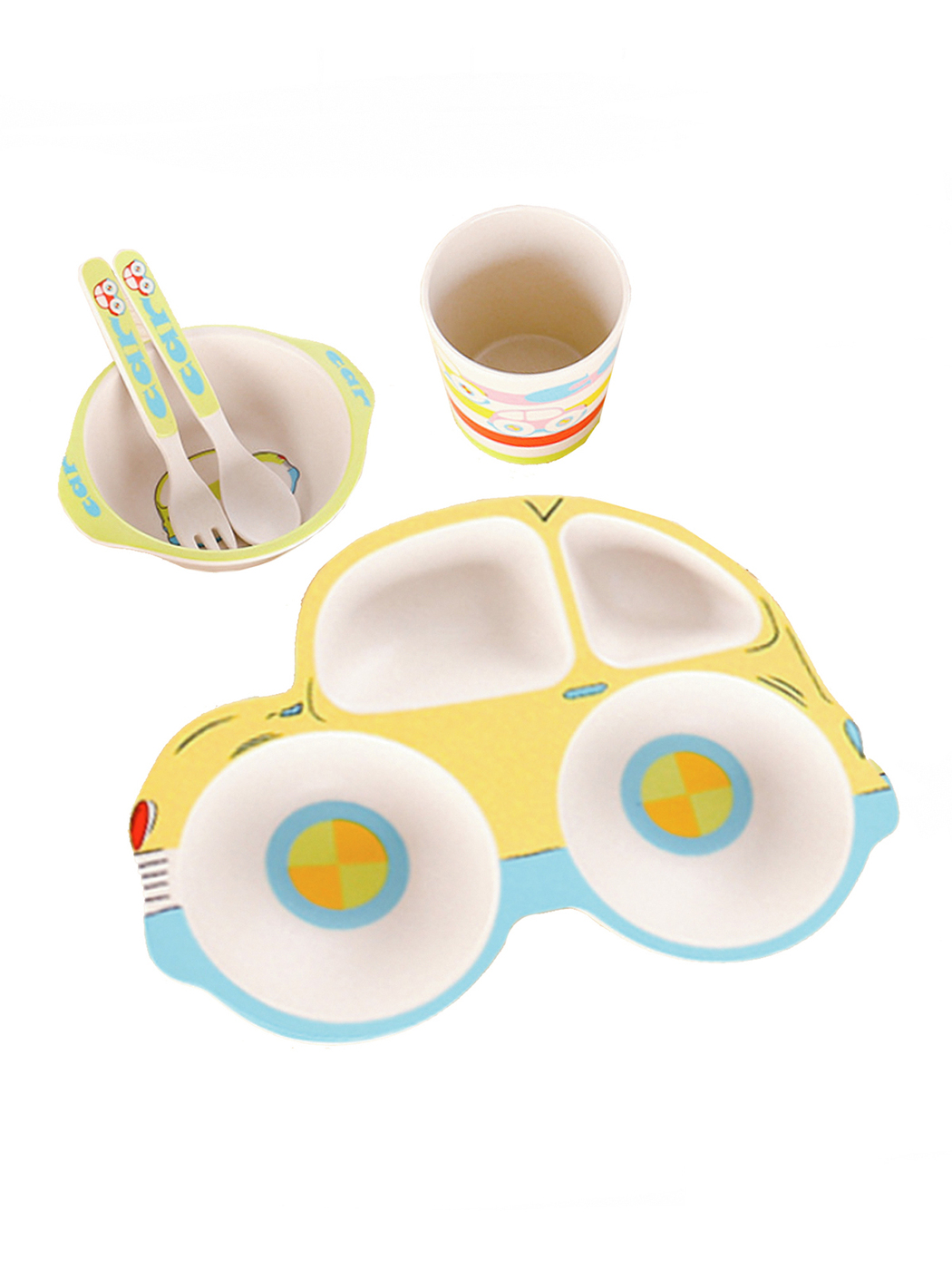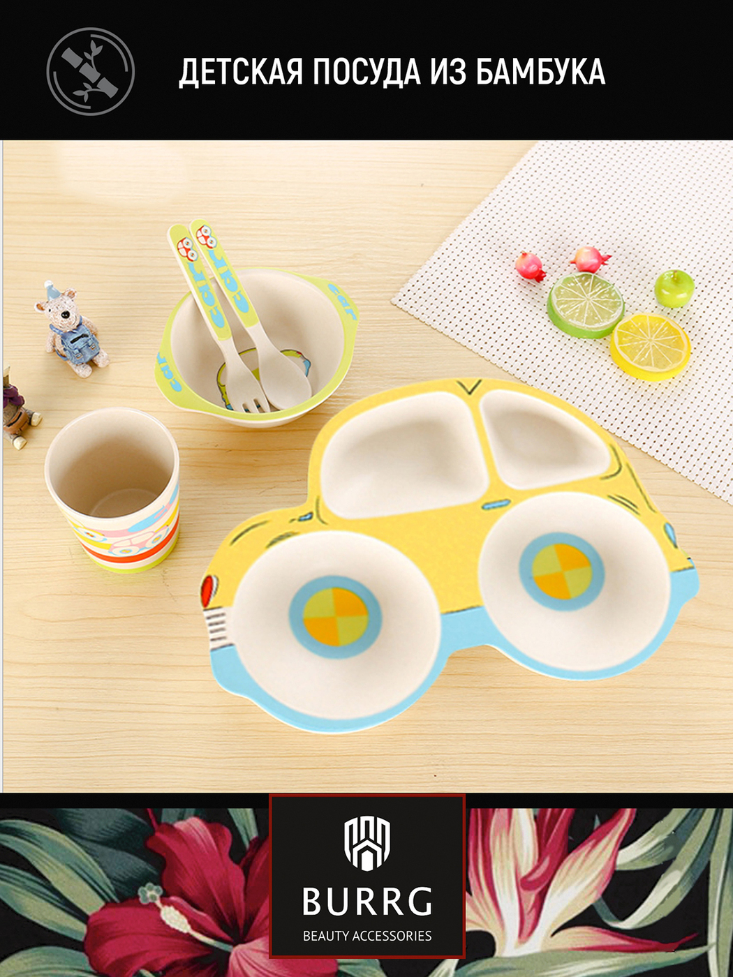 Набор бамбуковой посуды для кормления детей BURRG Машинка, 5 предметов