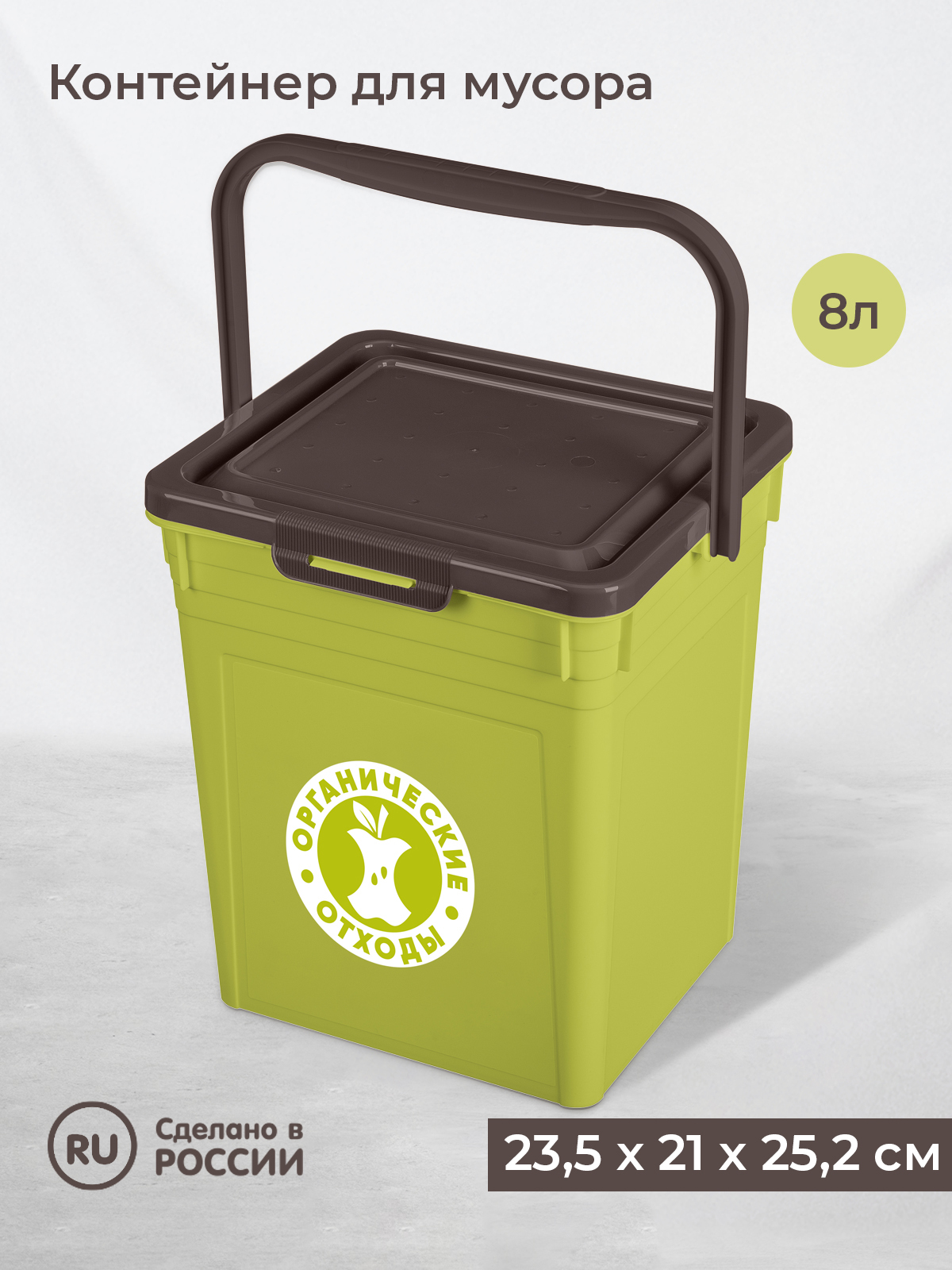 Мусорное ведро 8 литров с ручкой и крышкой, 23,5*21*25,2 см (зеленый), Бытпласт