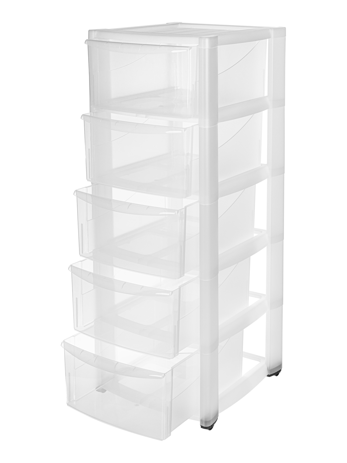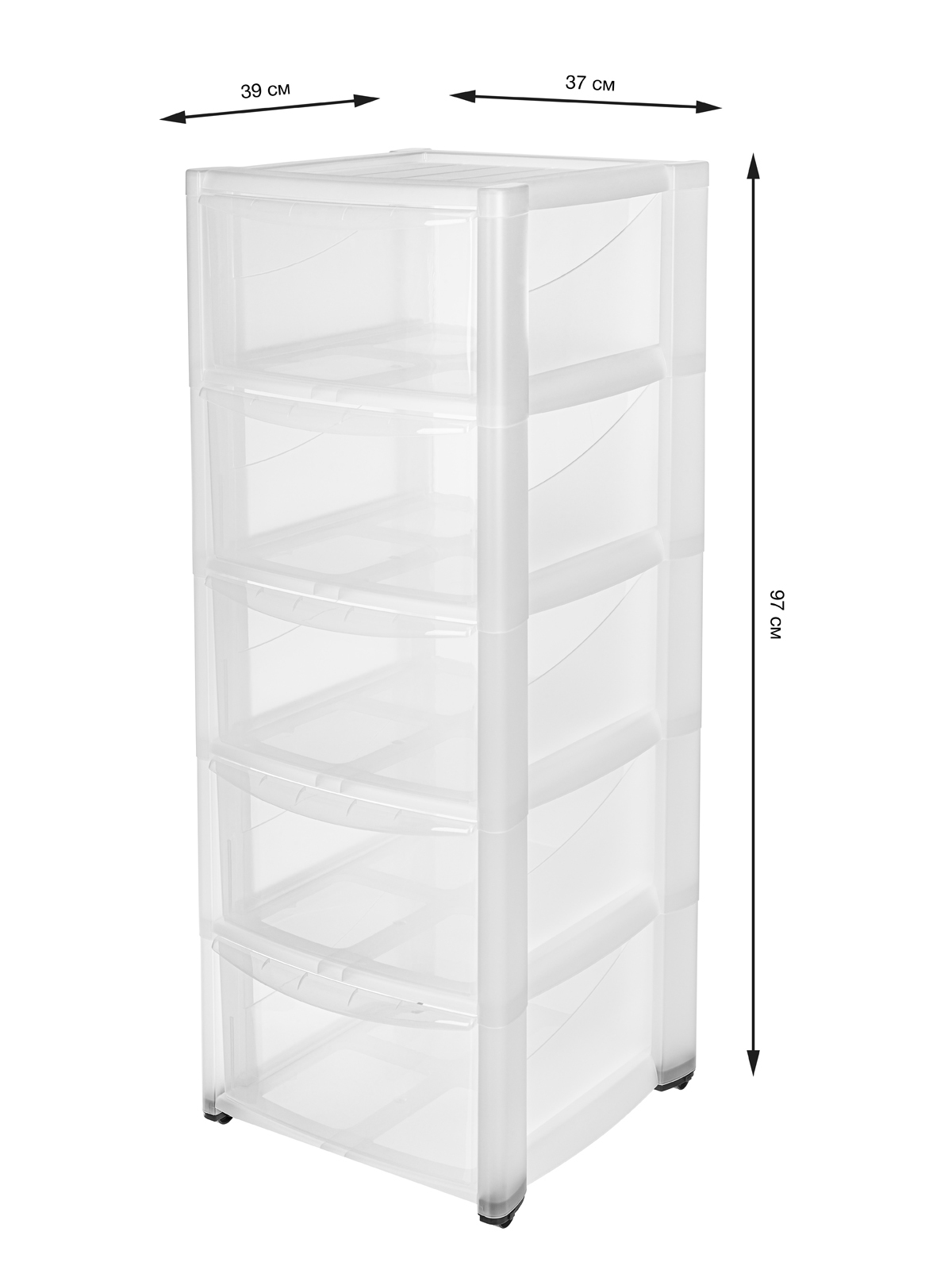 Комод на колесах "АМАДЕО" 5 ящиков, 390х370х970 мм (Прозрачный). Уцененный товар