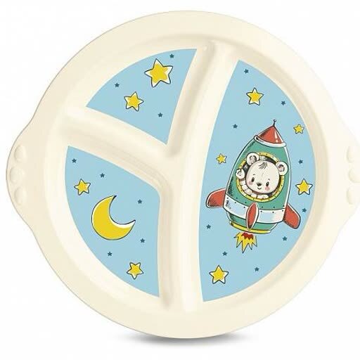 Тарелка детская 3-х секционная с голубым декором, (бежевый) набор из 3 штук