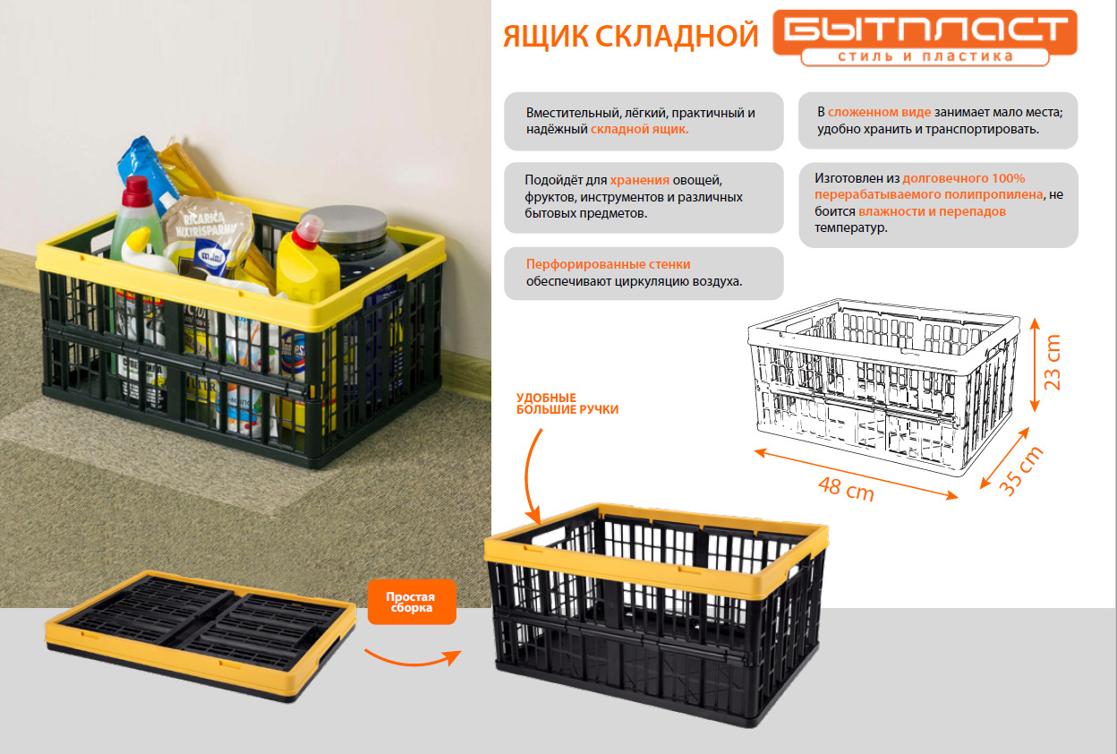 Ящик складной с перфорированными стенками 480х350х230 мм (желтый)