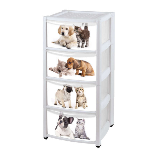 Комод на колесах с аппликацией 4 ящика (Бесцветный)