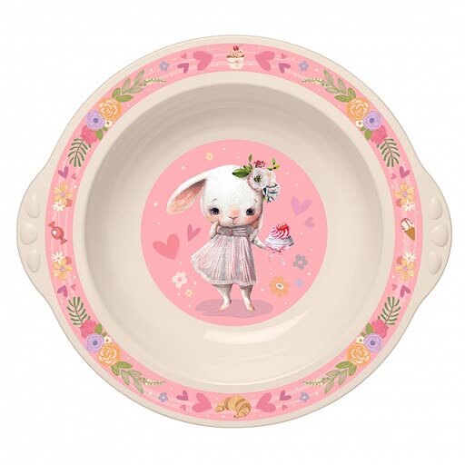 Тарелка детская глубокая с розовым декором, (бежевый)