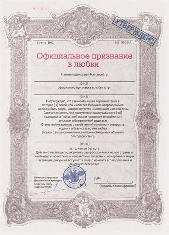 Грамота "Акт о безоговорочной капитуляции перед вашей неземной красотой"