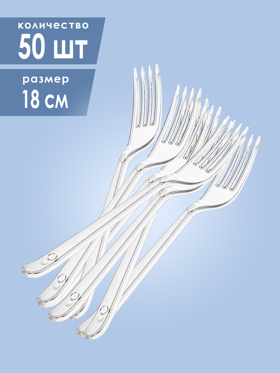 Вилки одноразовые пластиковые прозрачные, длина 18 см, 50 штук в упаковке