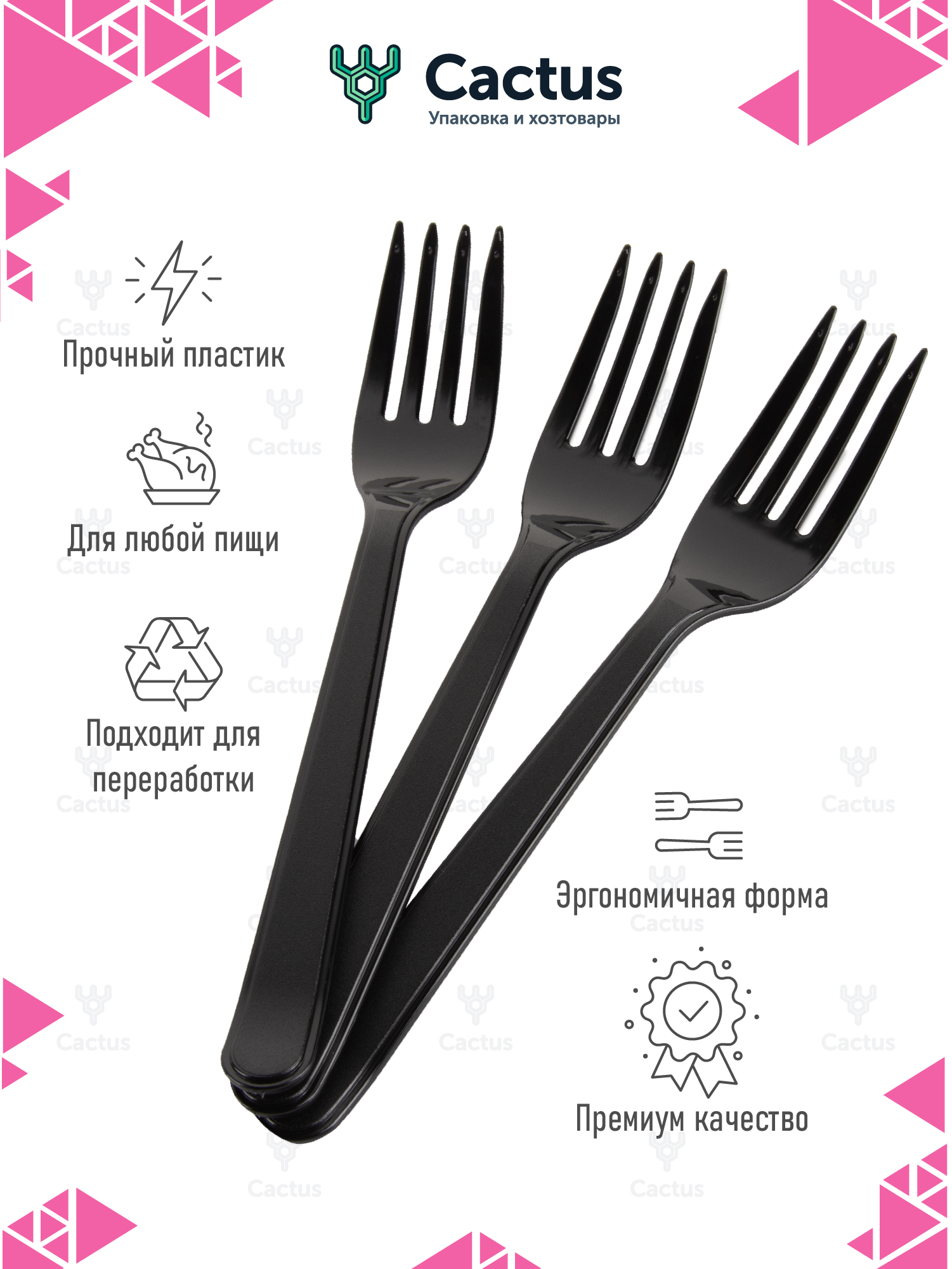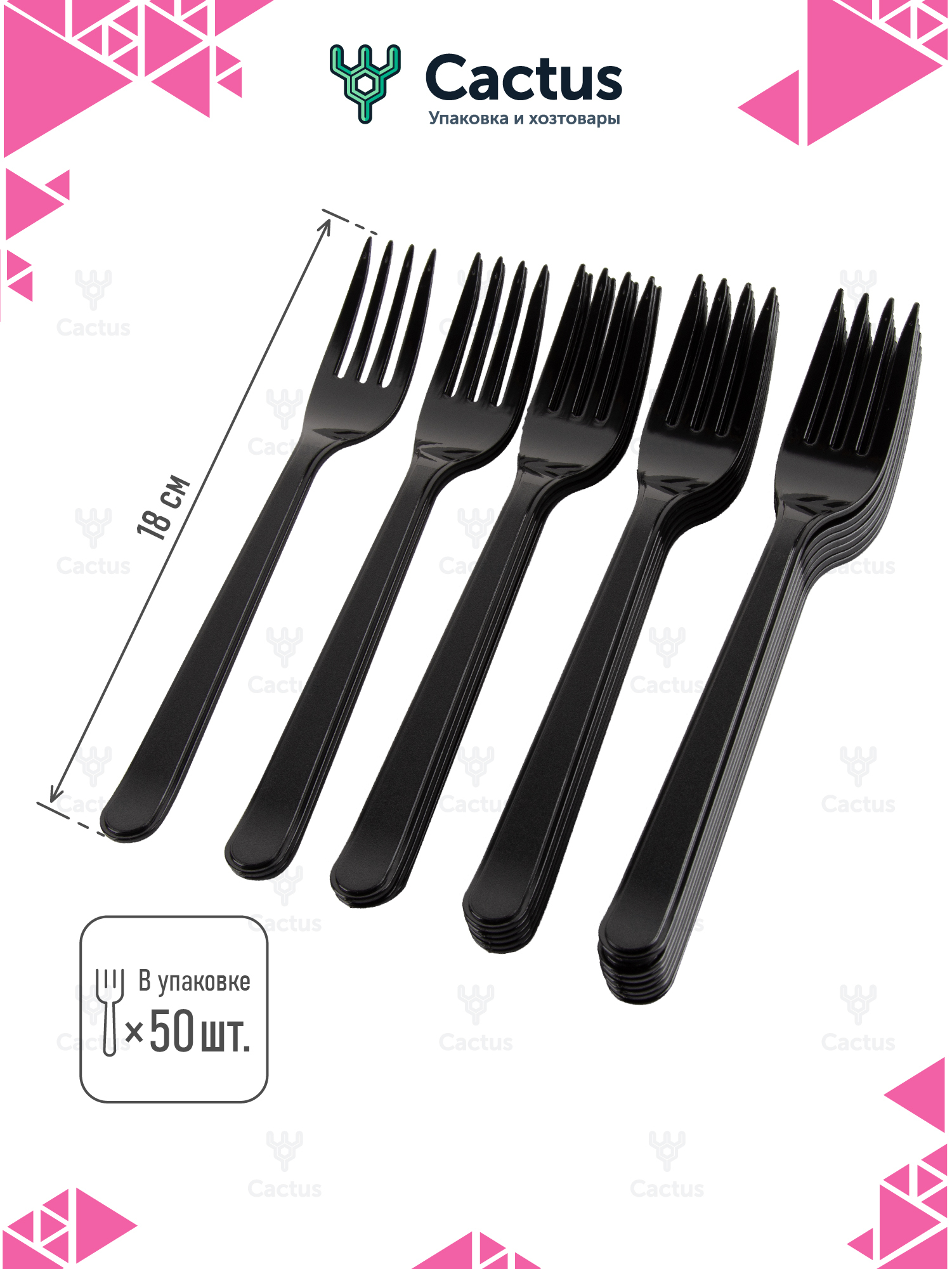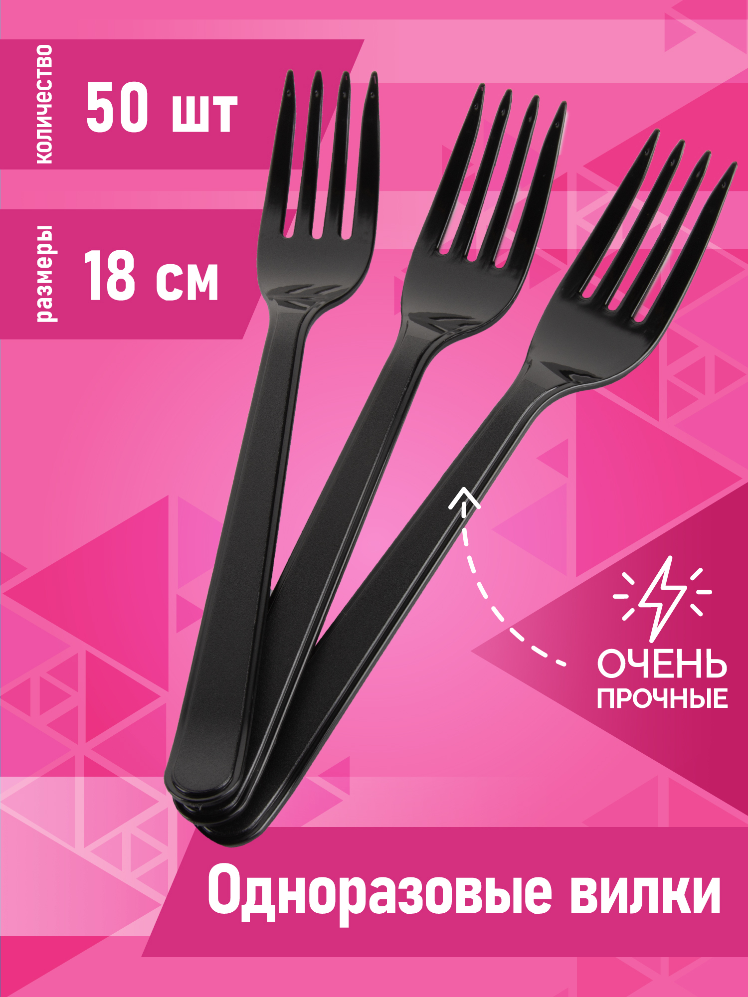 Вилки одноразовые пластиковые черные / посуда для праздника, длина 18 см, 50 штук в упаковке