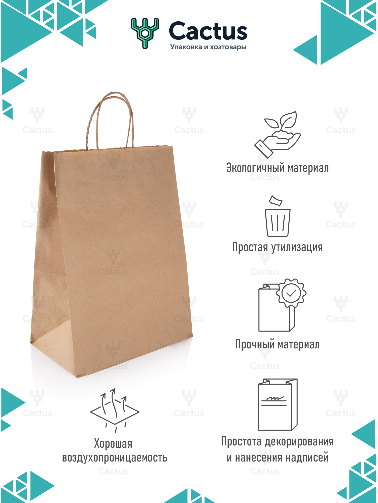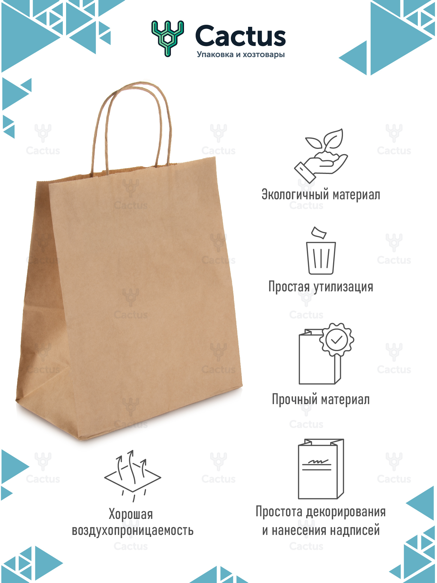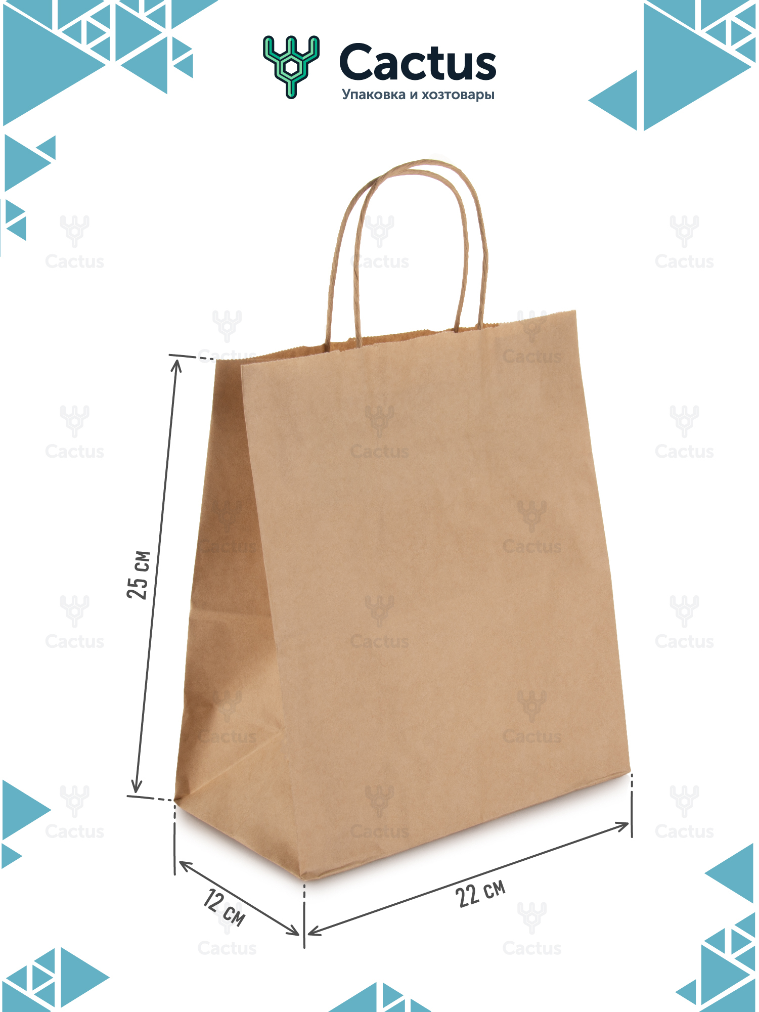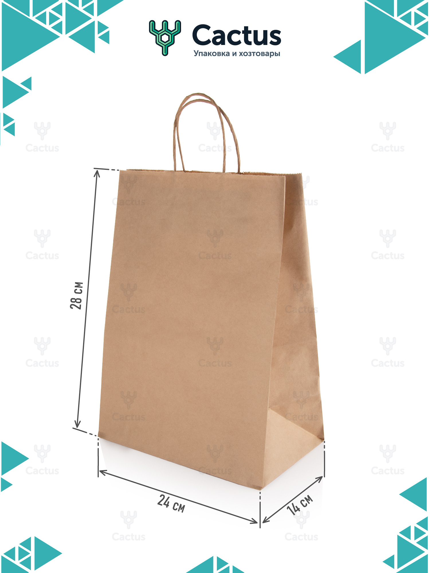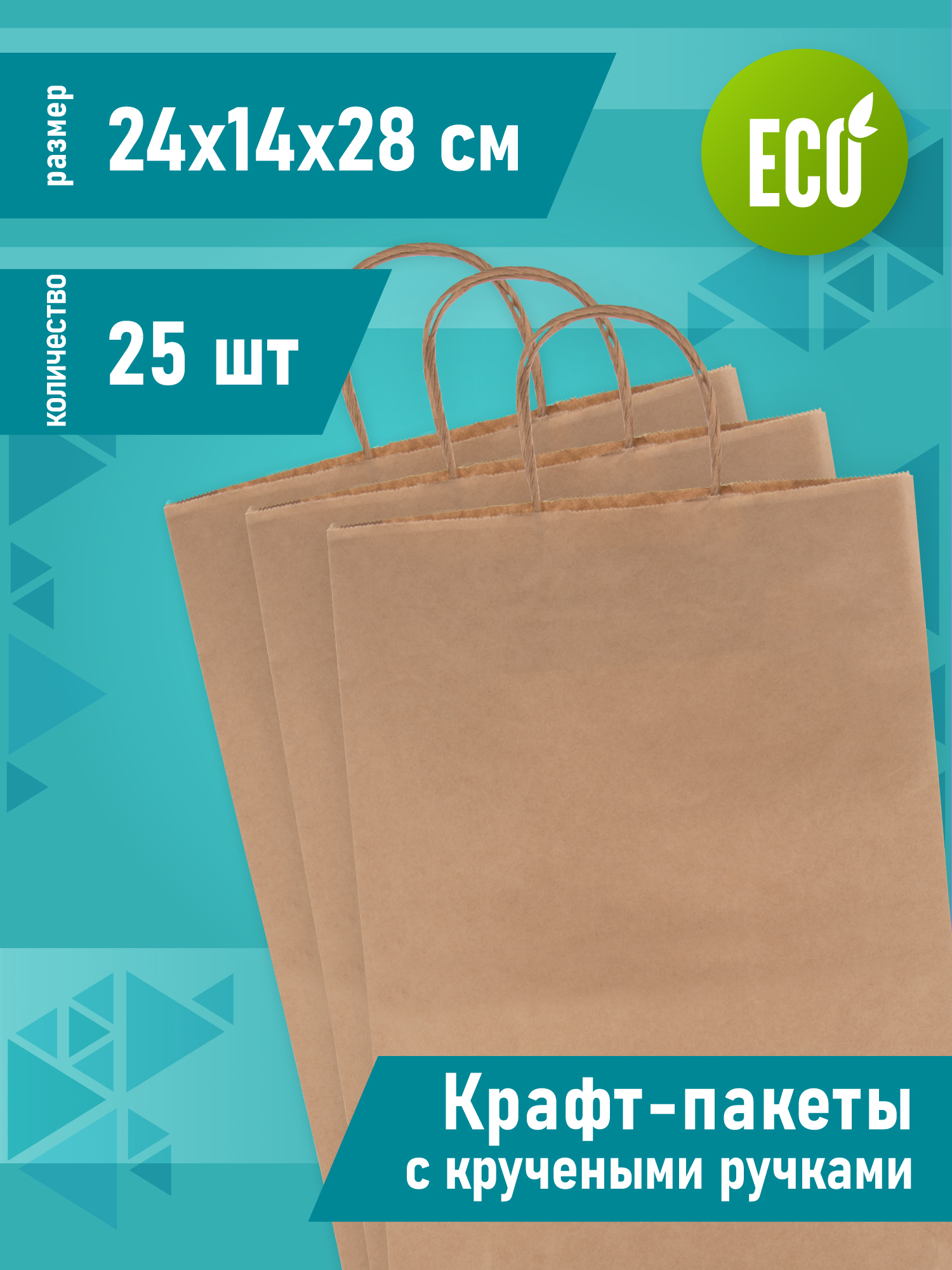 Крафт пакет бумажный с ручками, 24 х 14 х 28 см, 25 шт, пакеты пищевые бумажные, упаковочные