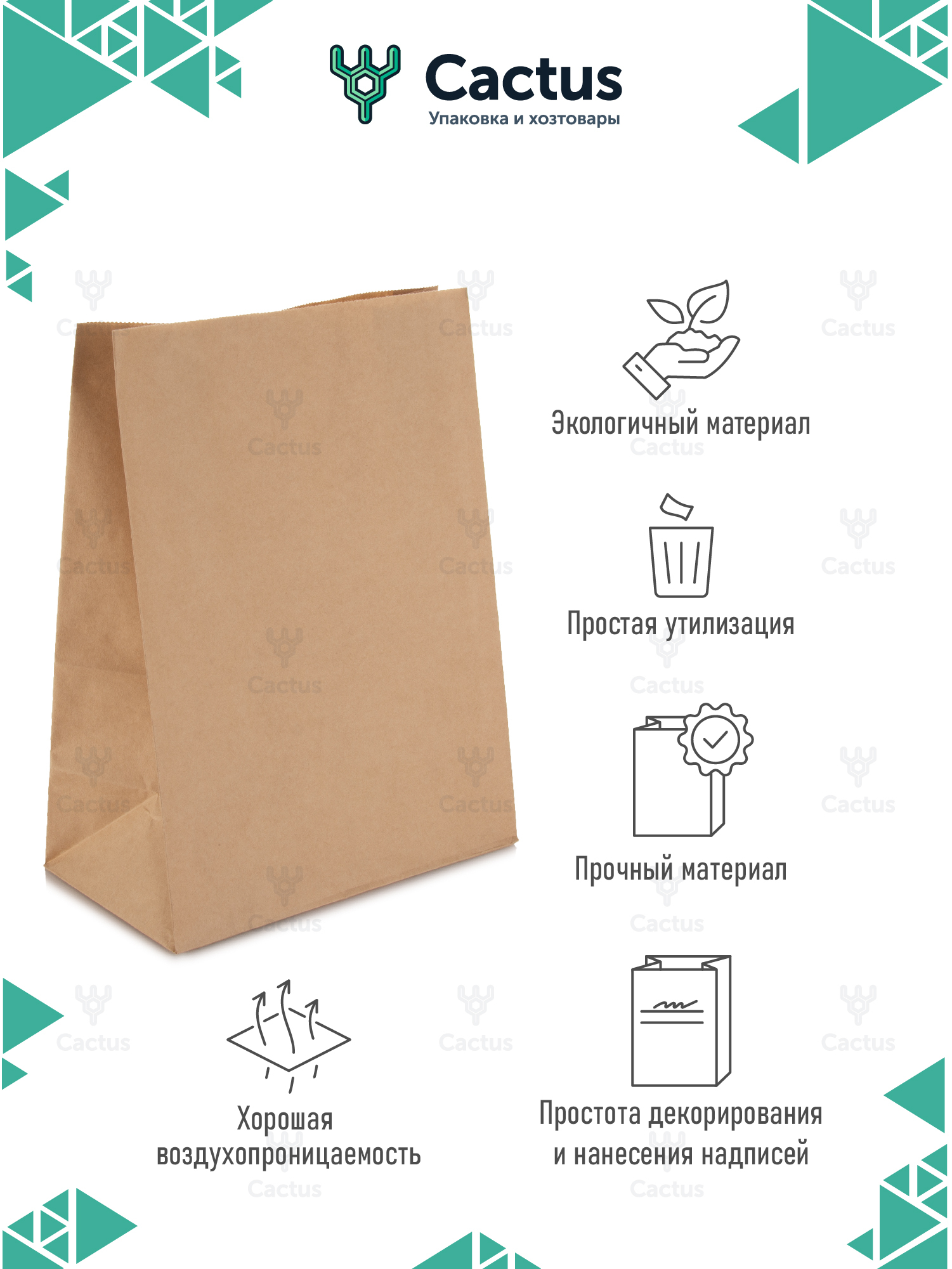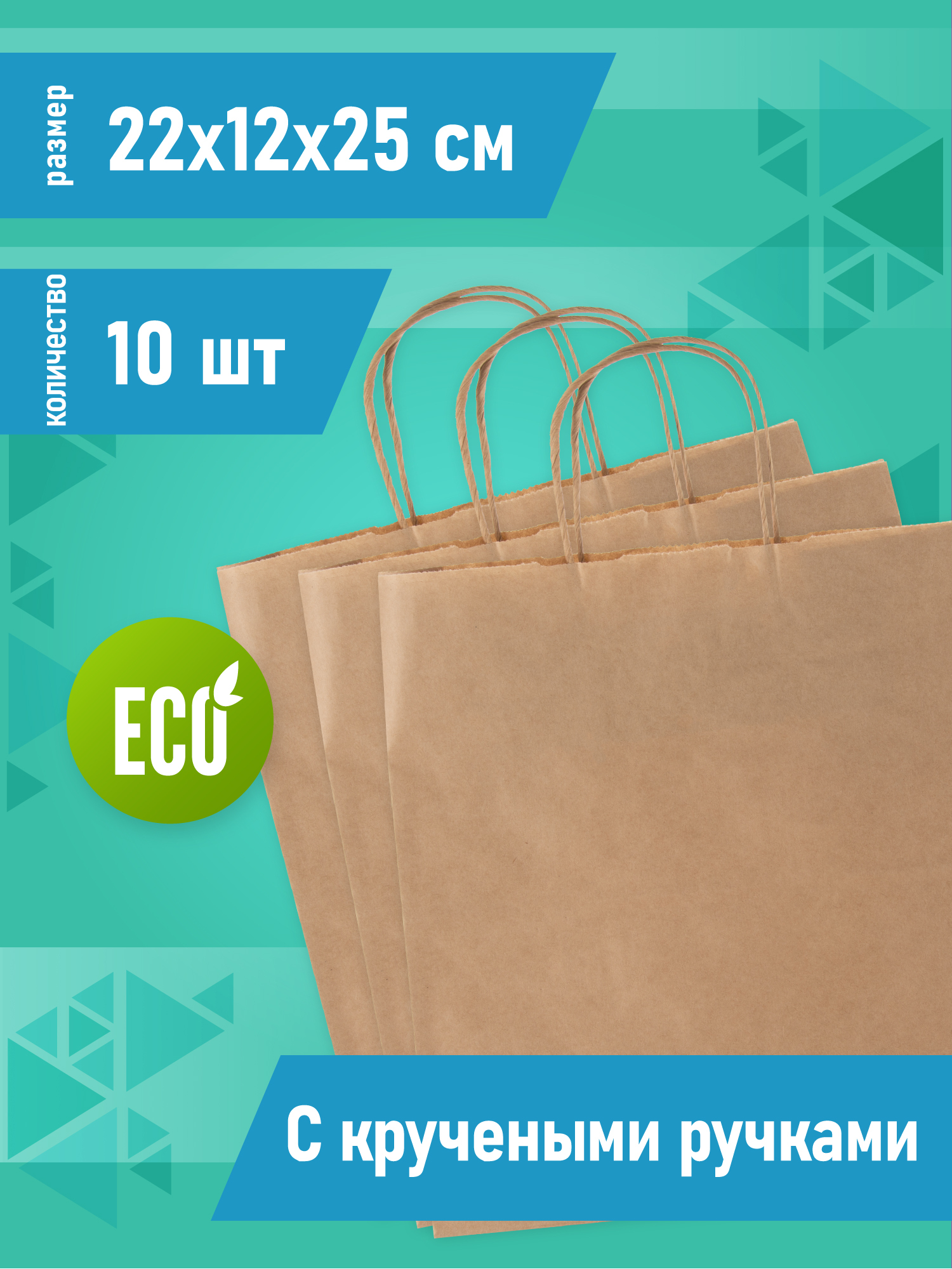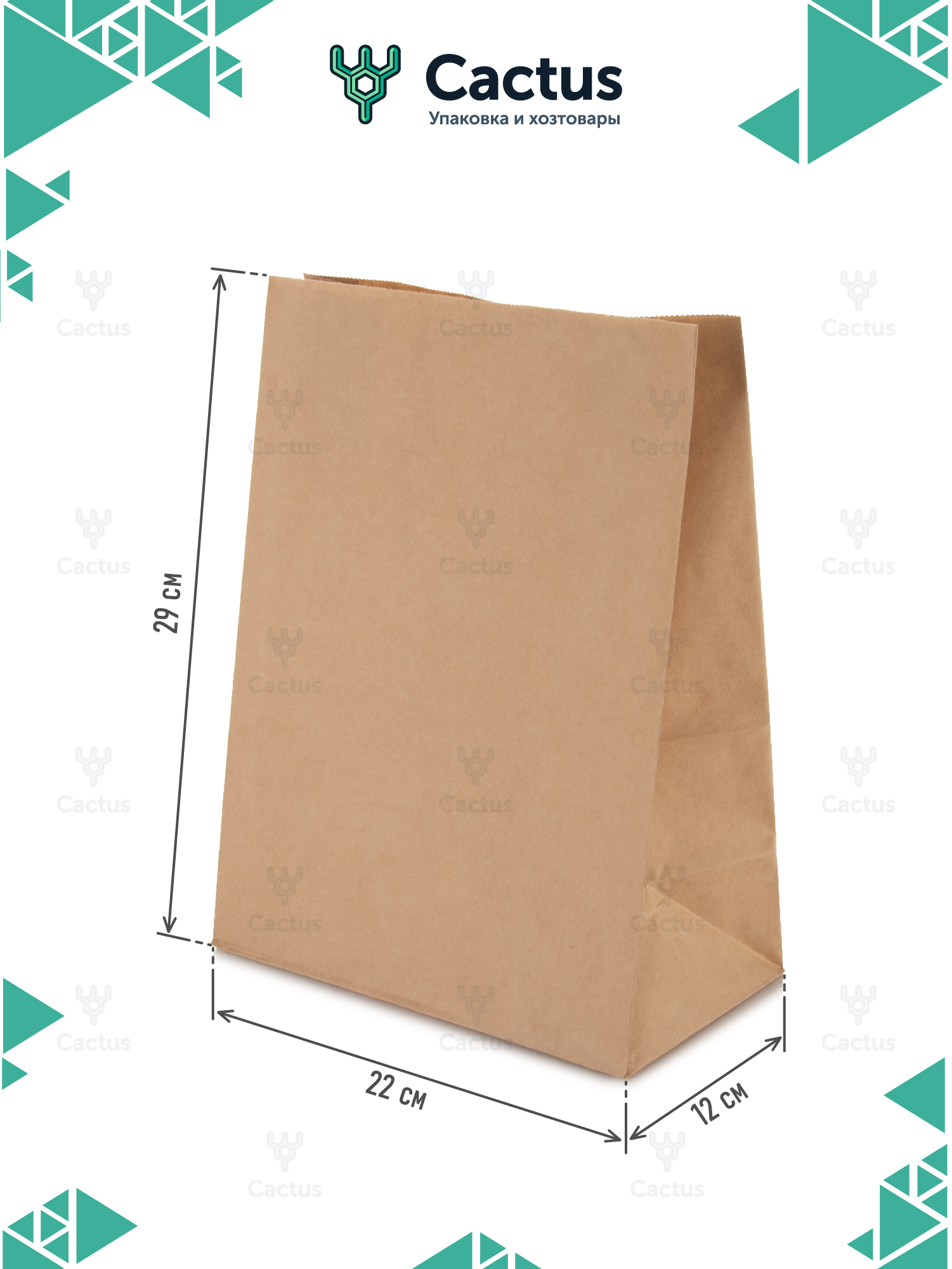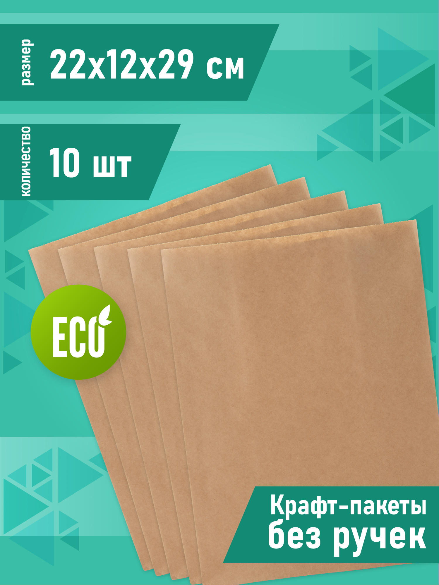 Крафт пакет бумажный без ручек, 22 х 12 х 29 см, 10 шт, пакеты пищевые бумажные, упаковочные
