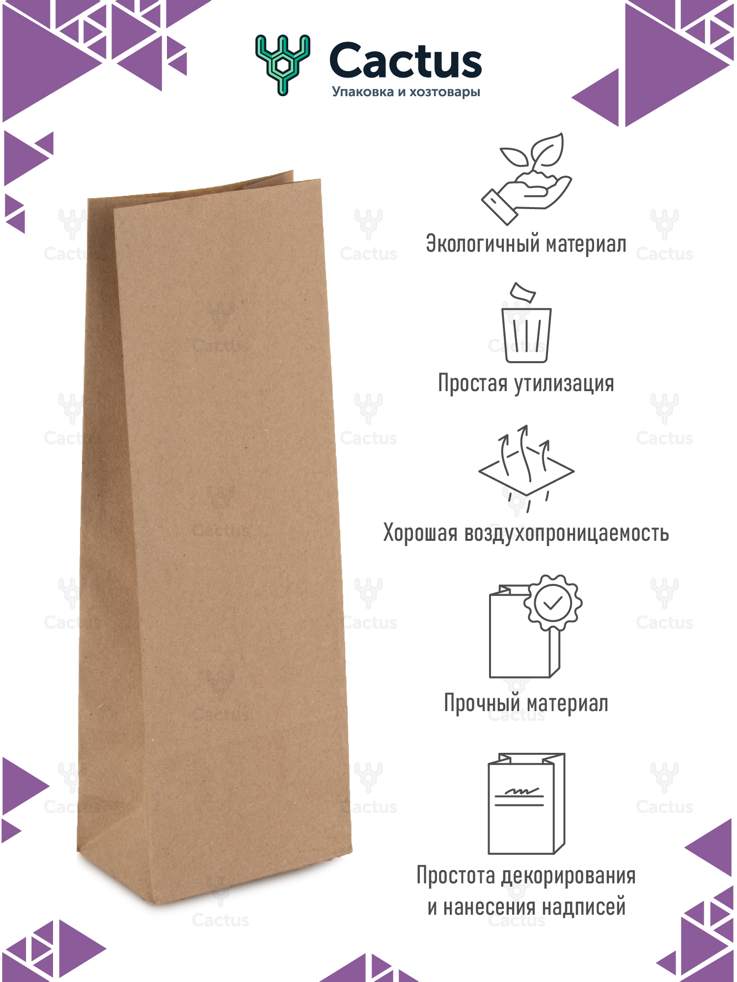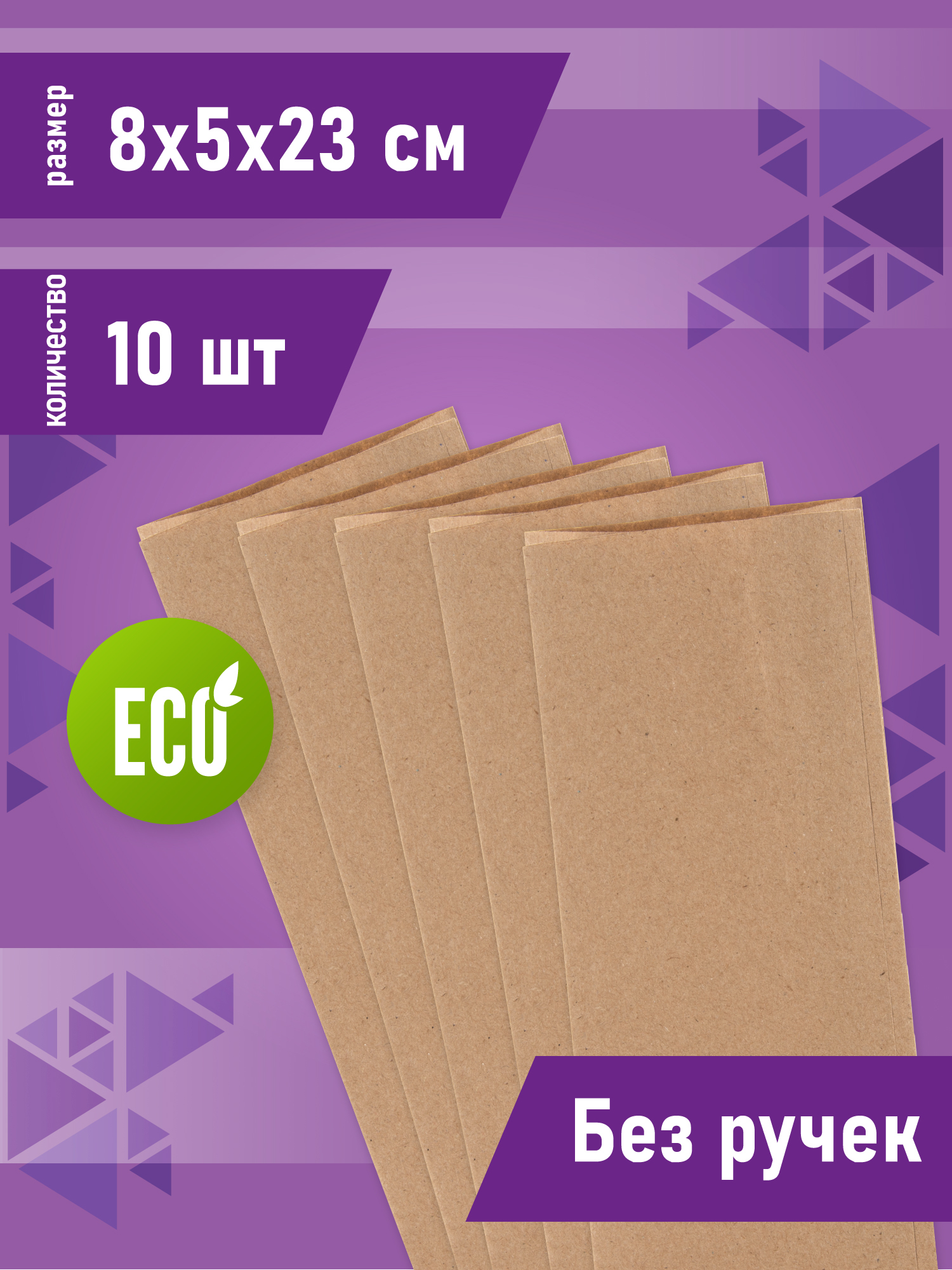 Крафт пакет бумажный без ручек, 8 х 5 х 23 см, 10 шт/уп / пакеты пищевые бумажные, упаковочные