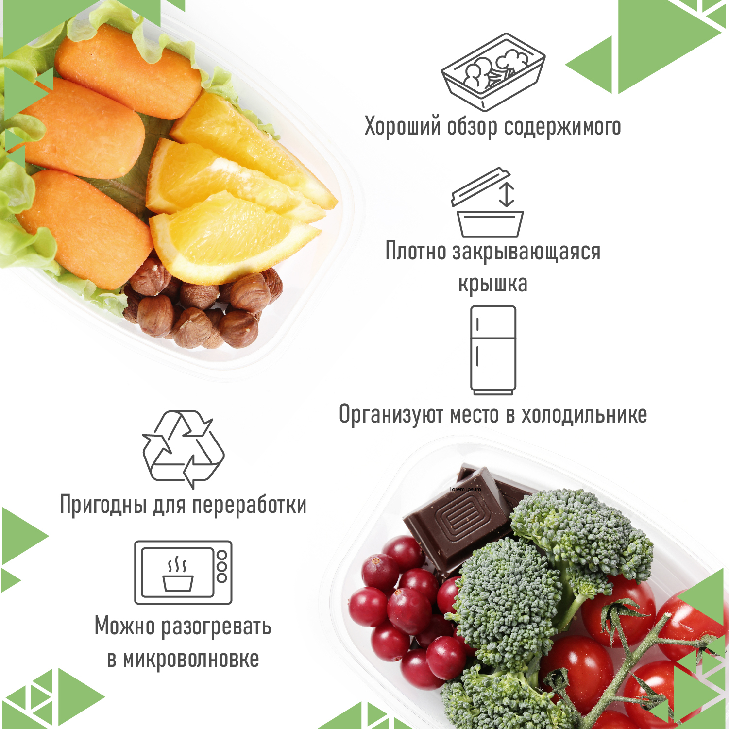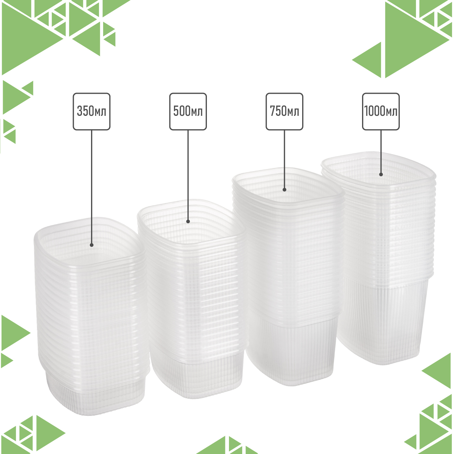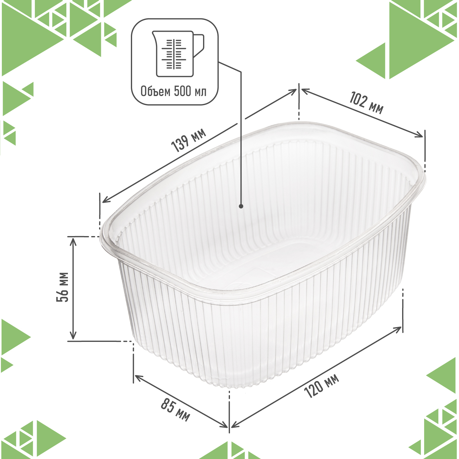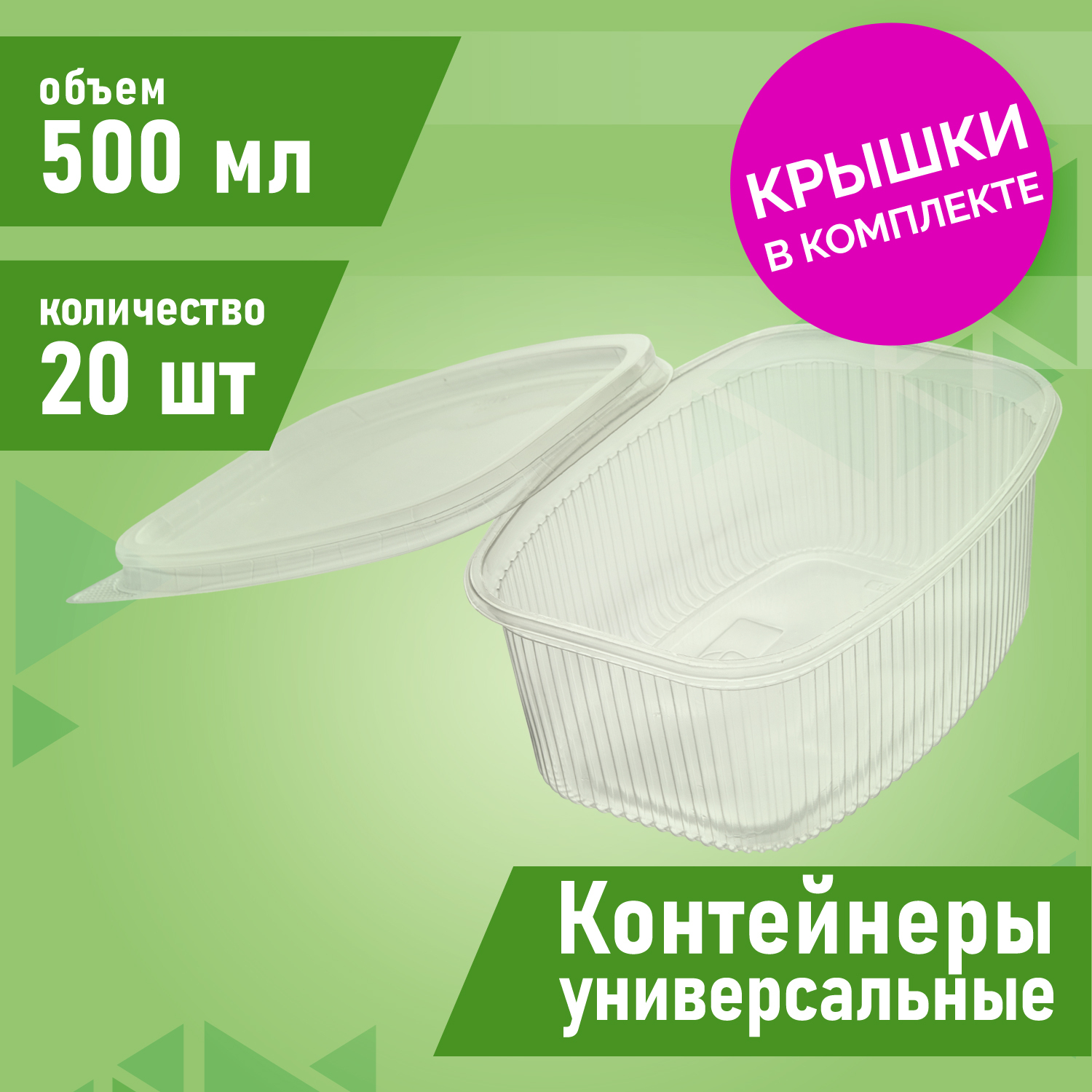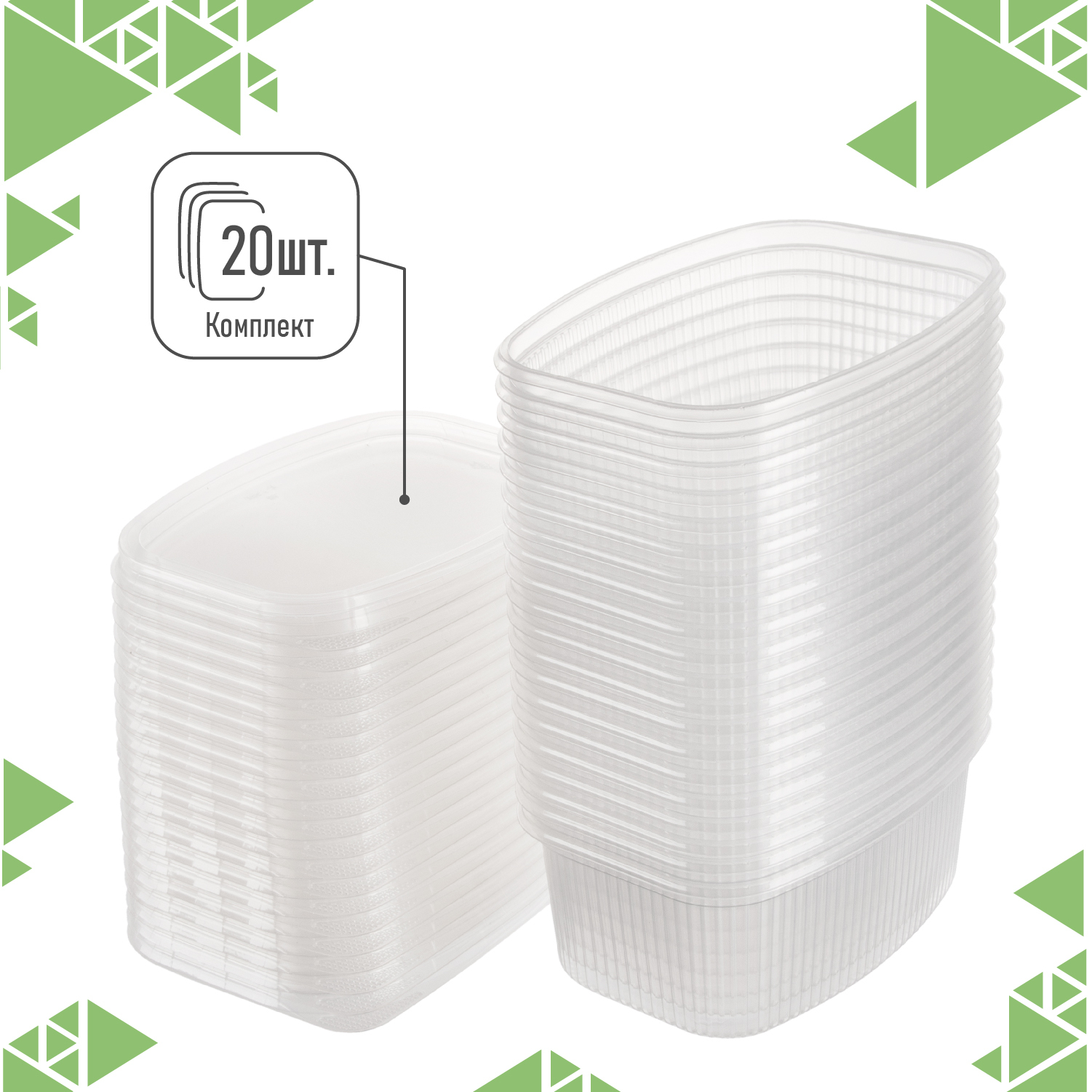Одноразовый пластиковый пищевой контейнер с крышкой 500 мл, 20шт, для хранения, заморозки, заготовок