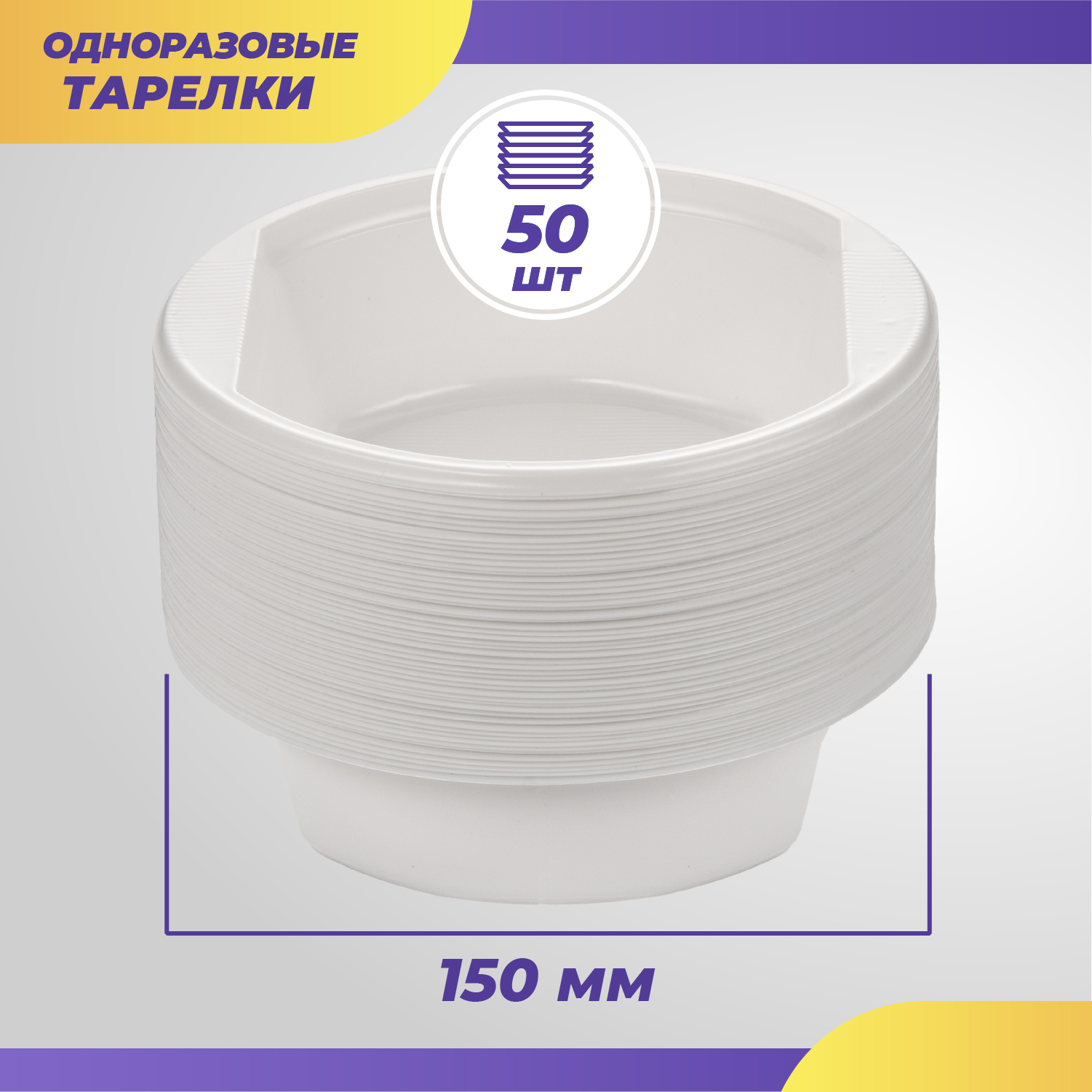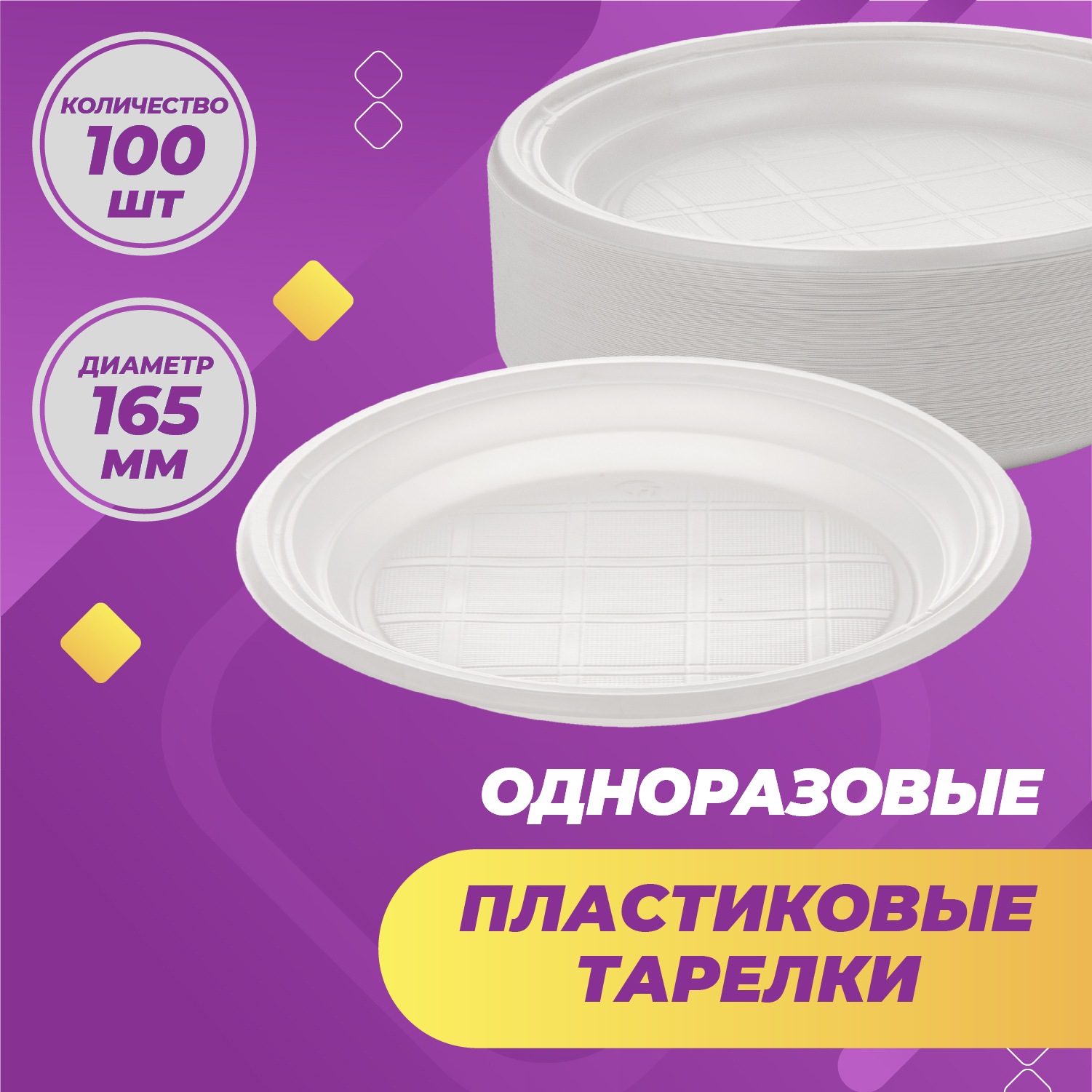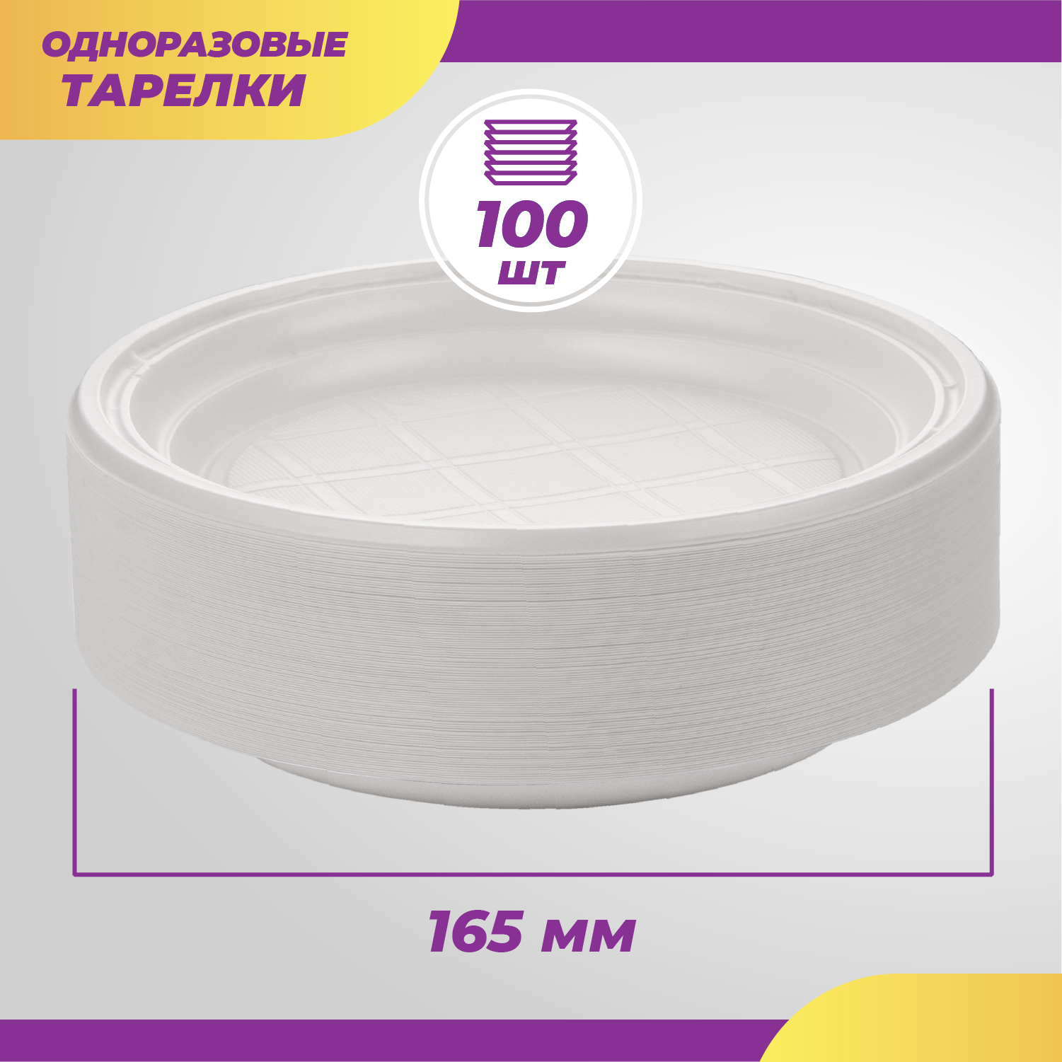 Одноразовые пластиковые тарелки, посуда для праздника, пикника, шашлыков, диаметр 165 мм, 100 шт