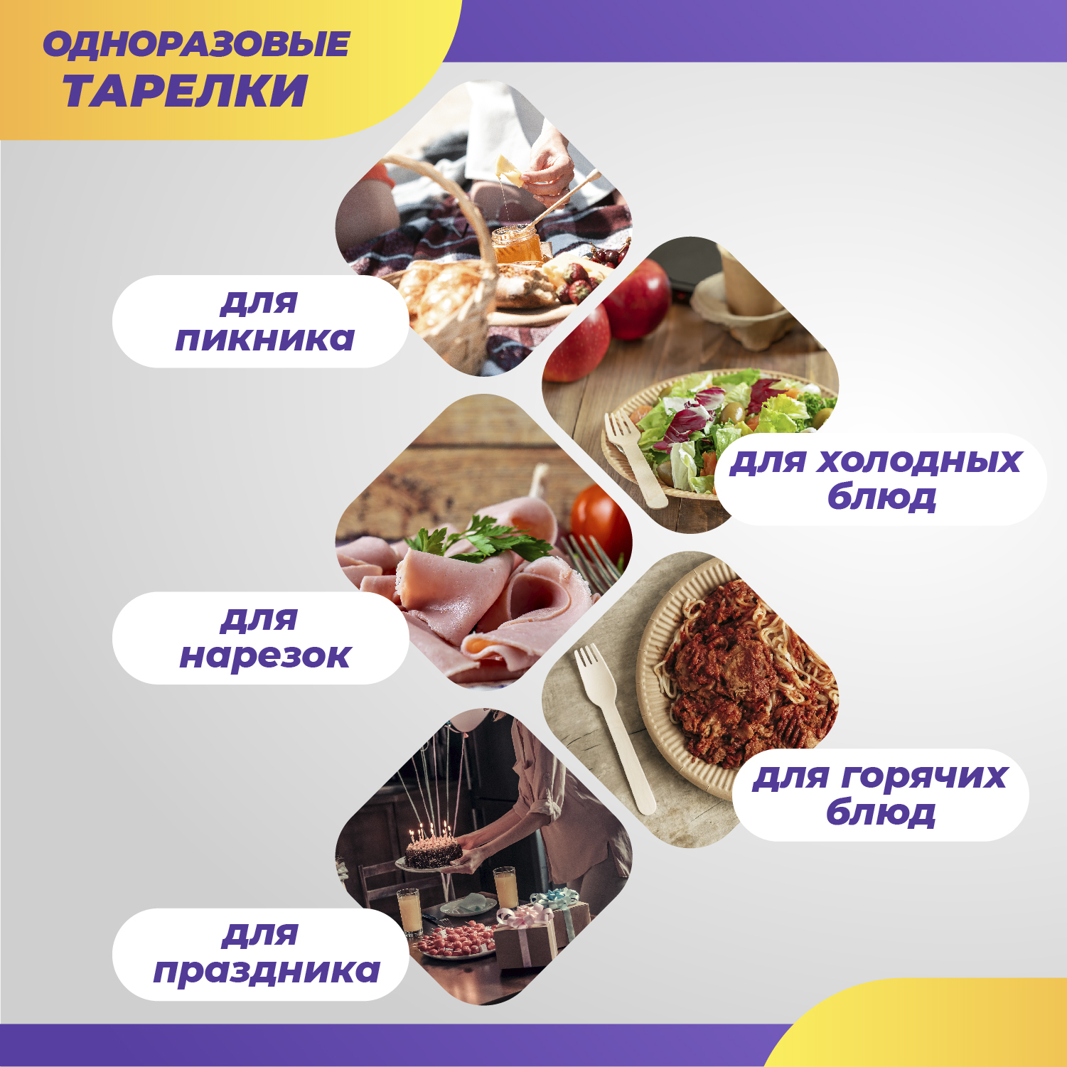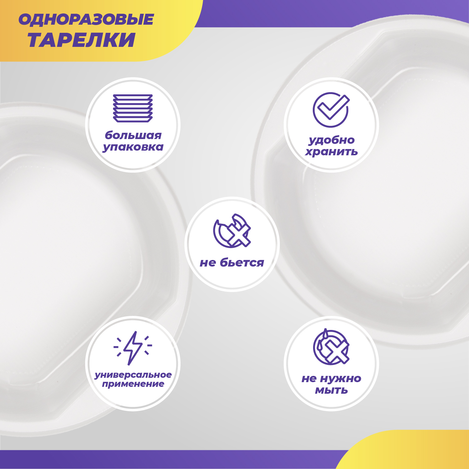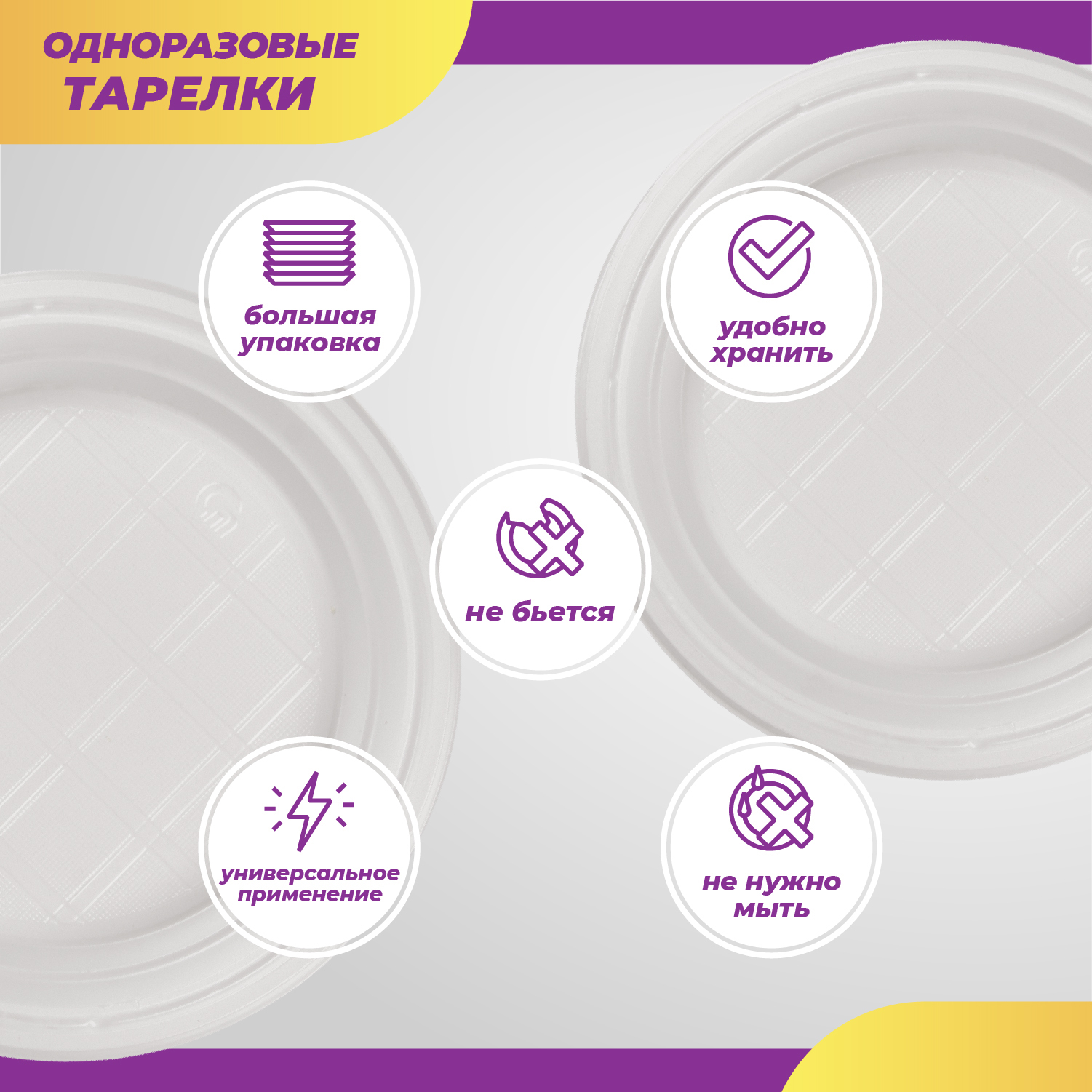 Одноразовые пластиковые тарелки, посуда для праздника, пикника, шашлыков, диаметр 165 мм, 100 шт