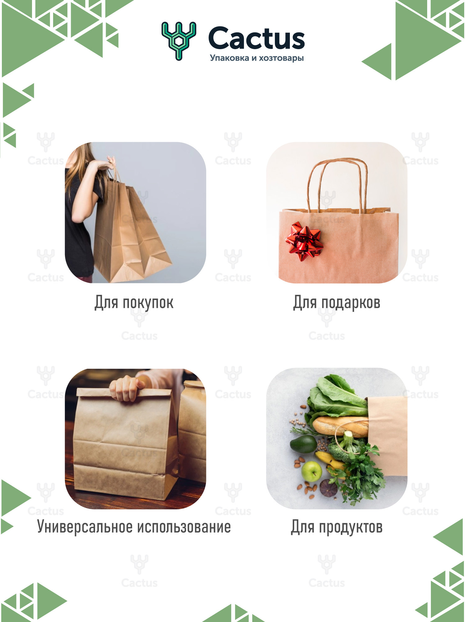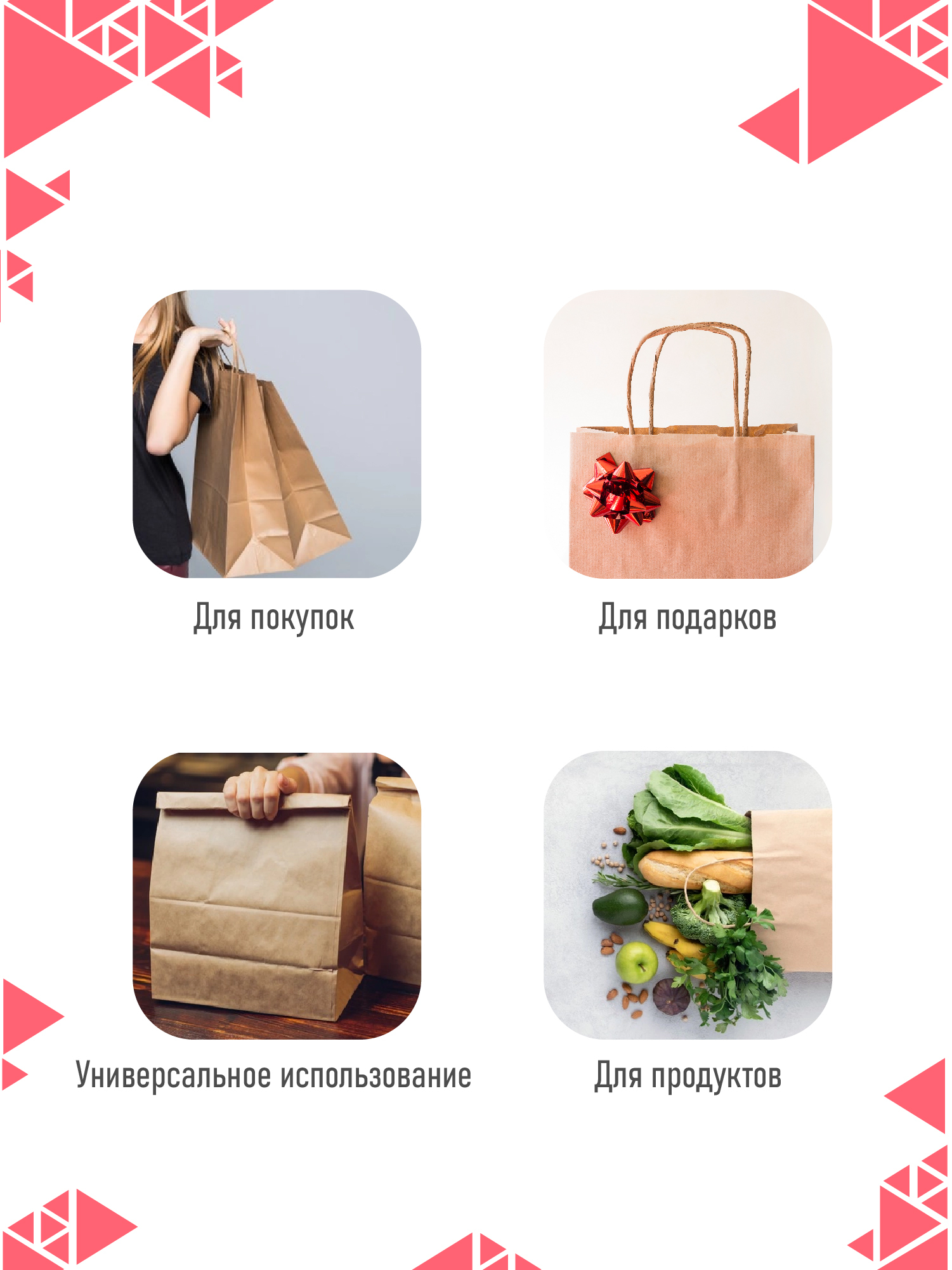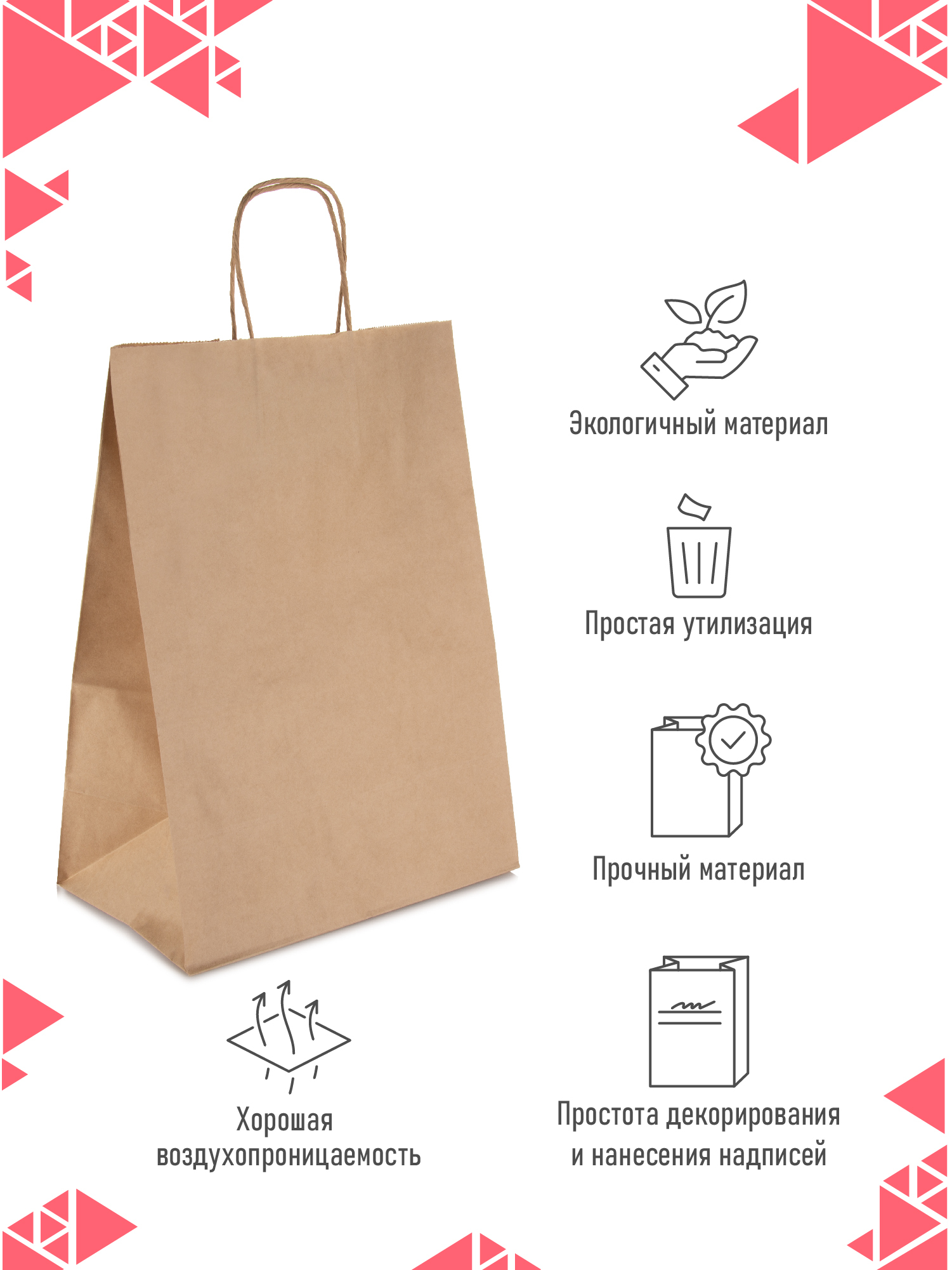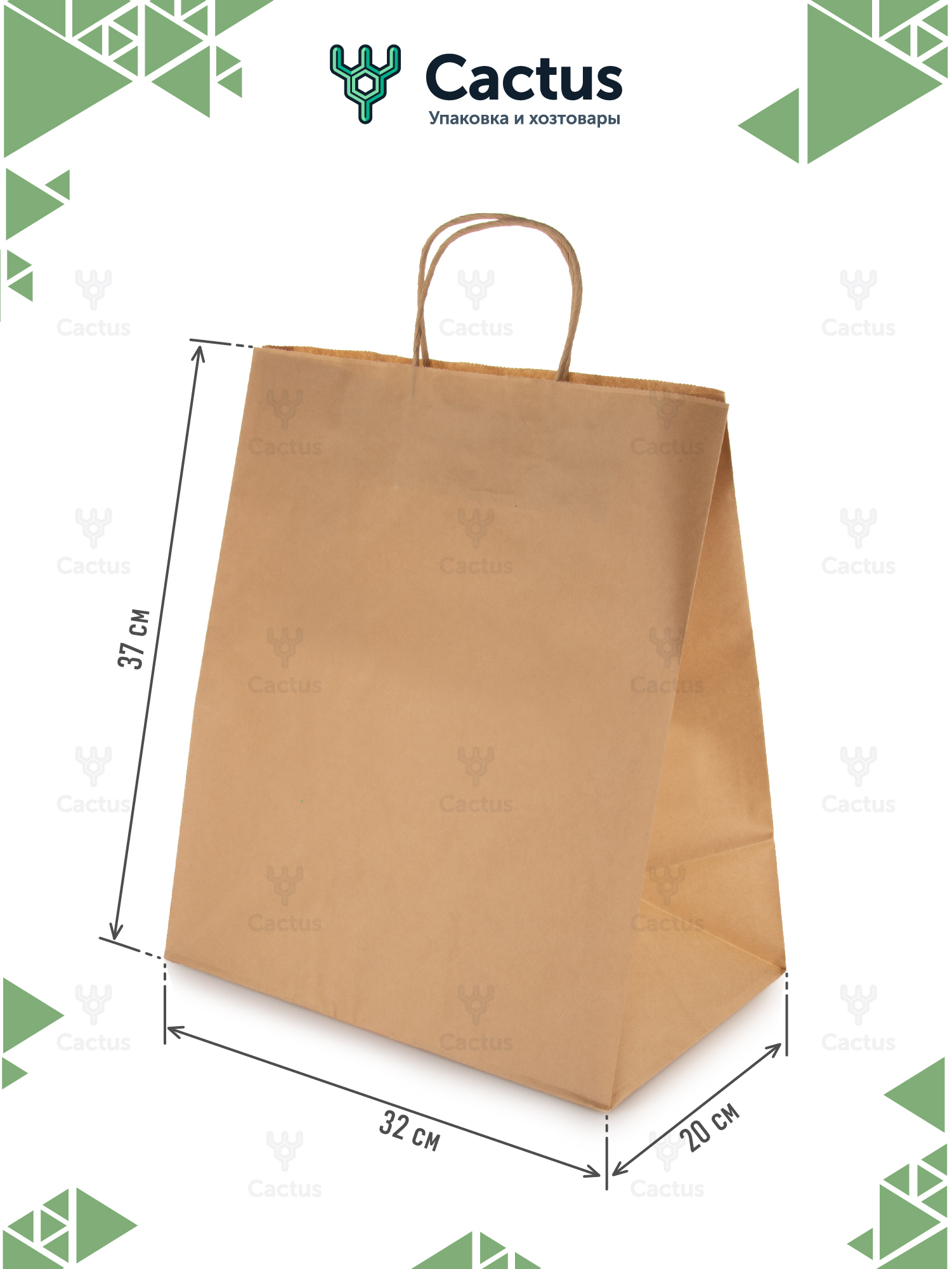 Крафт пакет бумажный с ручками, 32 х 20 х 37 см, 10 шт/уп / пакеты пищевые бумажные, упаковочные