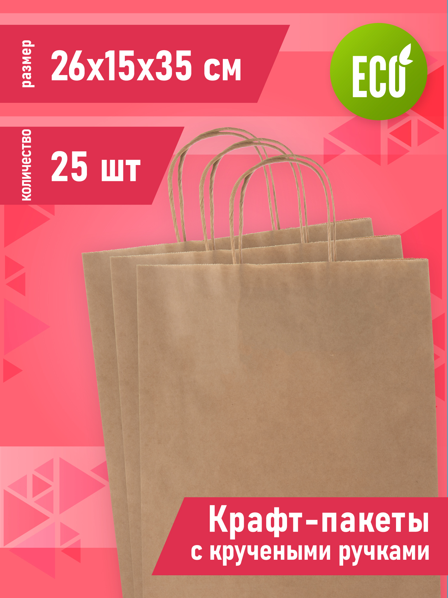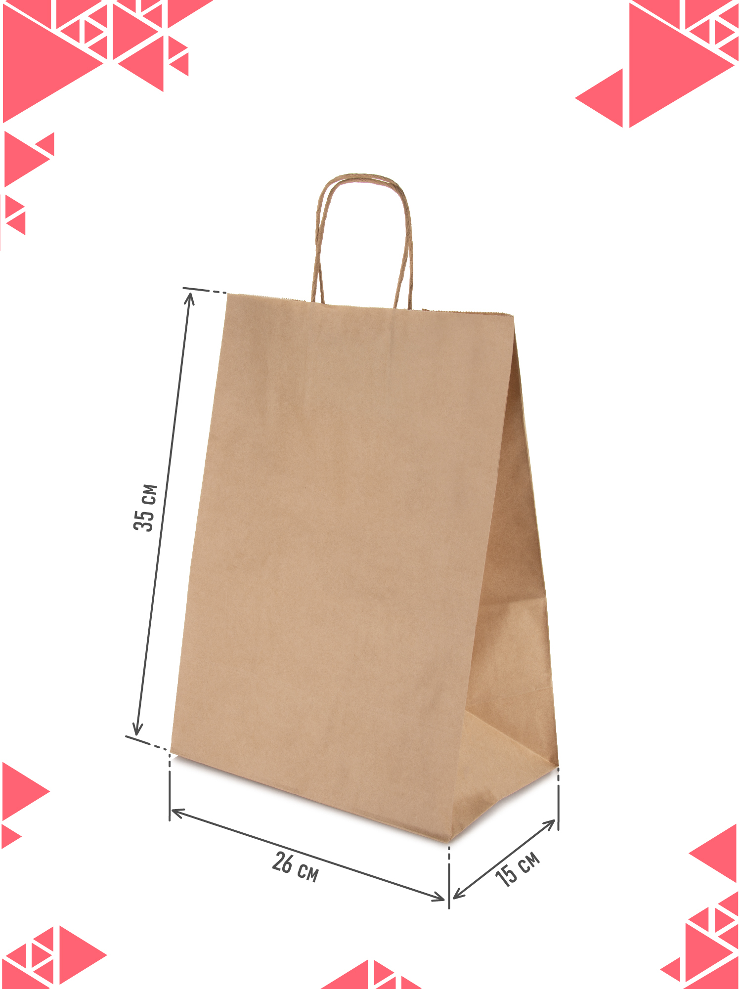 Крафт пакет бумажный с ручками, 26 х 15 х 35 см, 25 шт, пакеты пищевые бумажные, упаковочные