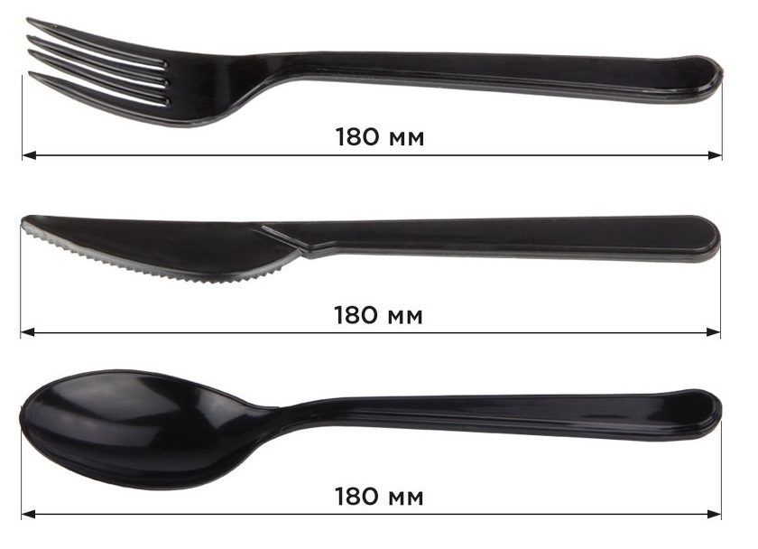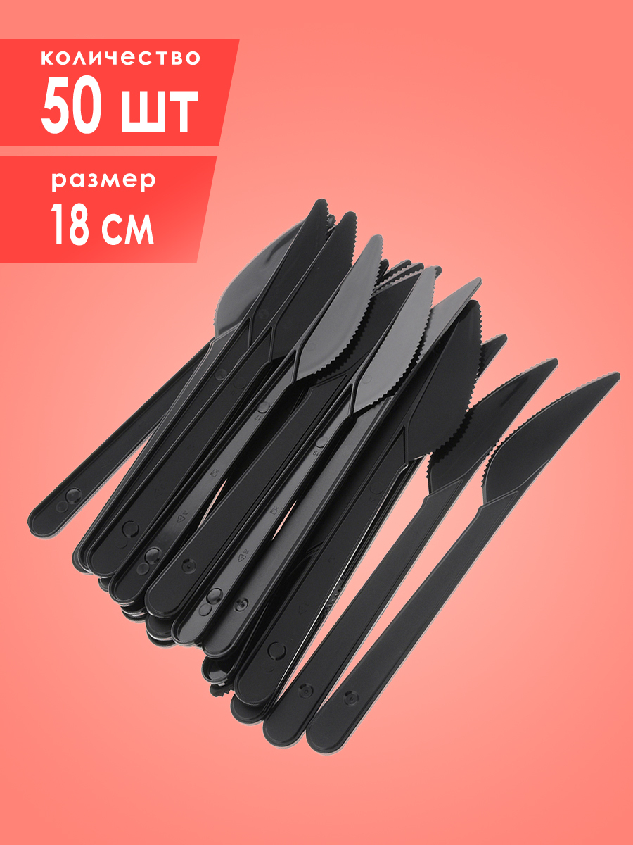 Нож одноразовый пластиковый черный, длина 18 см, 50 шт в упаковке