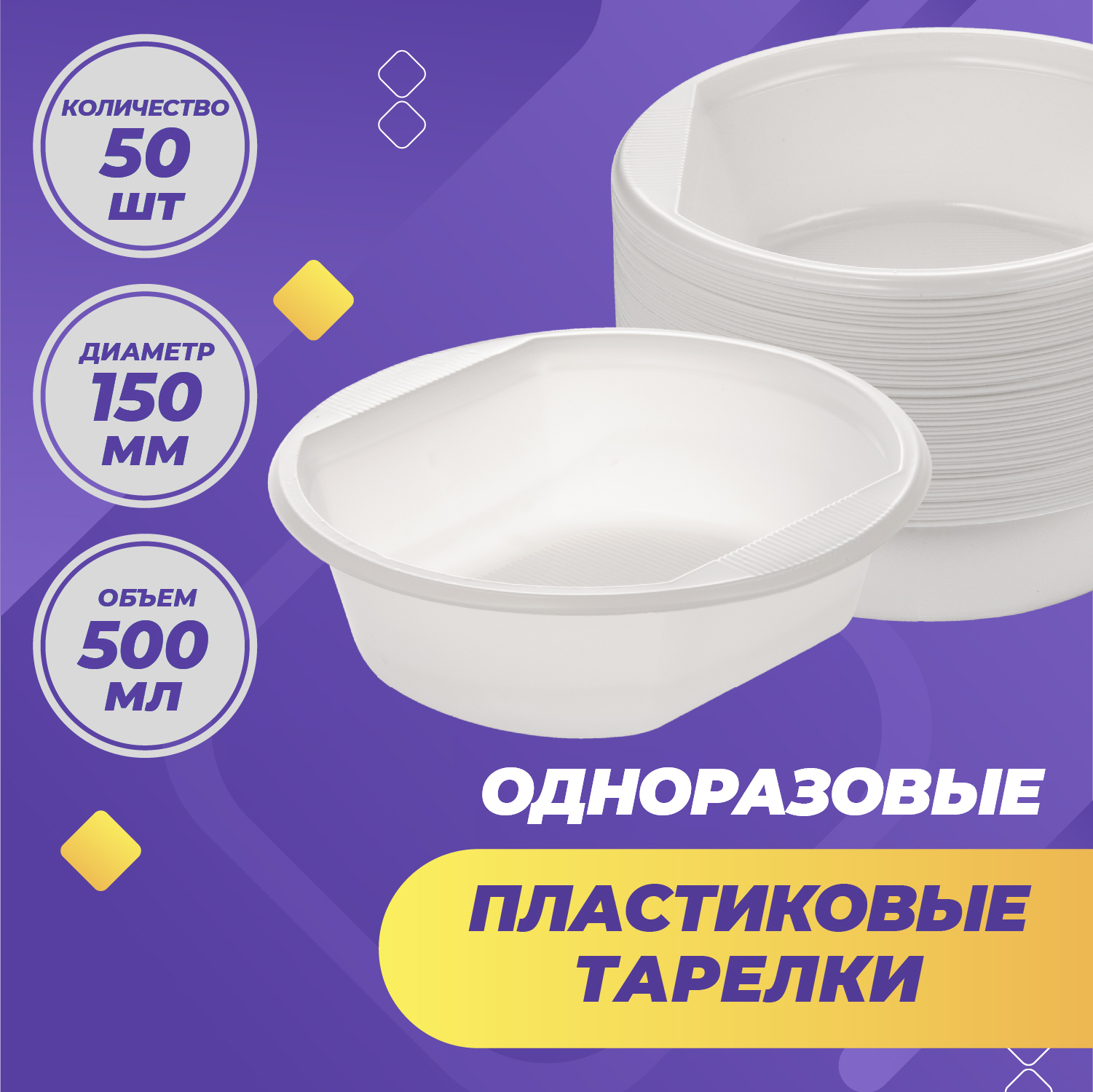 Одноразовые пластиковые тарелки, миска глубокая, посуда для супа, праздника, пикника, 500 мл, 50 шт