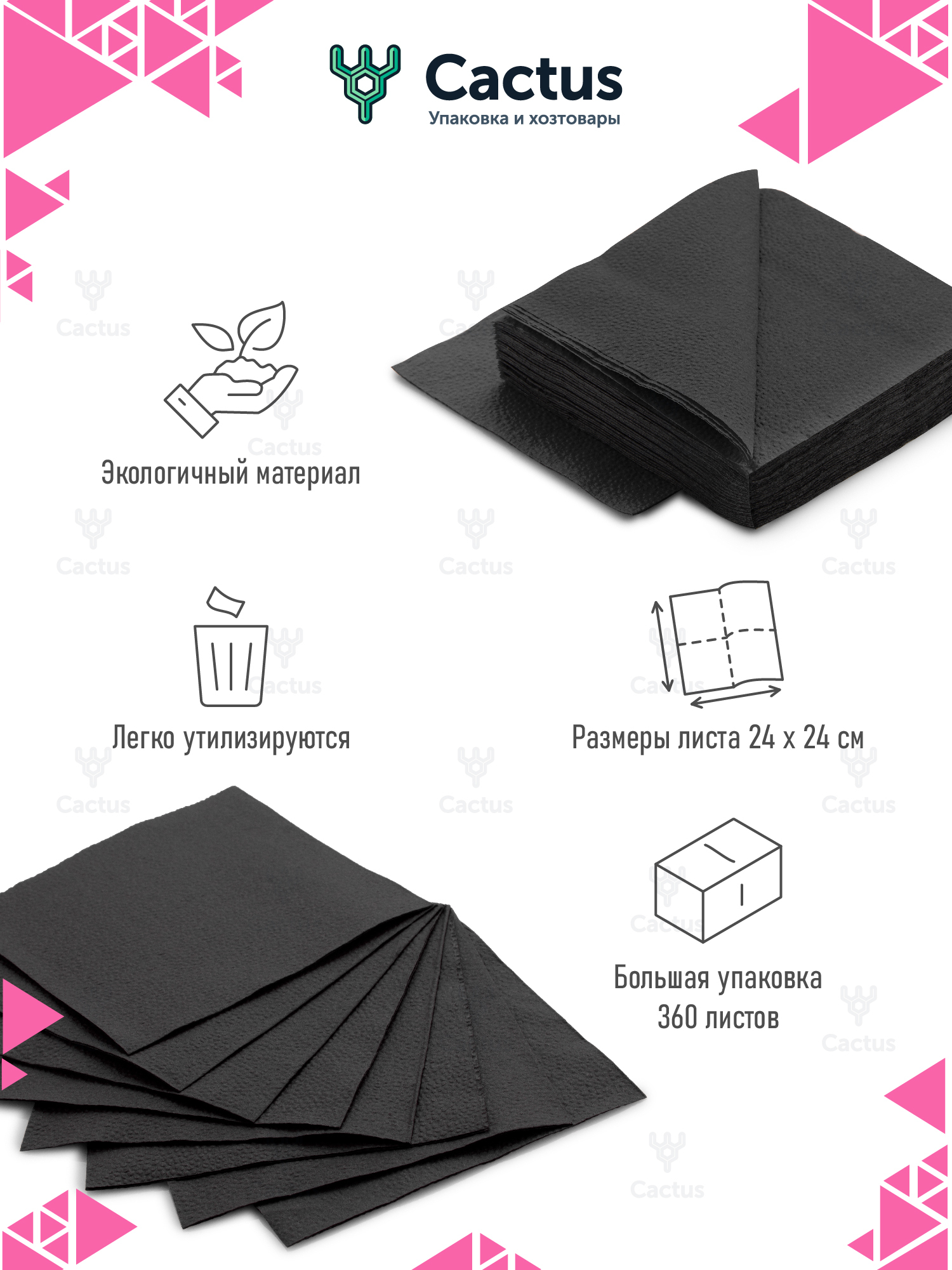 Салфетки бумажные, 24 х 24 см, однослойные, черные, 360 шт в упаковке