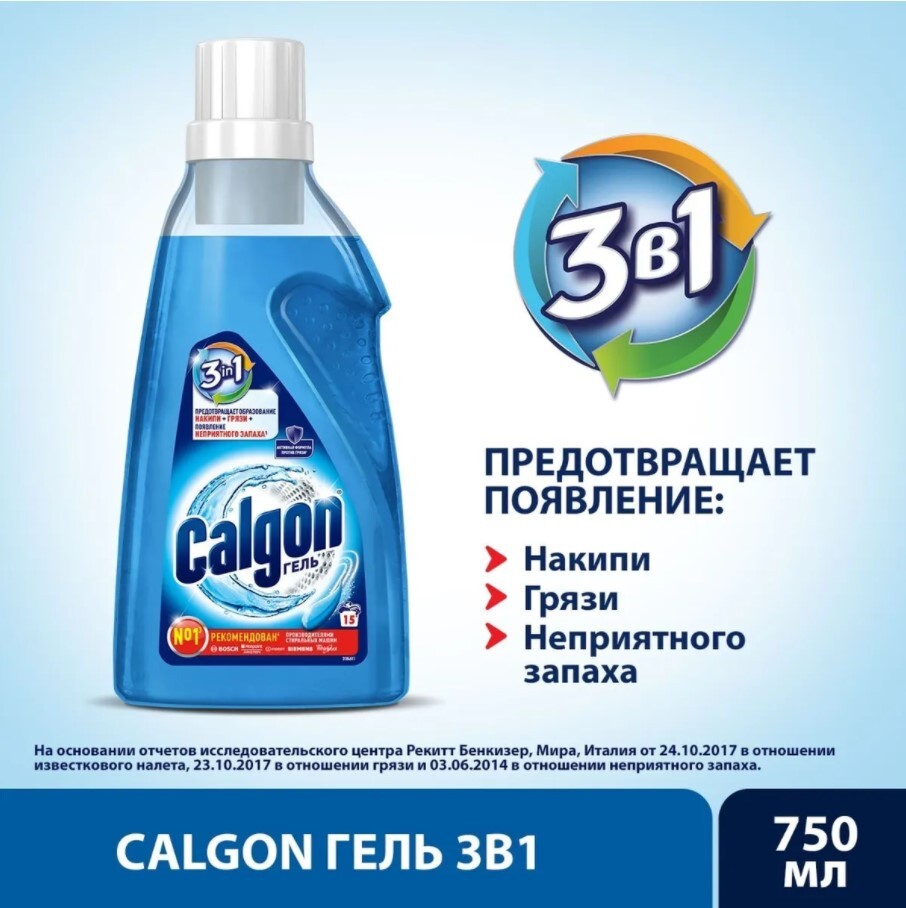 Гель для смягчения воды и предотвращения образования известкового налета CALGON 3 в 1, 750 мл