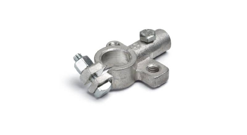 Клемма аккумуляторная литая "плюс " под провод сеч. 25 мм2, латунь, болтовое соединение м8плюс м6