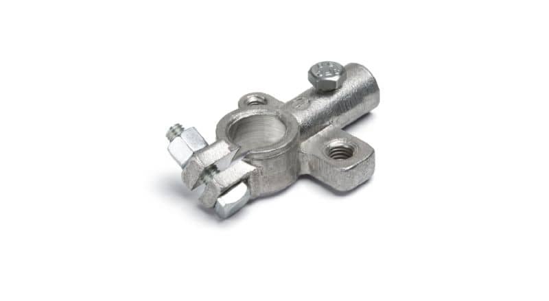 Клемма аккумуляторная литая "минус " под провод сеч. 25 мм2, латунь, болтовое соединение м8плюс м6