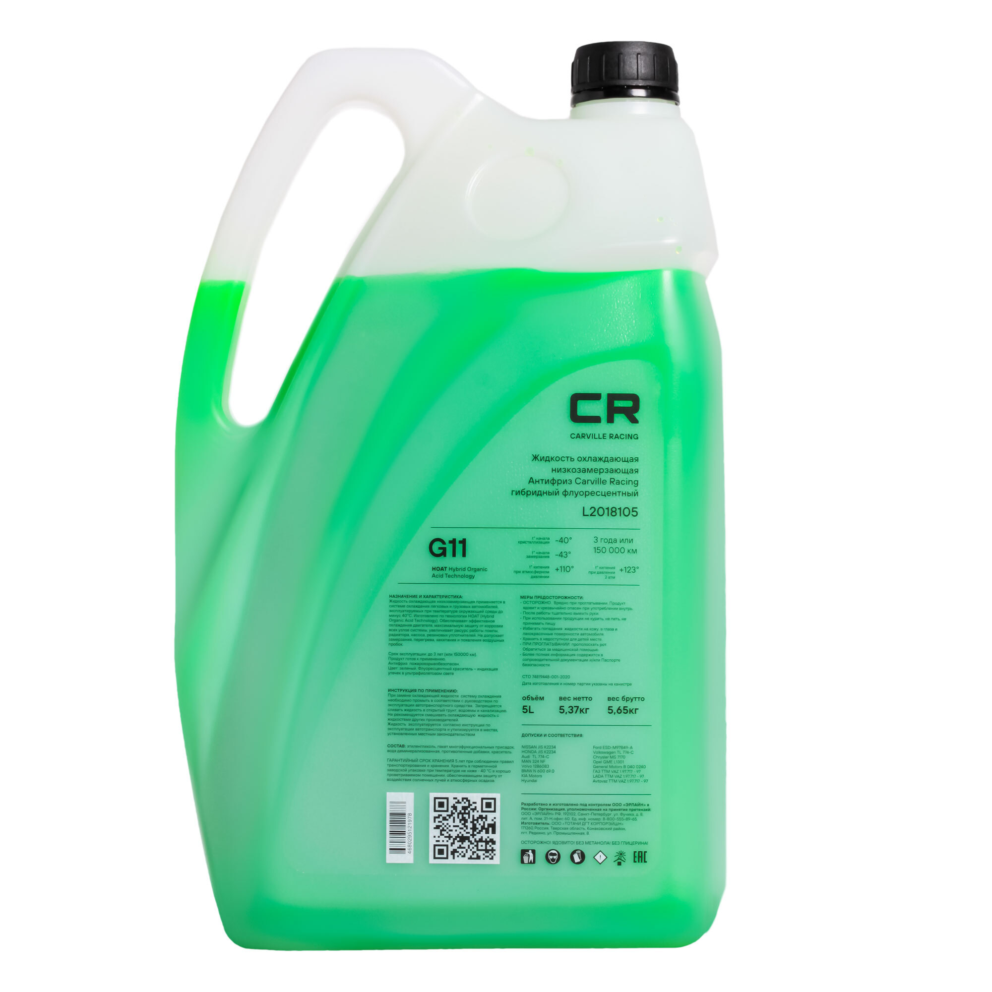 Антифриз Carville Racing гибридный флуоресцентный 40 С, 5л CARVILLE RACING L2018105