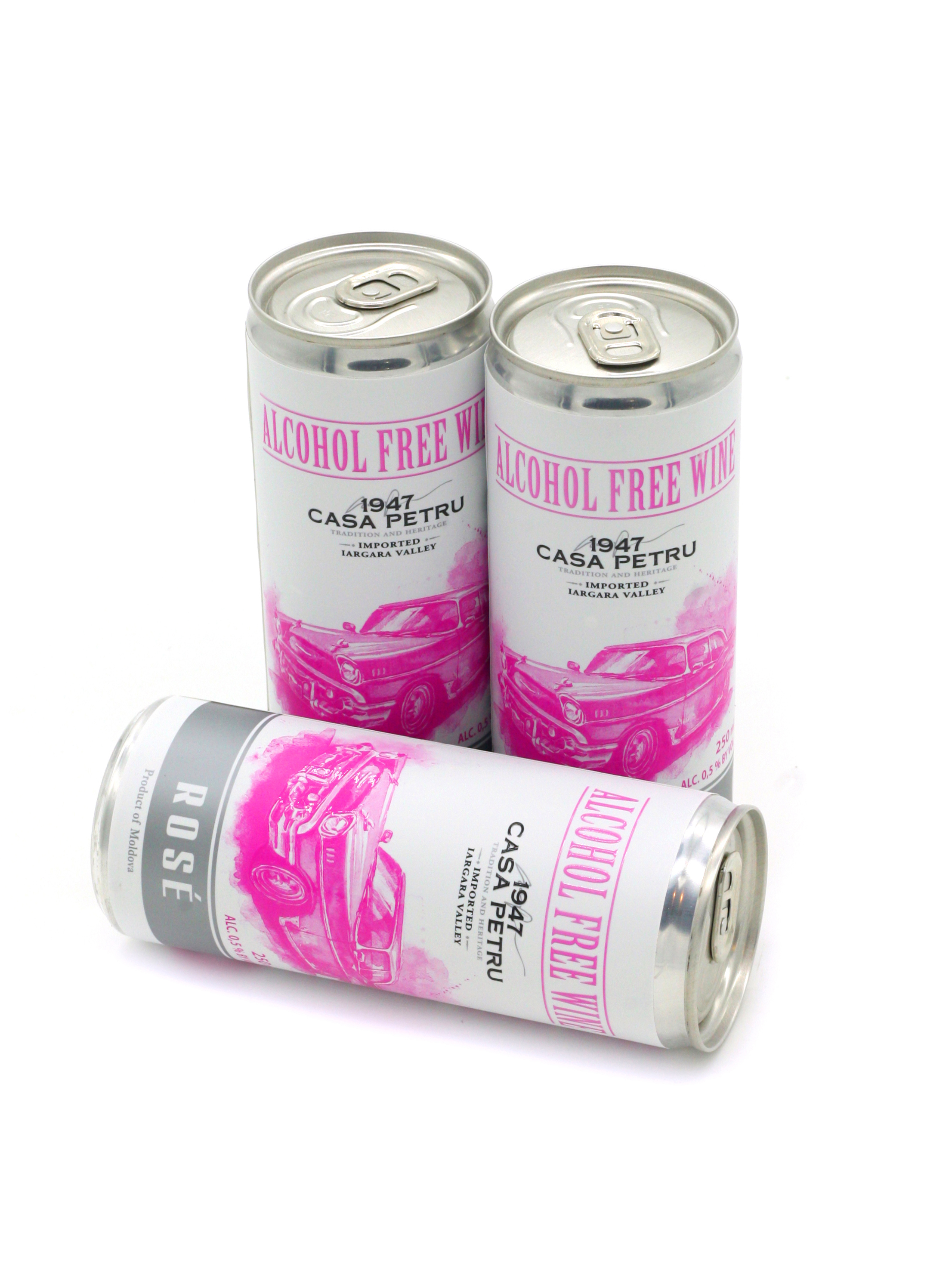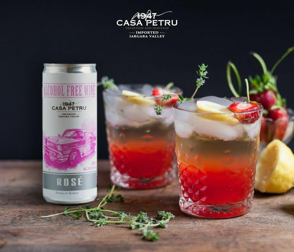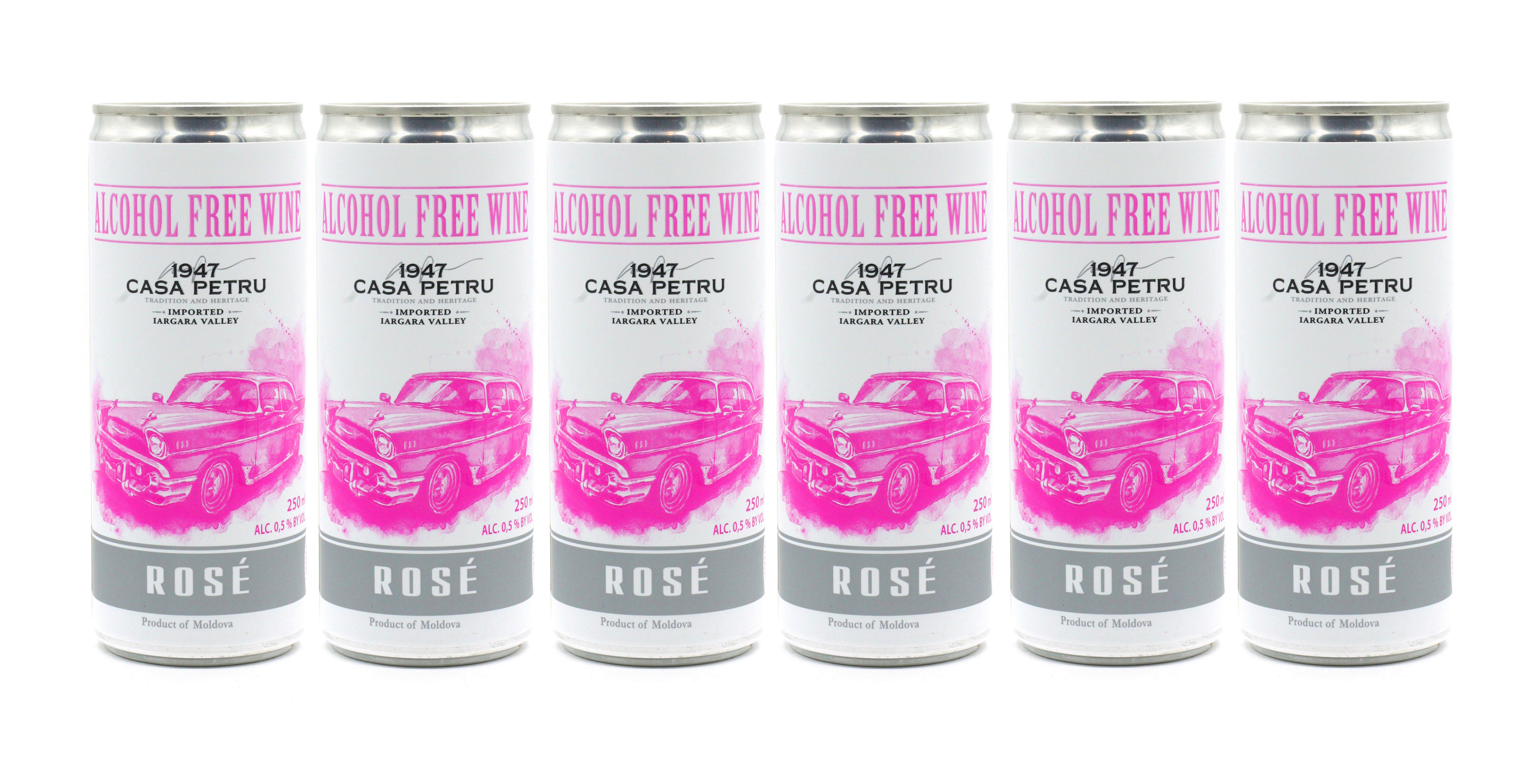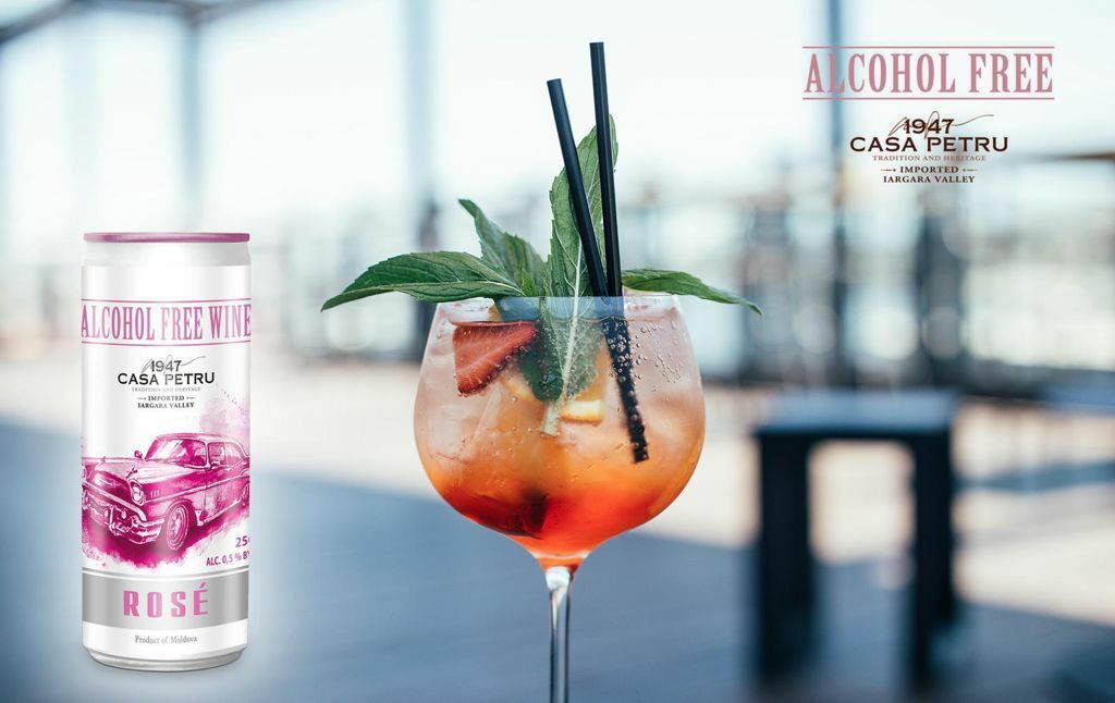 Вино 100% натуральное, безалкогольное "CASA PETRU Розе" розовое полусладкое, игристое (газированное), банка 0.250л., Молдавия
