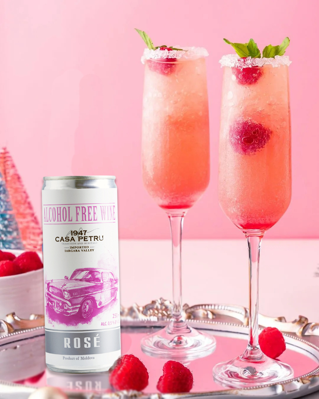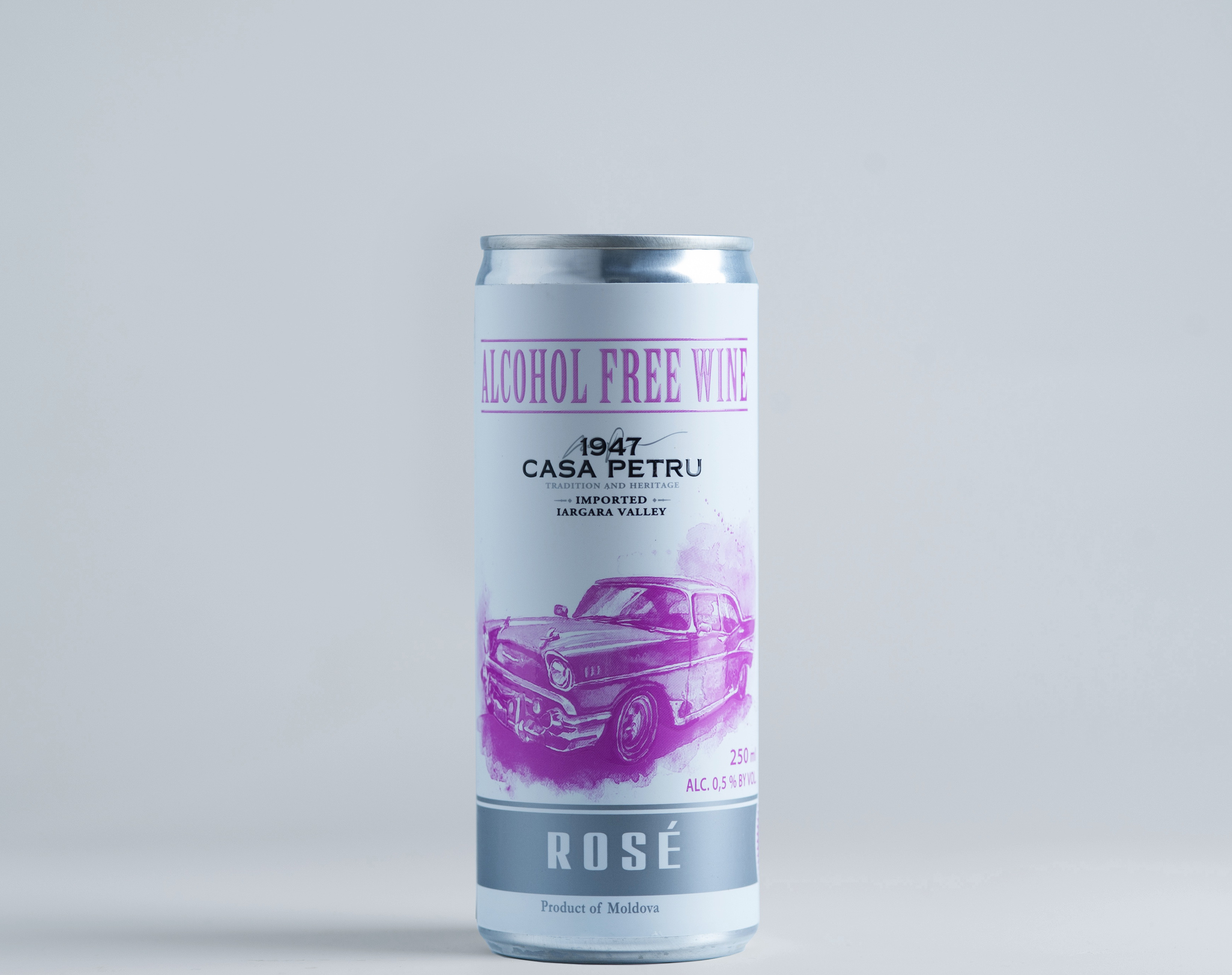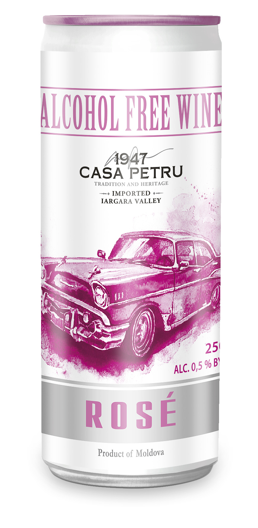 Вино 100% натуральное, безалкогольное "CASA PETRU Розе" розовое полусладкое, игристое (газированное), банка 0.250л., Молдавия