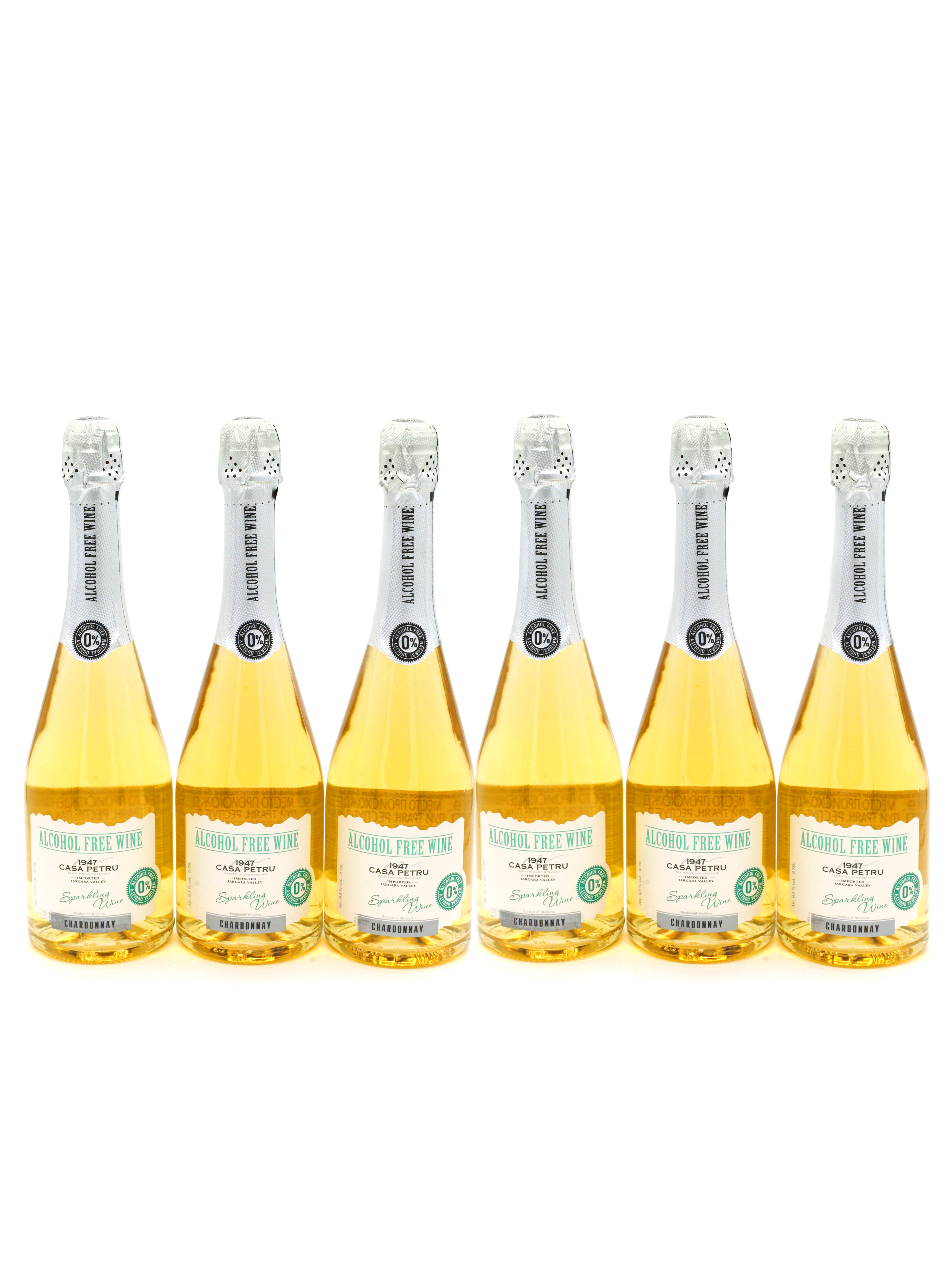 Вино 100% натуральное, безалкогольное "CASA PETRU Шардоне" белое полусладкое, игристое (газированное), 0.75л., набор из 6шт, Молдавия