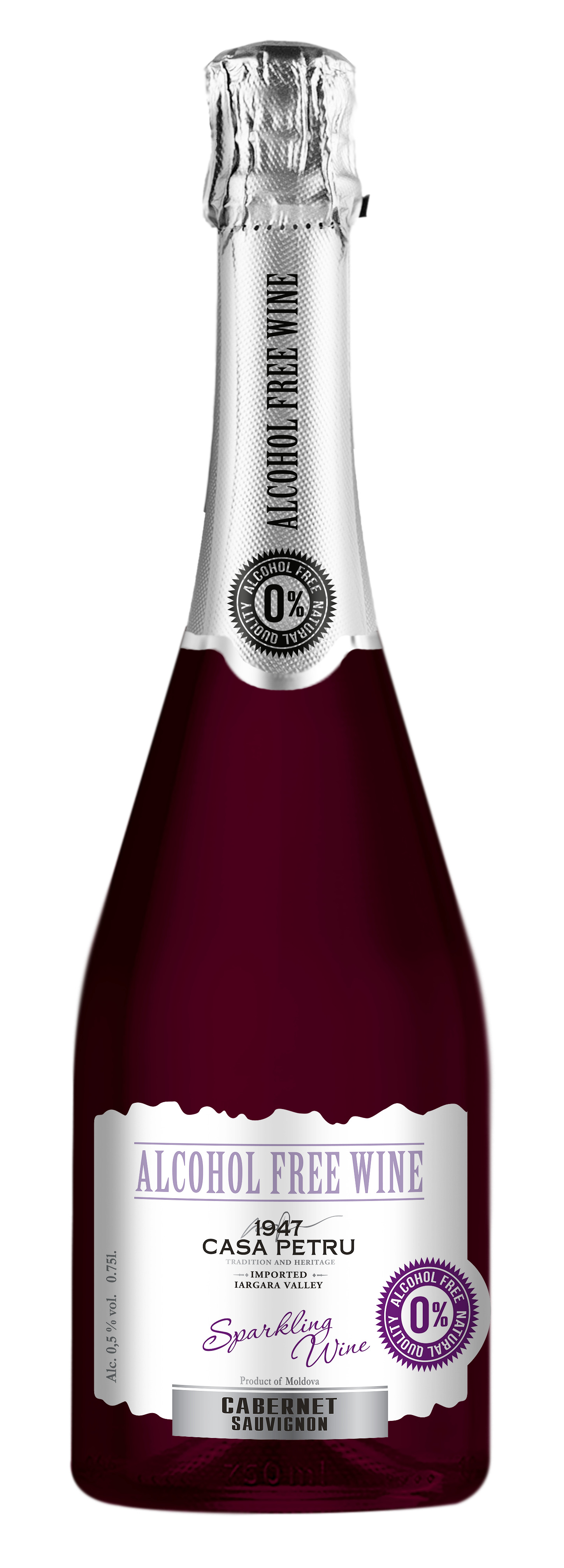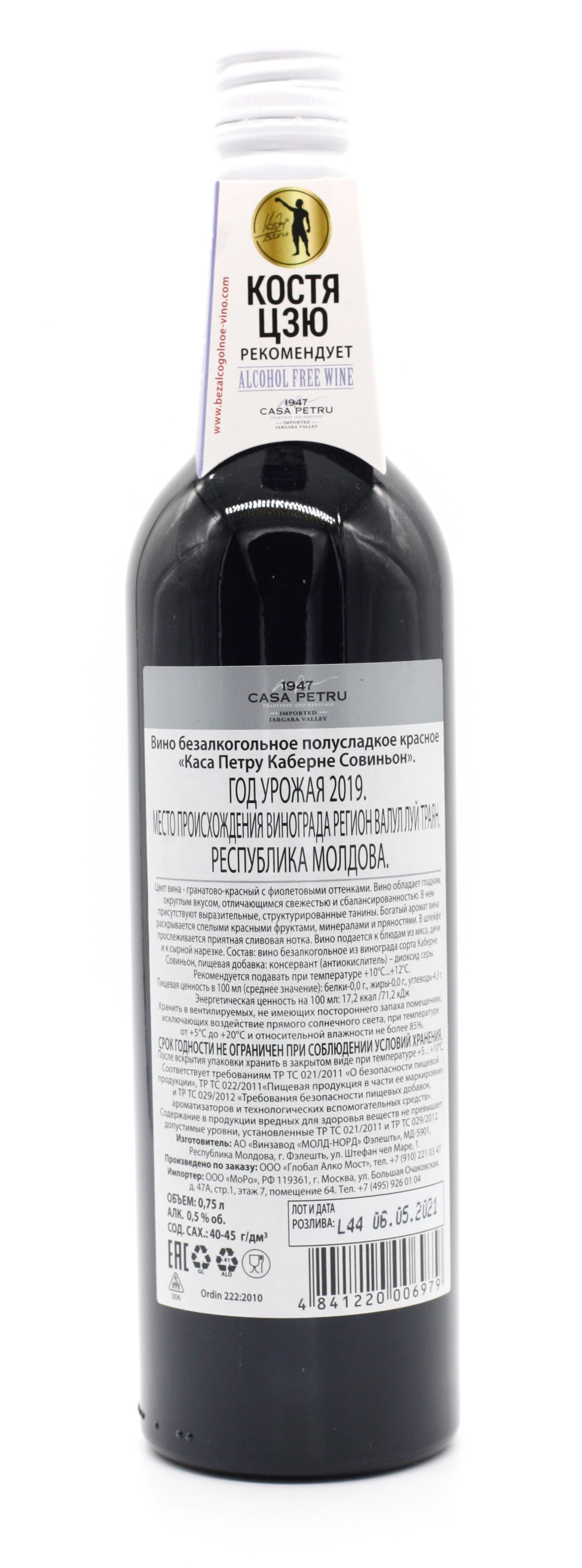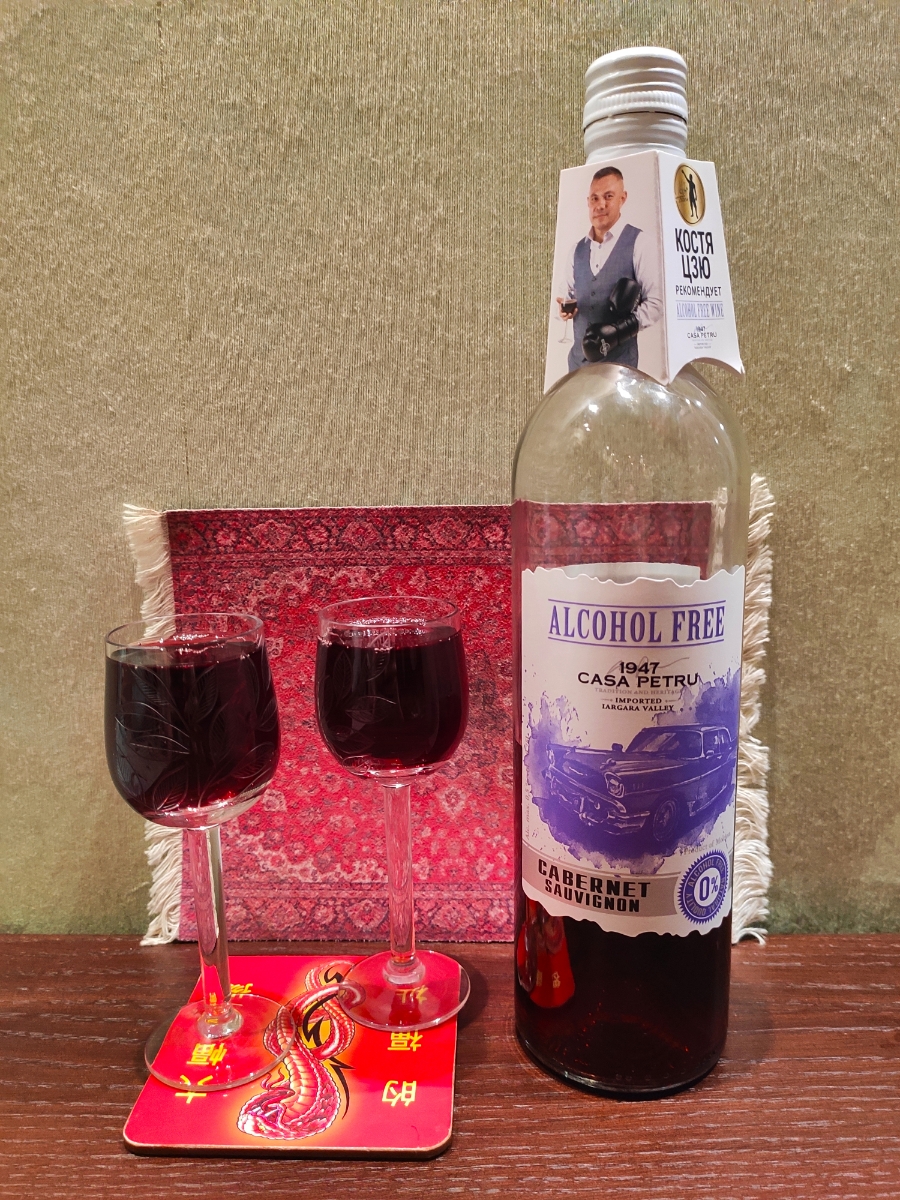 Вино 100% натуральное, безалкогольное CASA PETRU (Каса Петру) Каберне Совиньон" 0,75 красное полусладкое, Молдавия