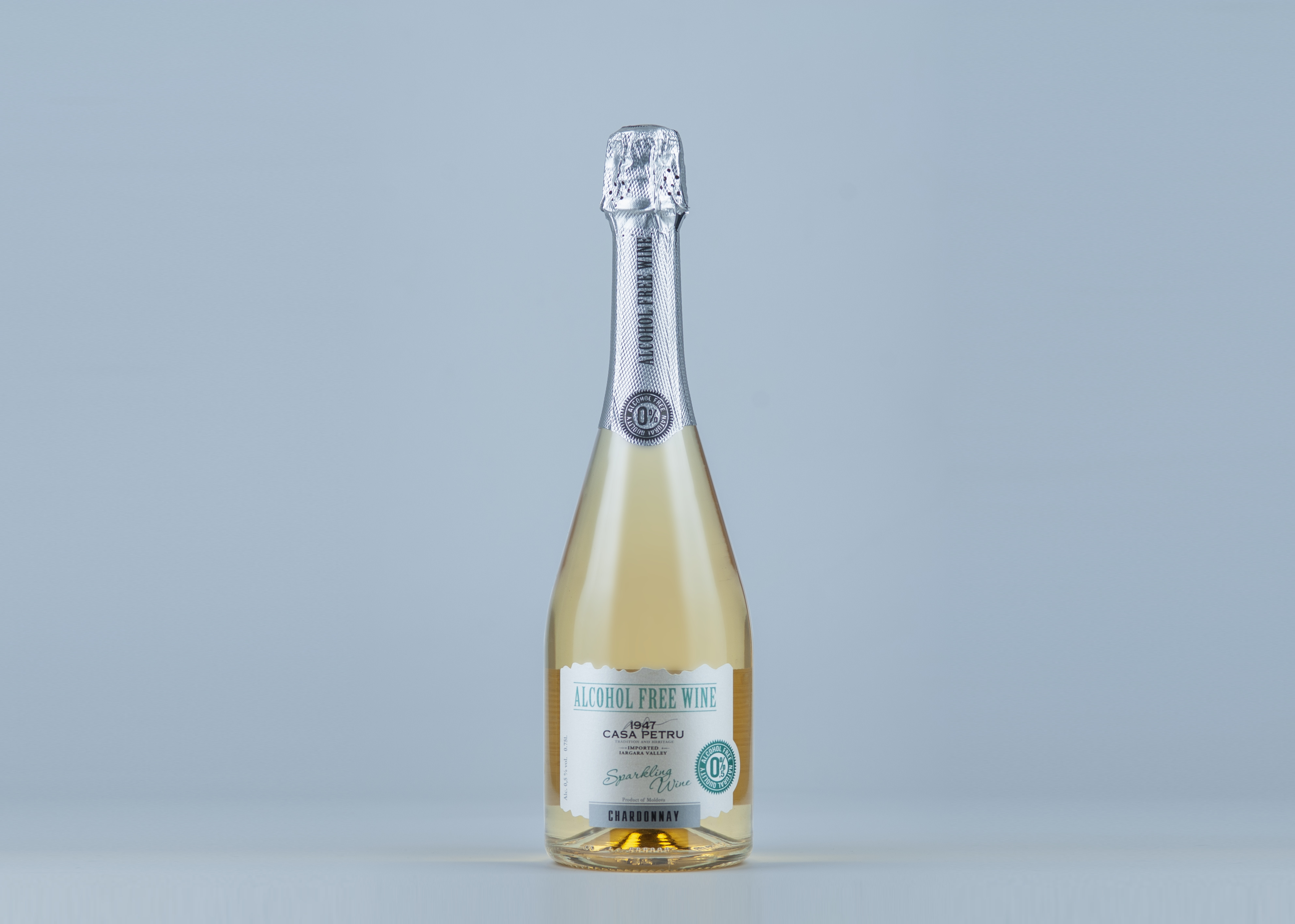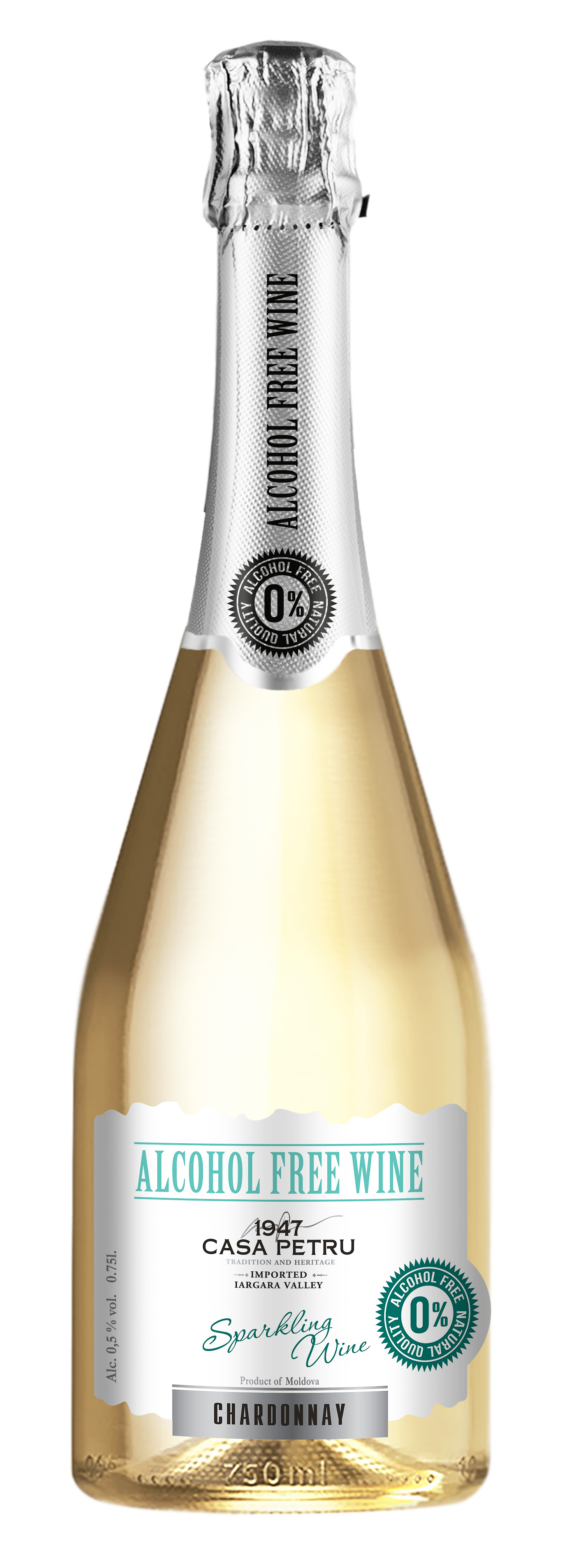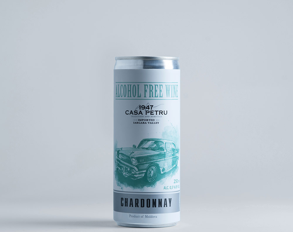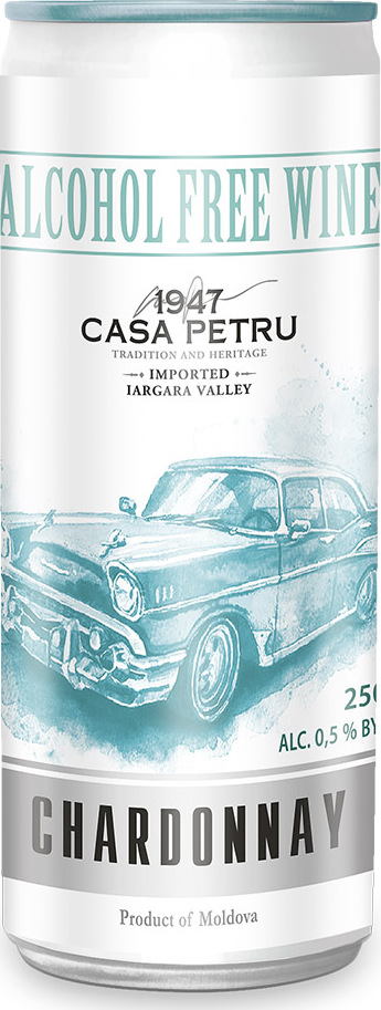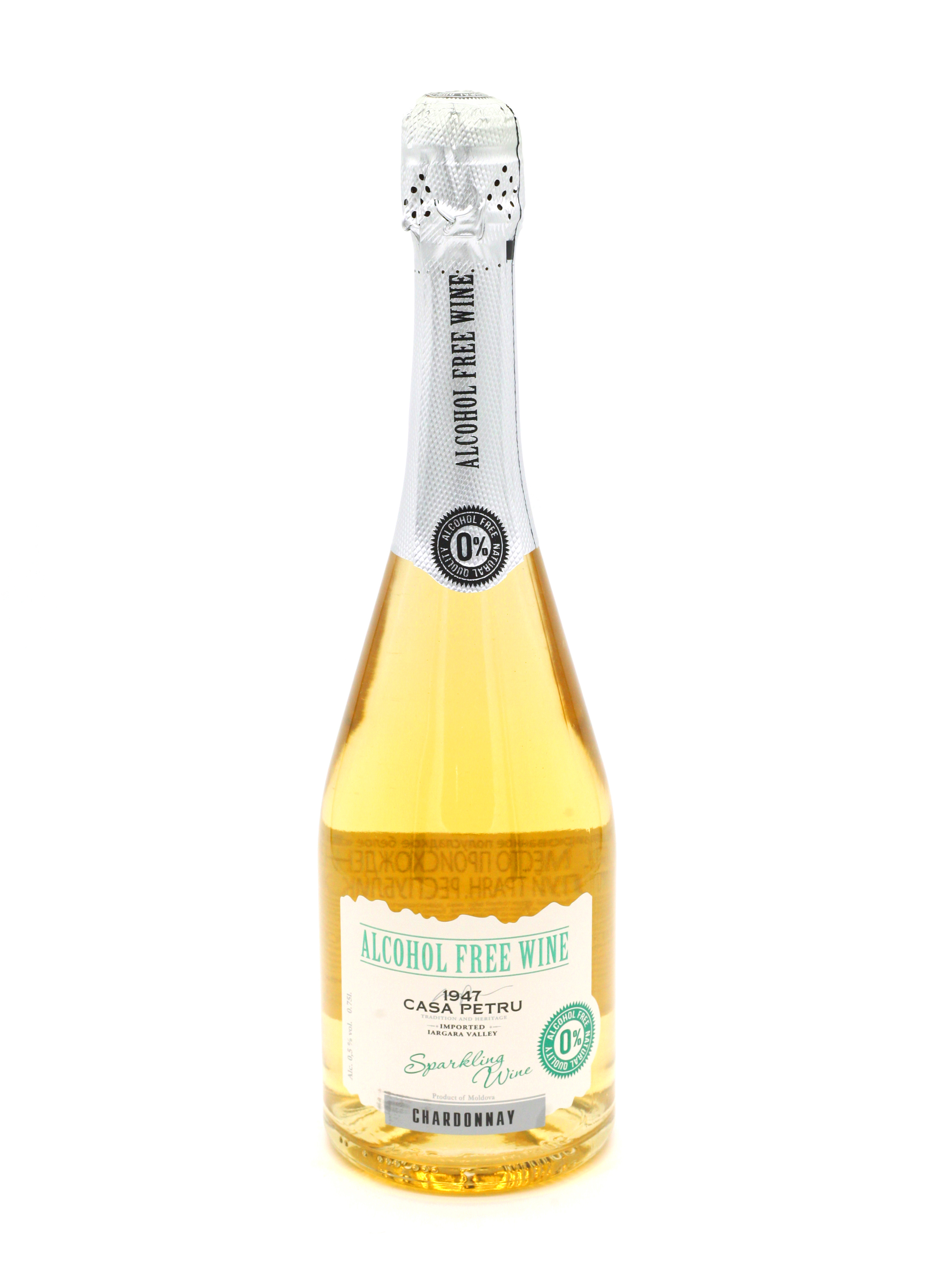 Вино 100% натуральное, безалкогольное "CASA PETRU Шардоне" белое полусладкое, игристое (газированное), 0.75л., Молдавия