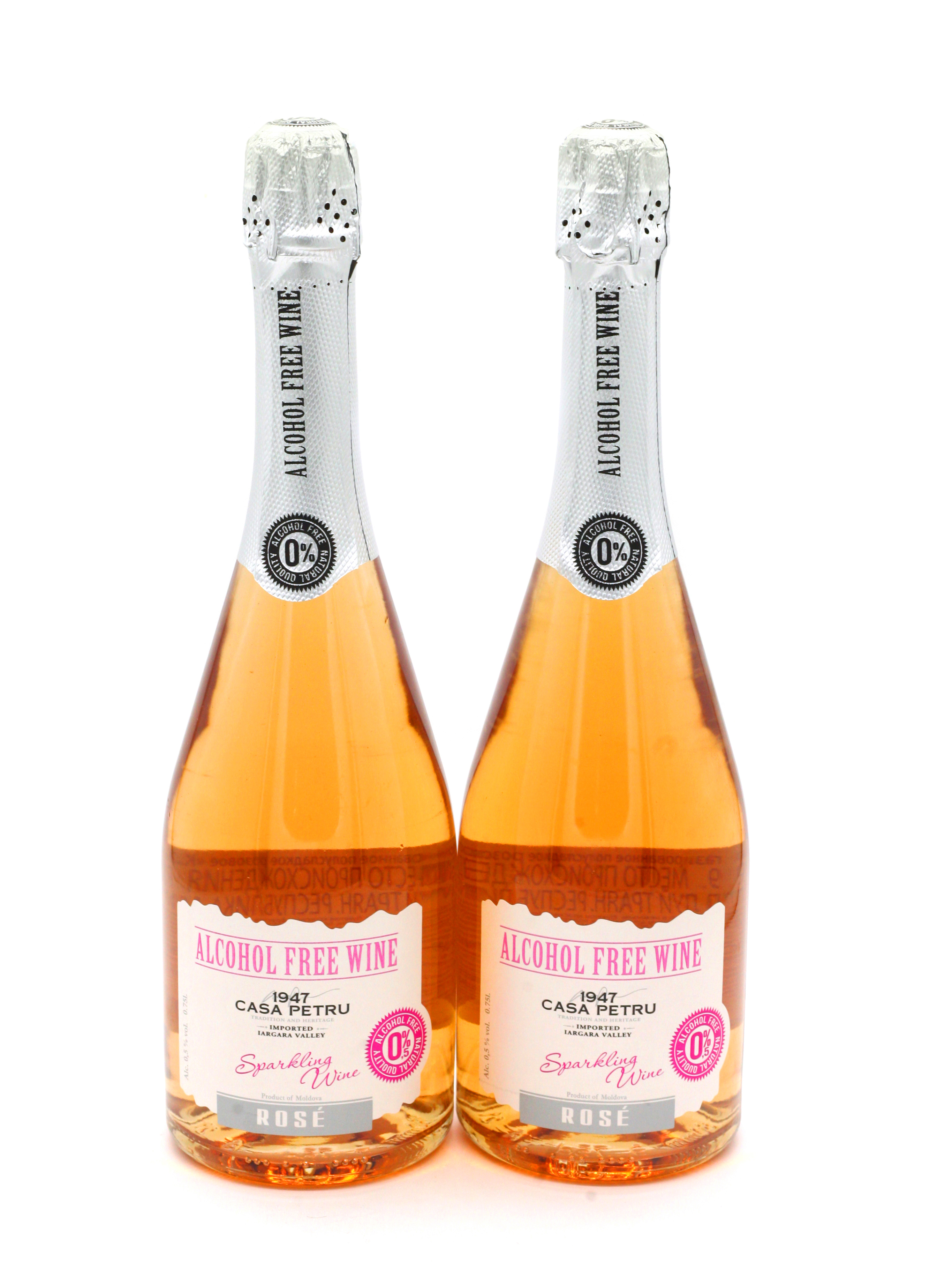 Вино 100% натуральное, безалкогольное "CASA PETRU Розе" розовое полусладкое, игристое (газированное), 0.75л., набор из 2шт, Молдавия