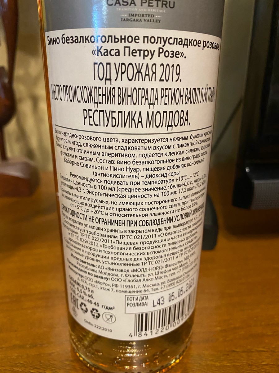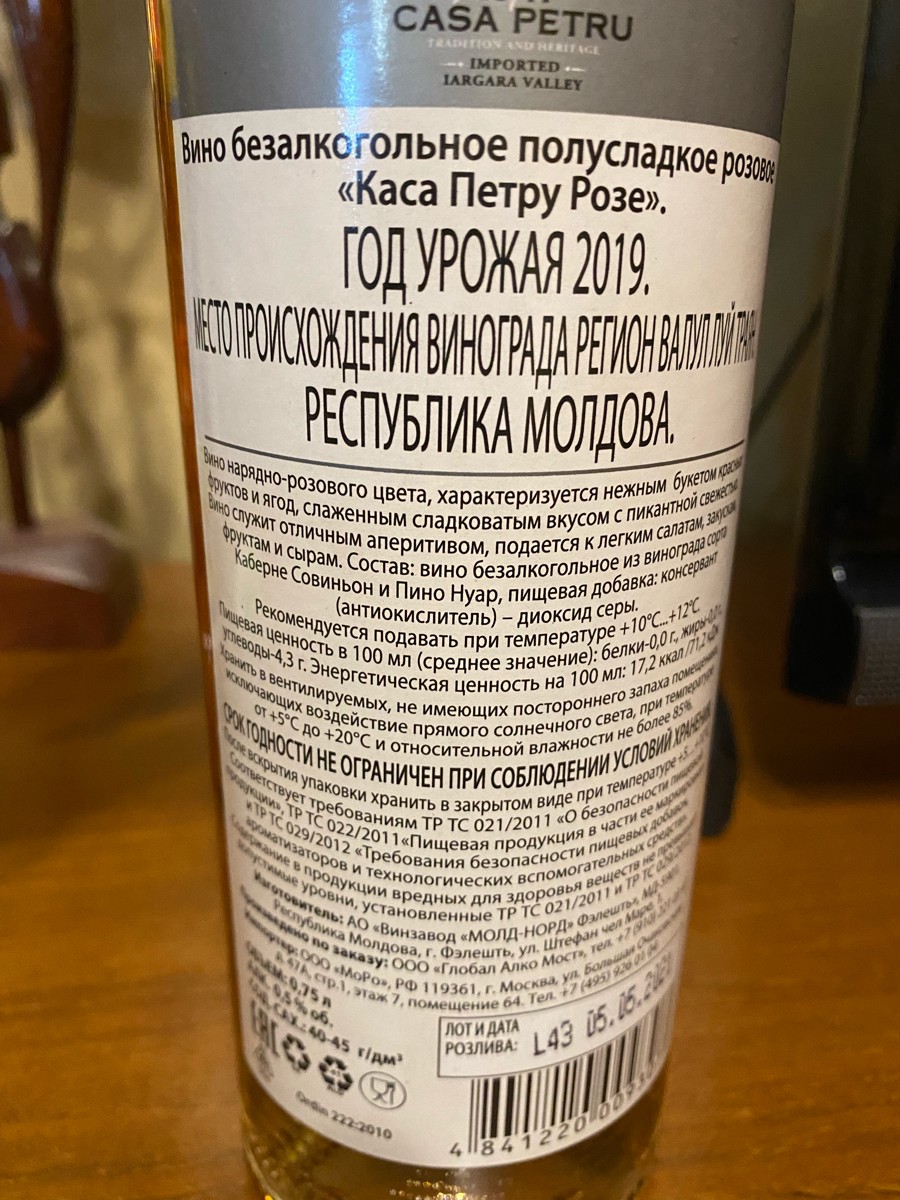 Вино безалкогольное Casa Petru (Каса Петру) Розе" 0,75 розовое полусладкое, набор из 2-ух штук, Молдавия