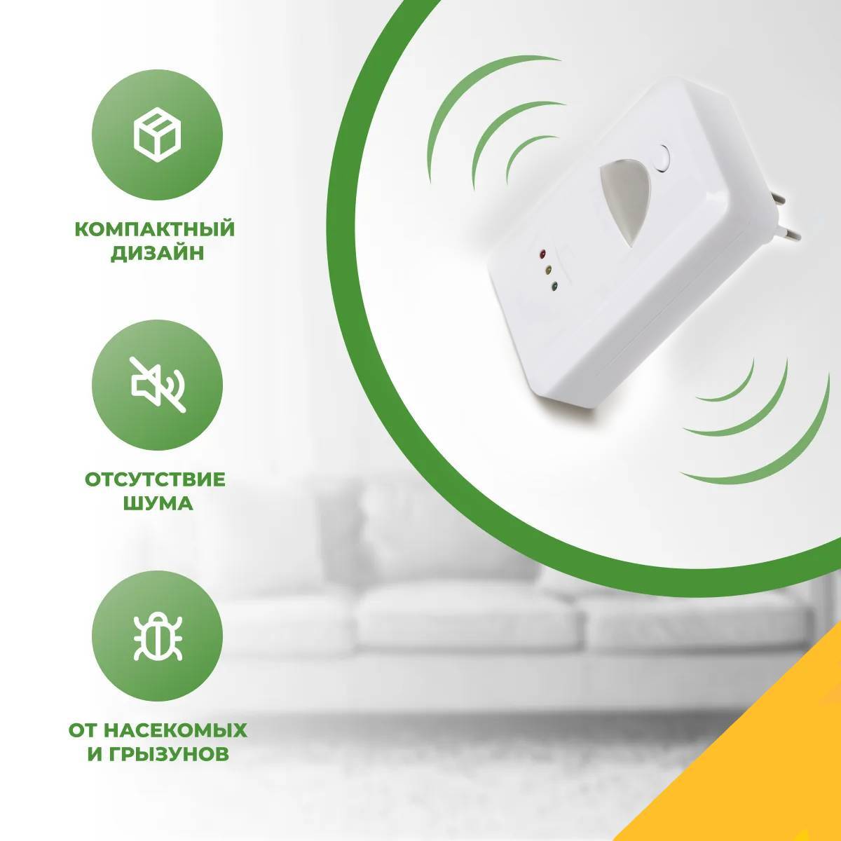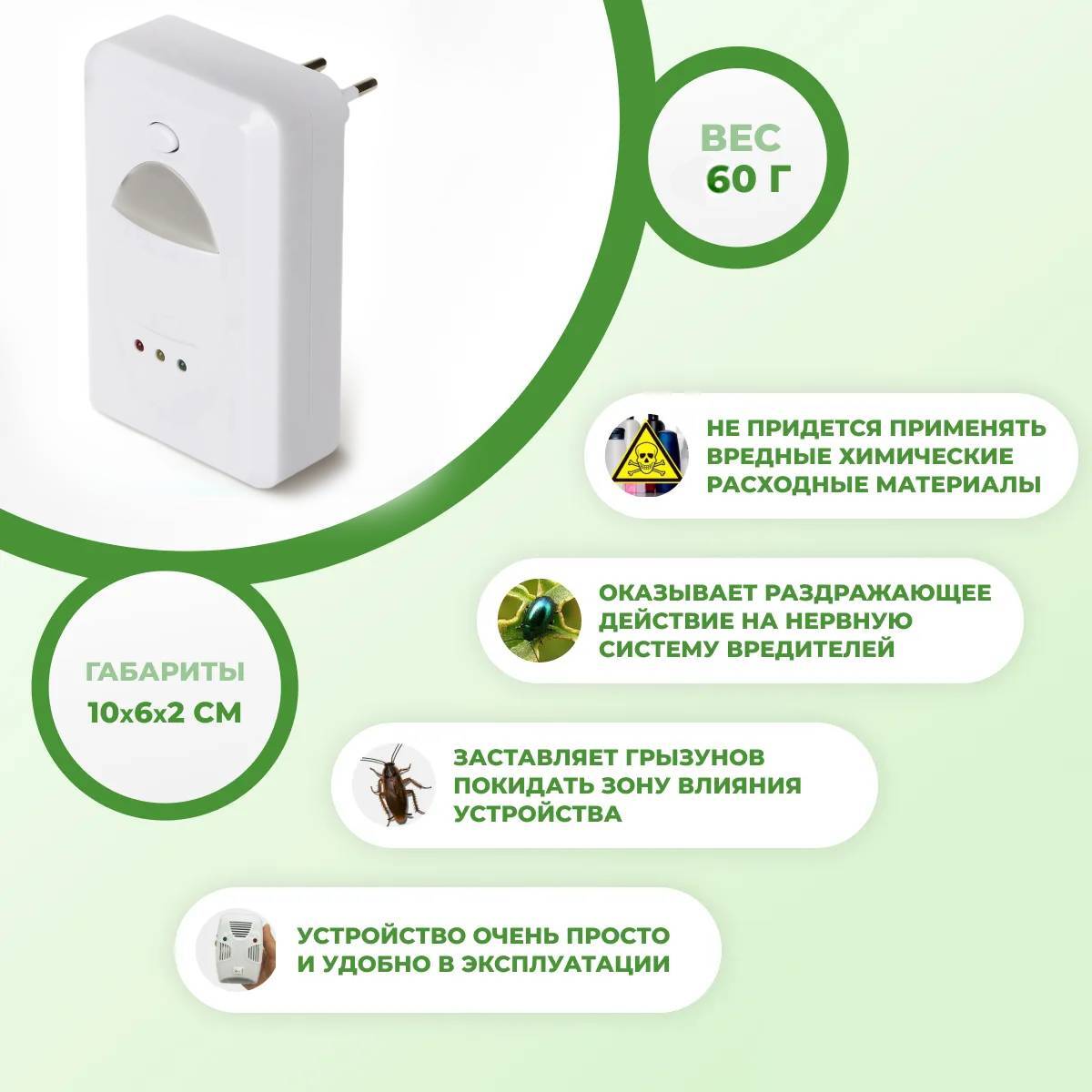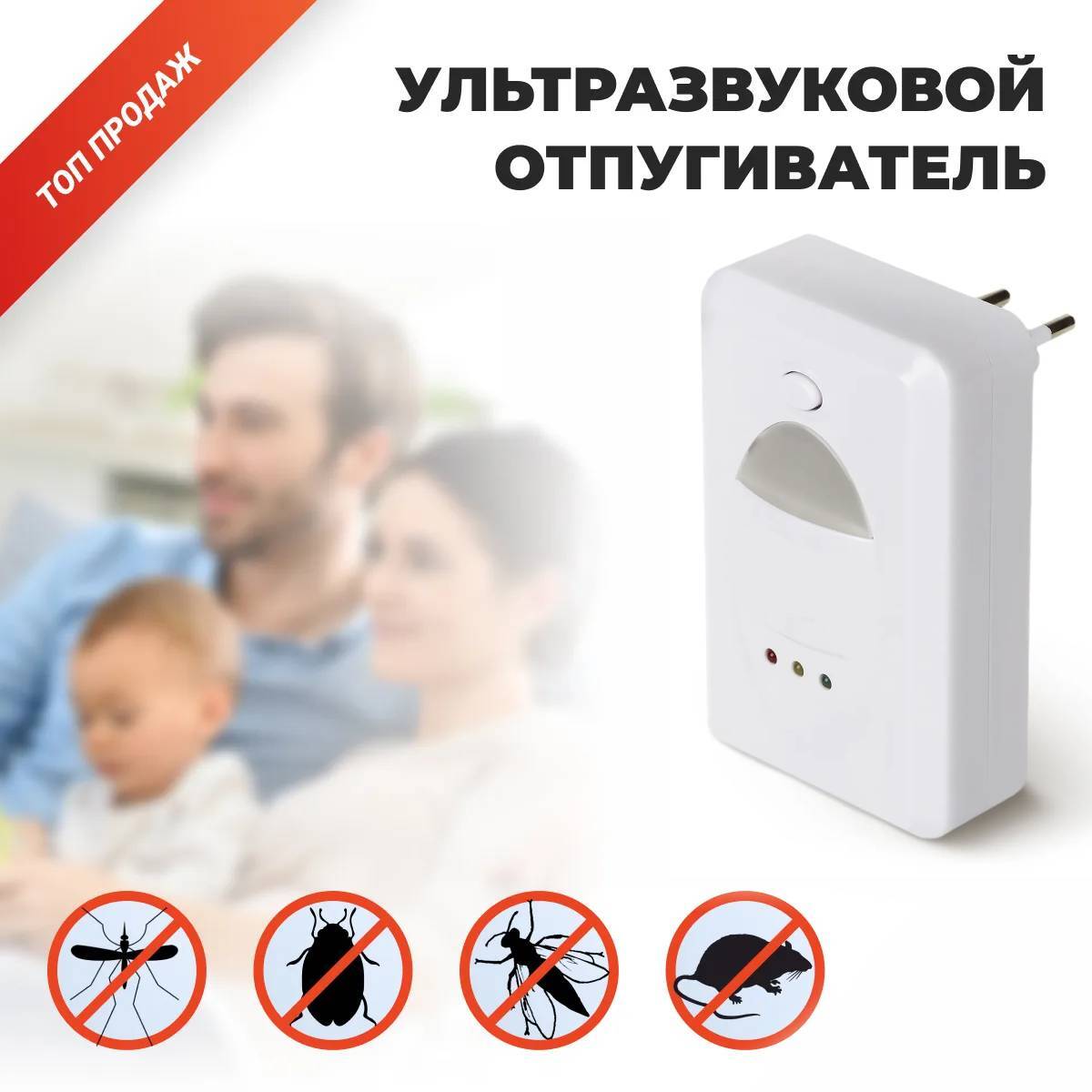 Ультразвуковой отпугиватель грызунов и насекомых / отпугиватель тараканов, прямоугольный