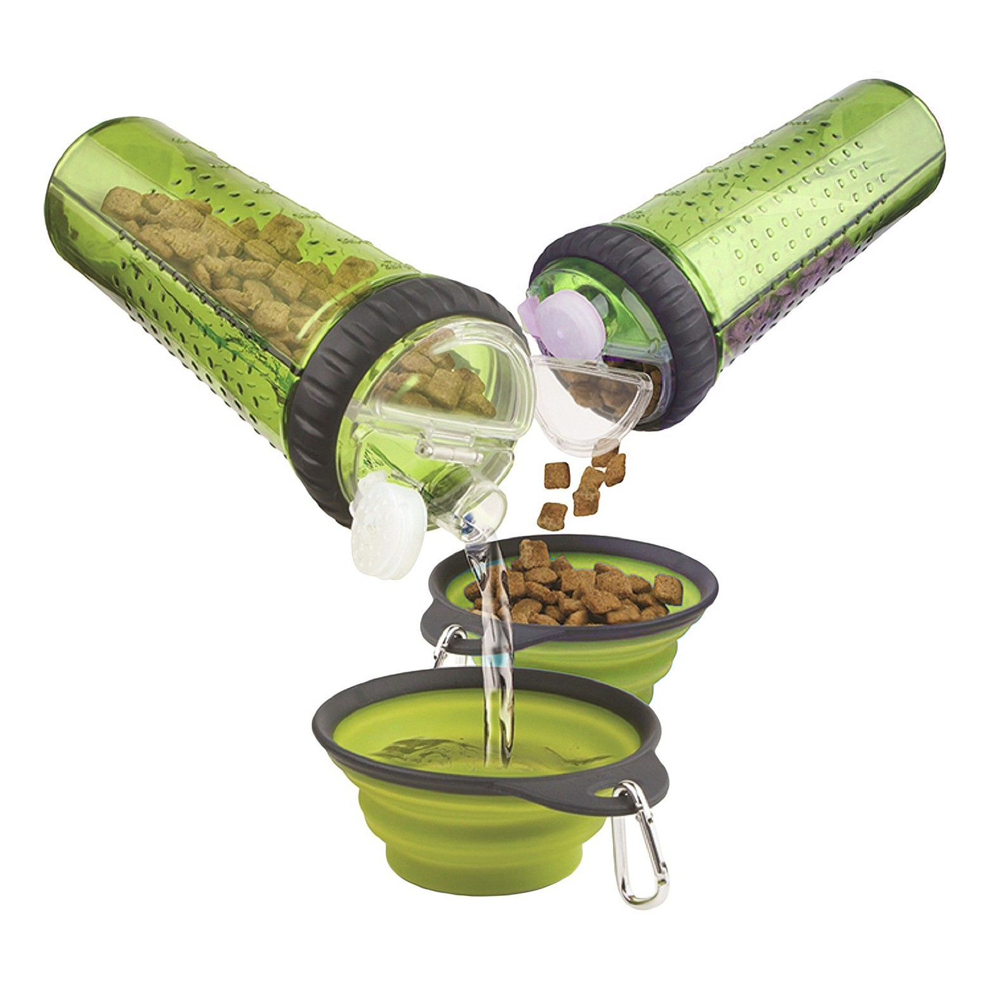 Комплект дорожный для собак и кошек (бутылка 2 в 1 + миска), салатовый