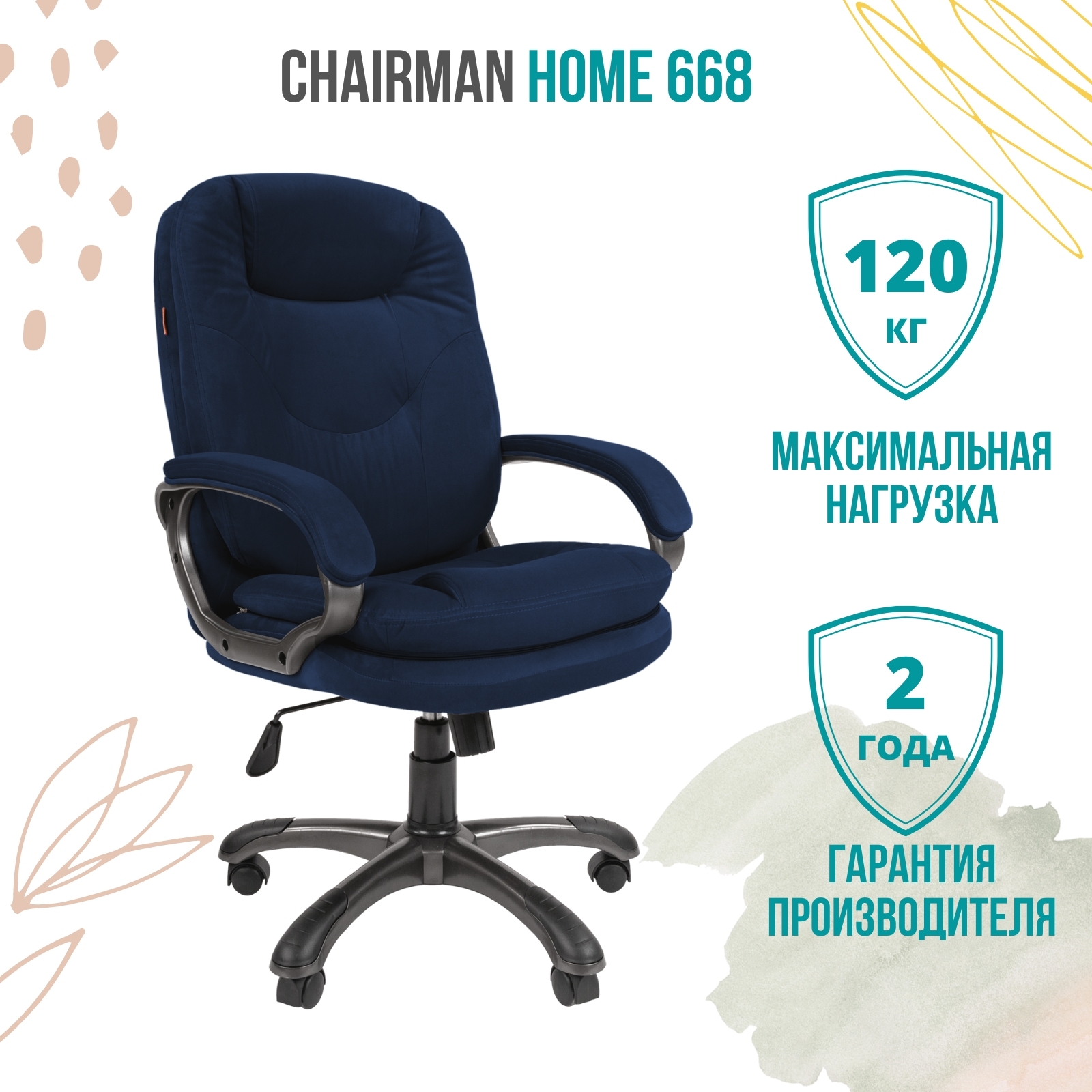 Офисное кресло, Игровое компьютерное кресло Chairman Home 668, Велюр искусственный, синий