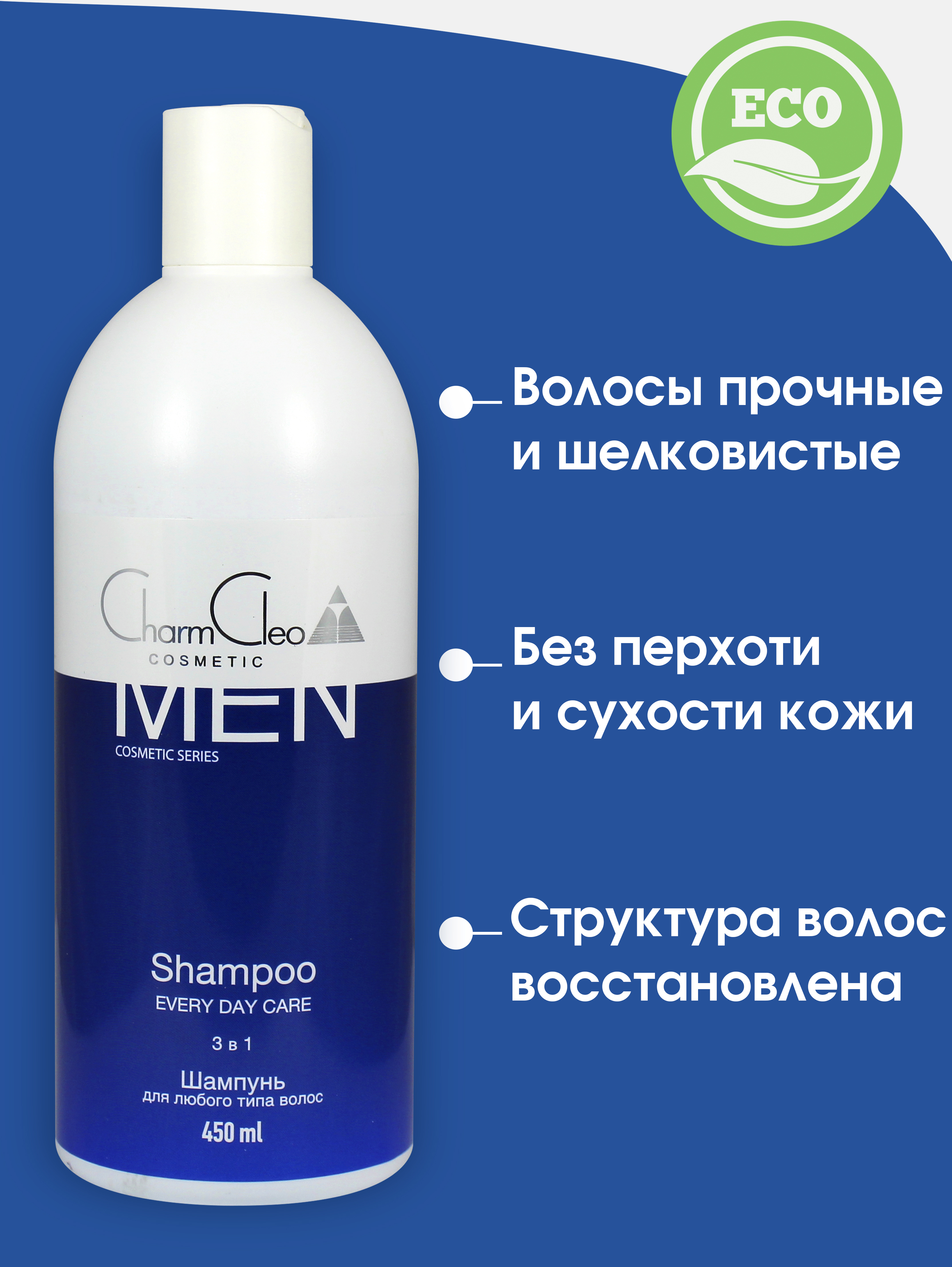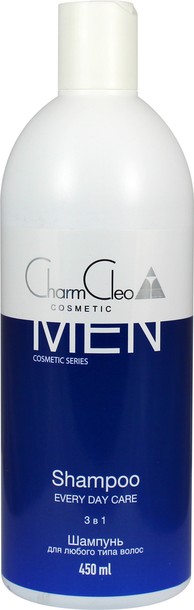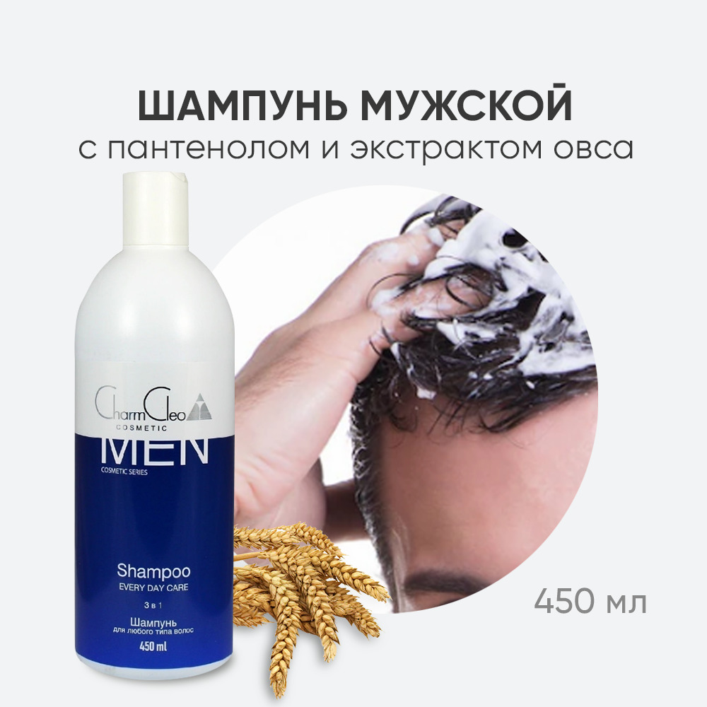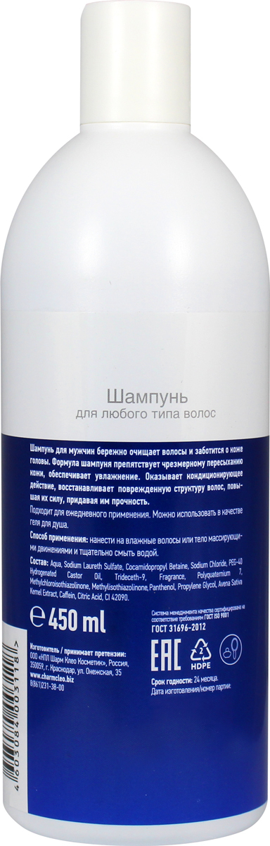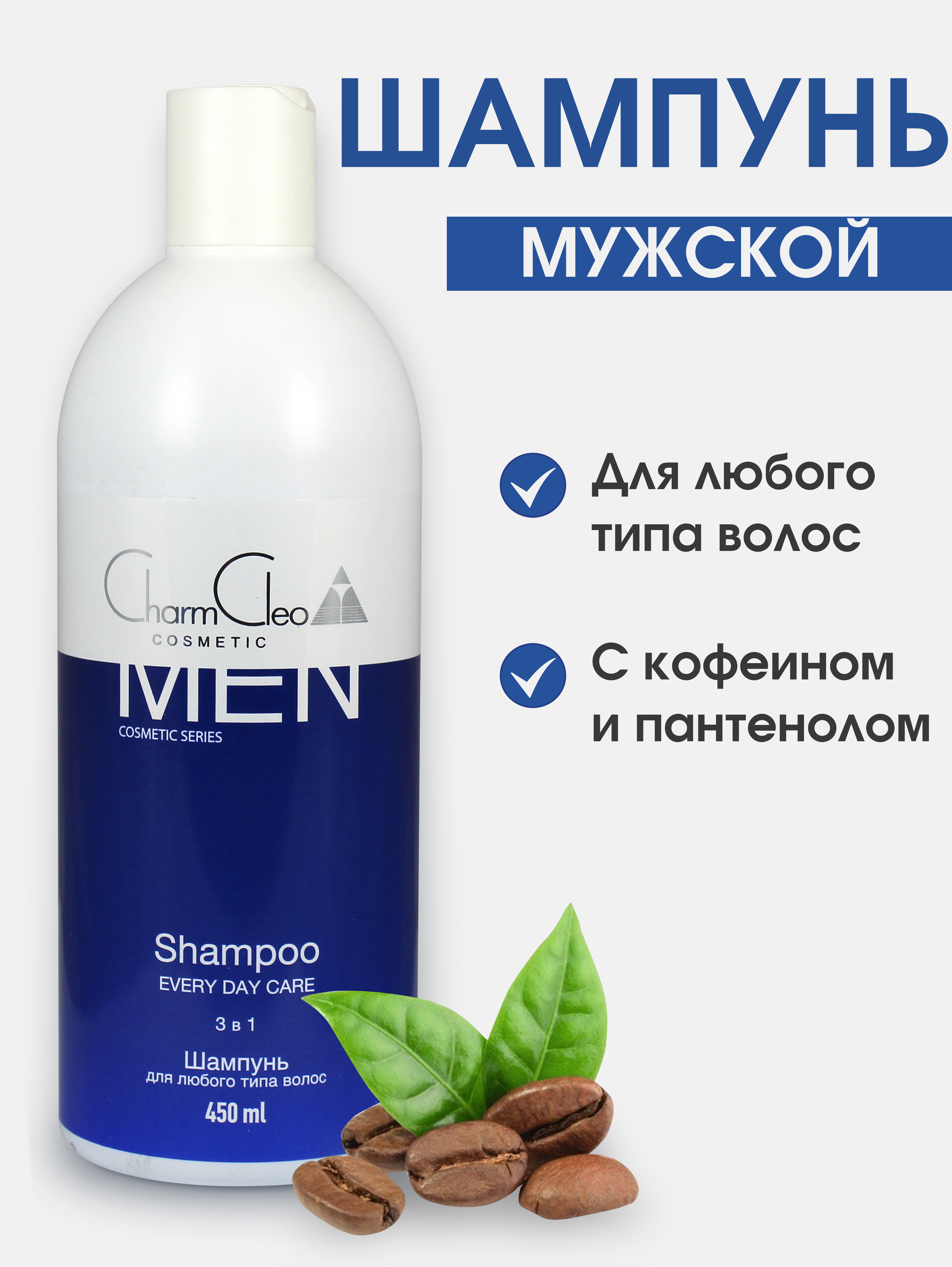 Charm Cleo Cosmetic. Шампунь мужской для волос любого типа 3 в 1 с кофеином и пантенолом 450 мл