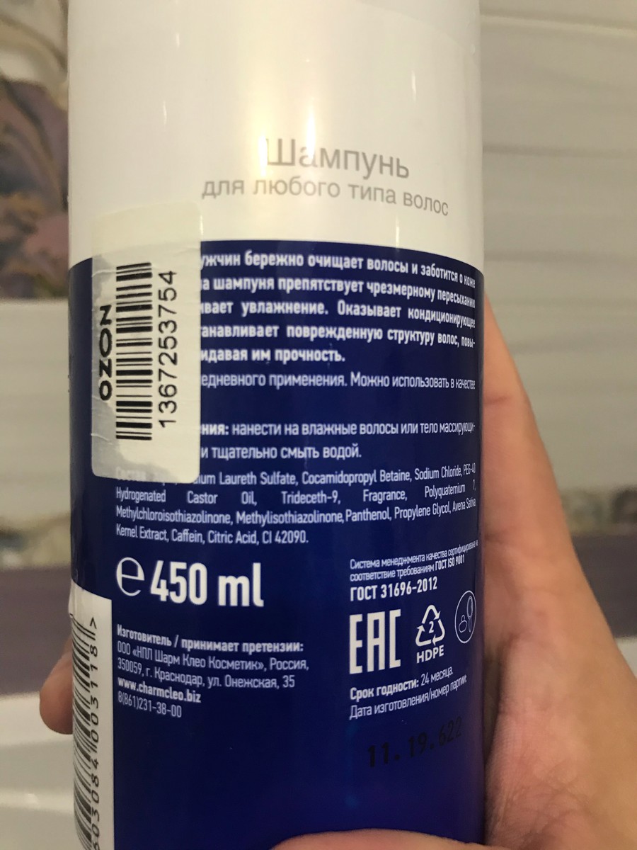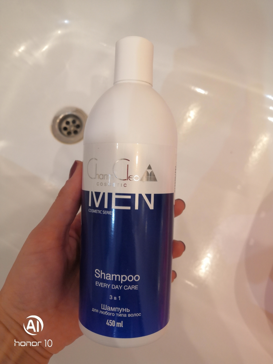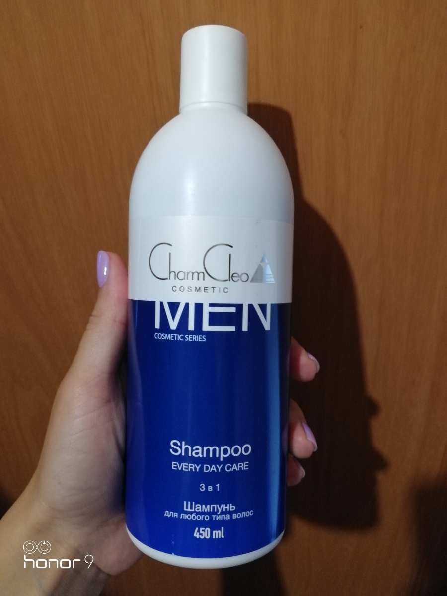Charm Cleo Cosmetic. Шампунь мужской для волос любого типа 3 в 1 с кофеином и пантенолом 450 мл