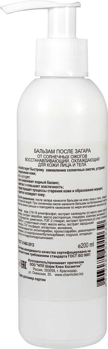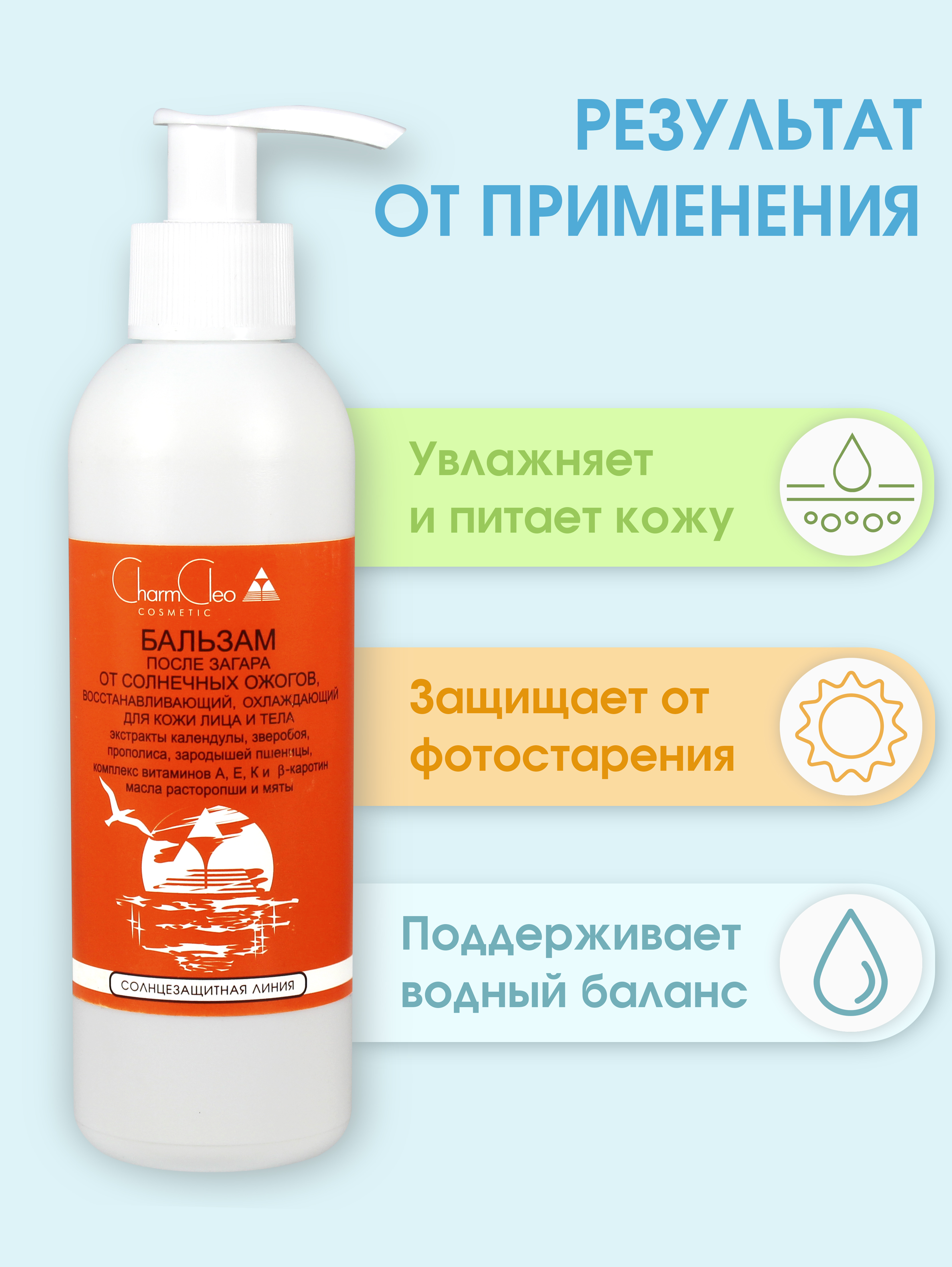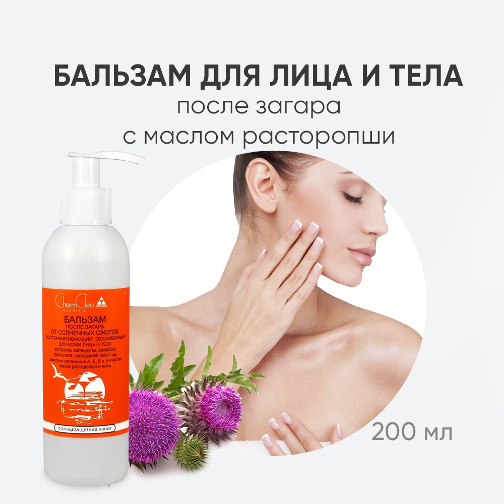 Charm Cleo Cosmetic. Бальзам после загара для лица и тела от солнечных ожогов восстанавливающий, охлаждающий 200 мл