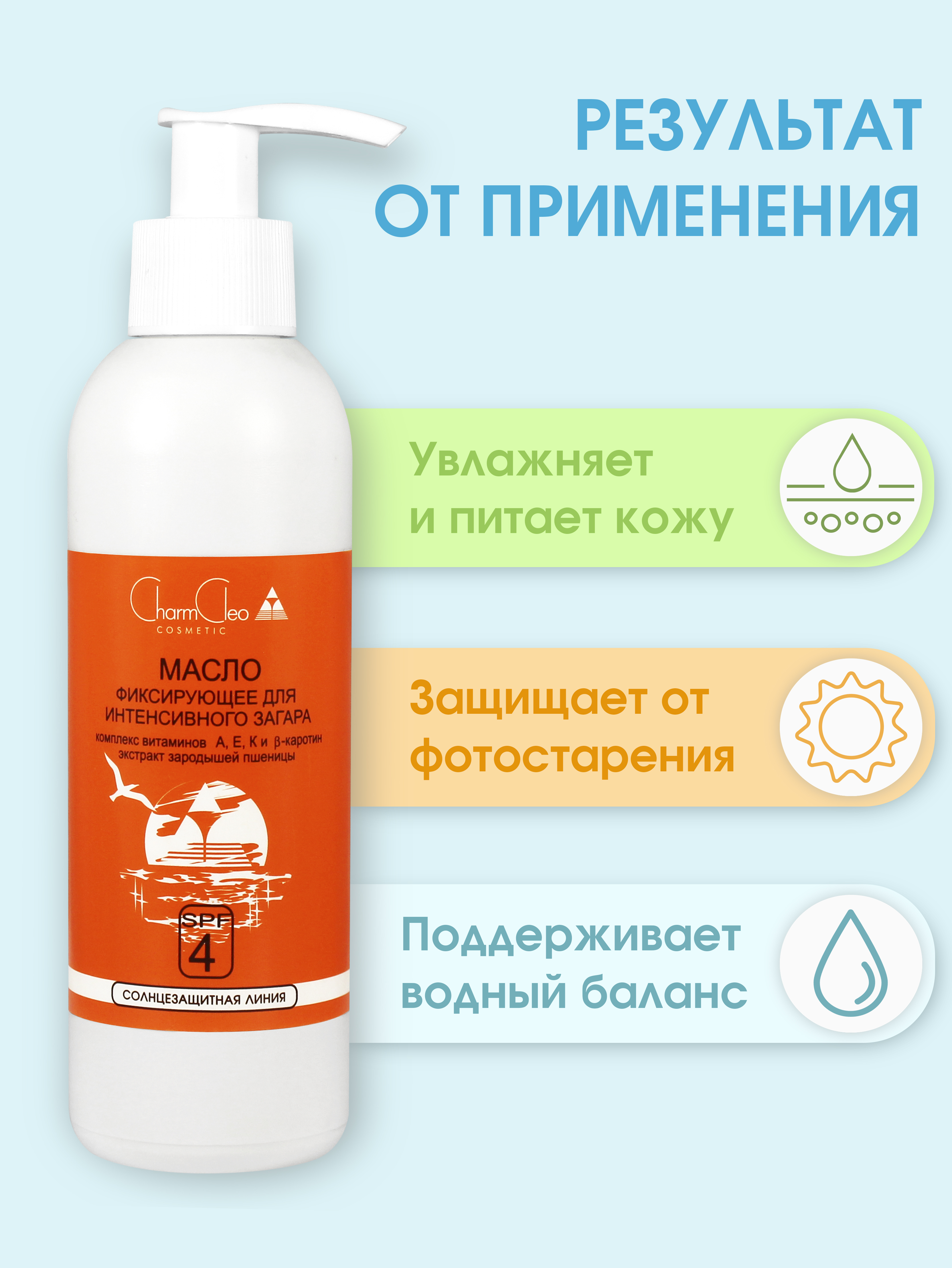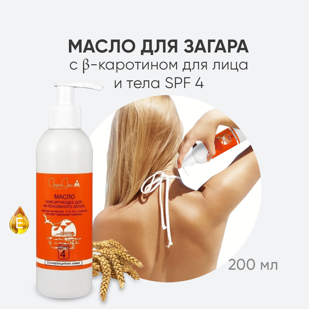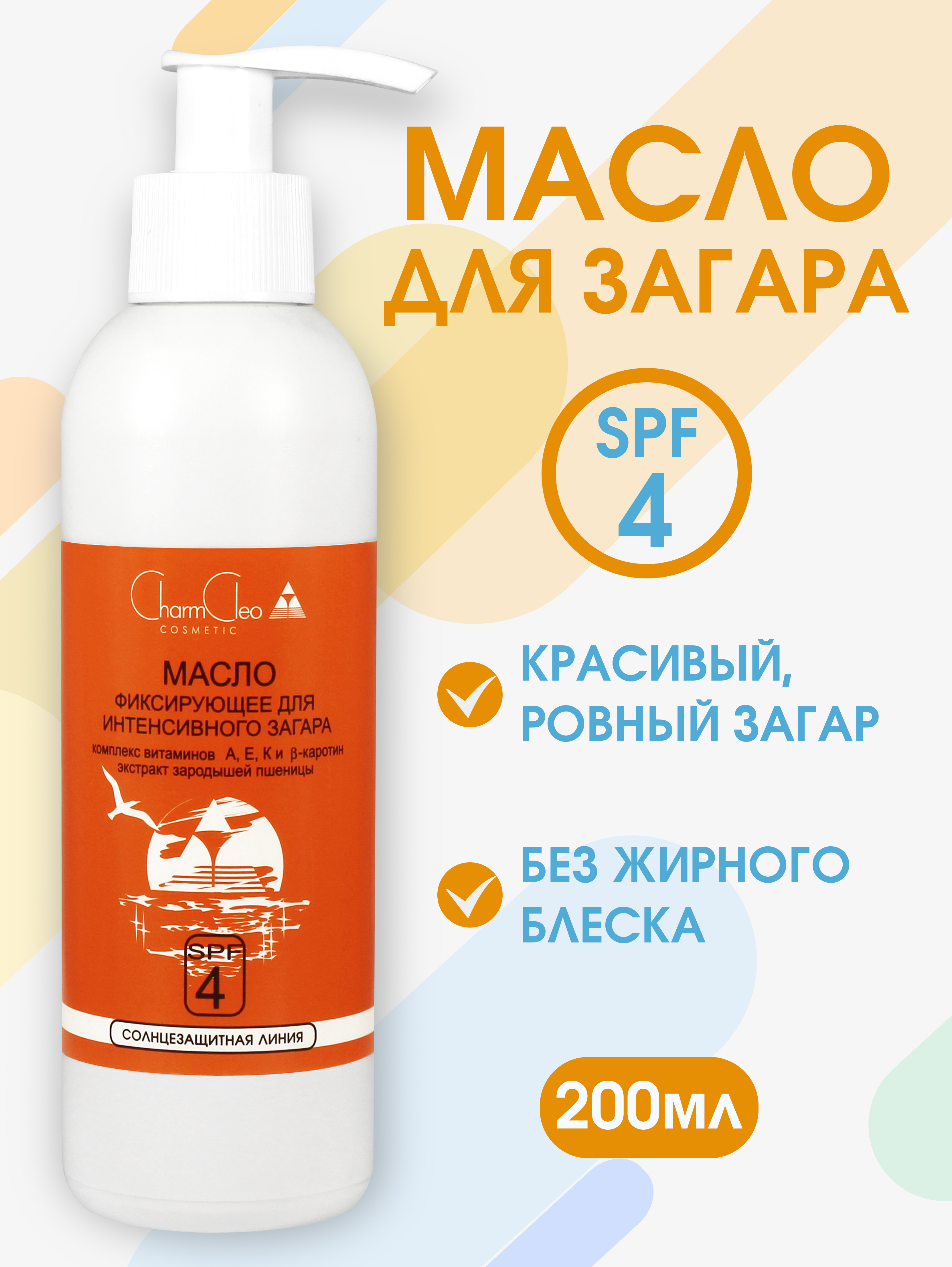 Charm Cleo Cosmetic. Масло для интенсивного загара на солнце для лица и тела фиксирующее SPF 4 200 мл.
