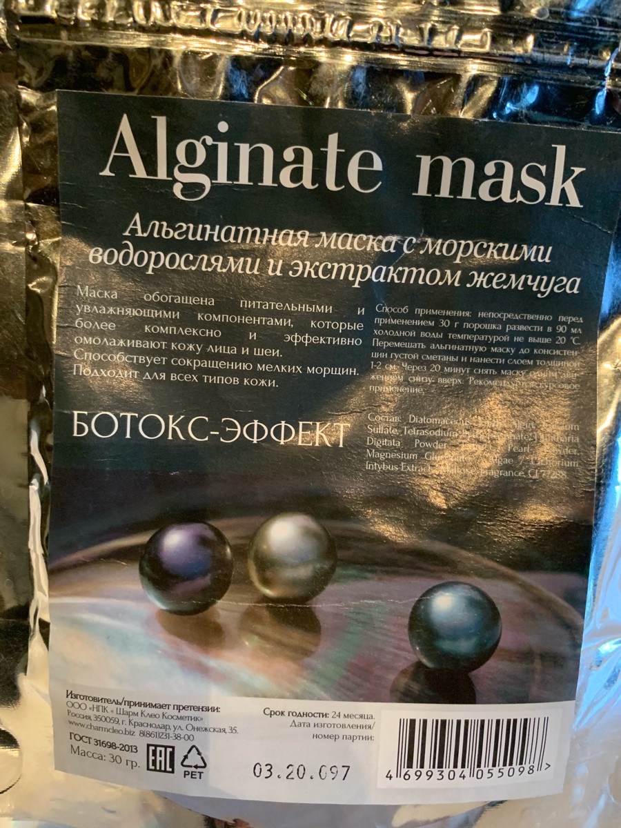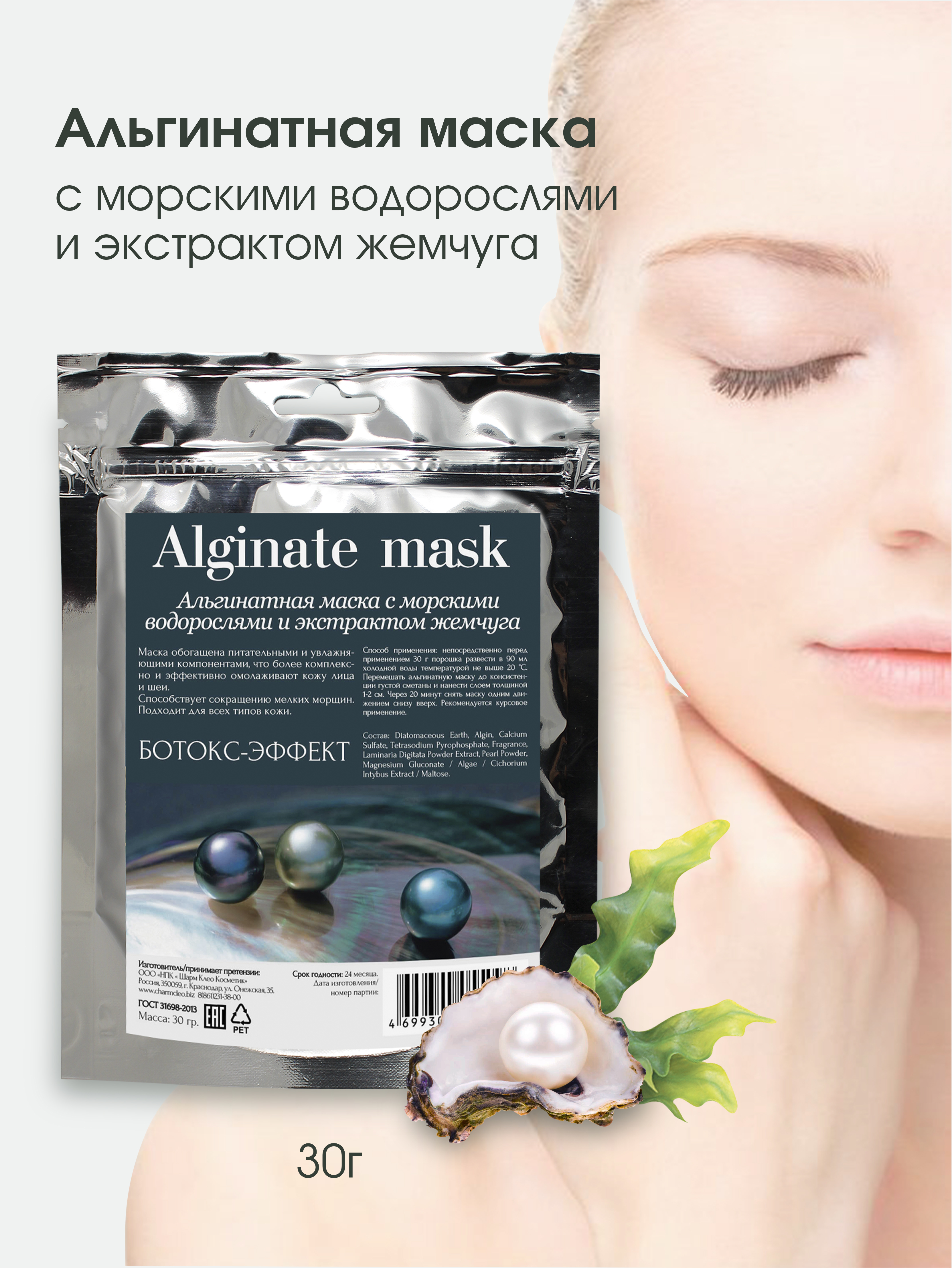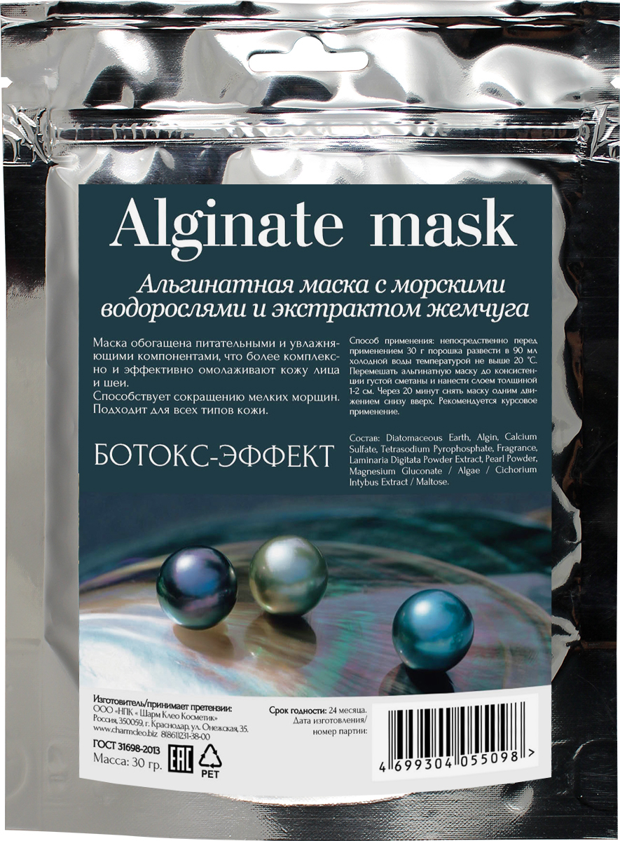 Charm Cleo Cosmetic. Альгинатные маски для кожи лица Ботокс-эффект с морскими водорослями и экстрактом жемчуга 30 гр