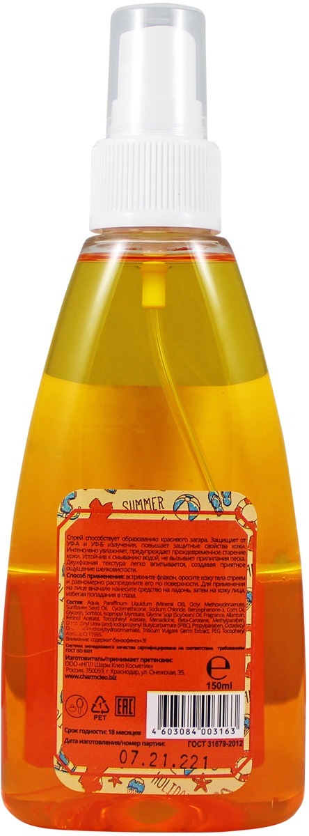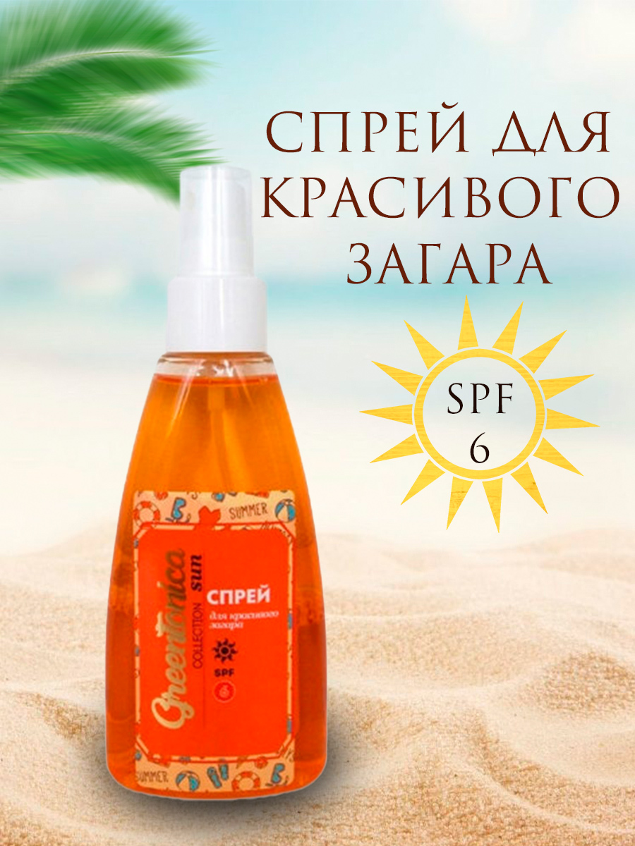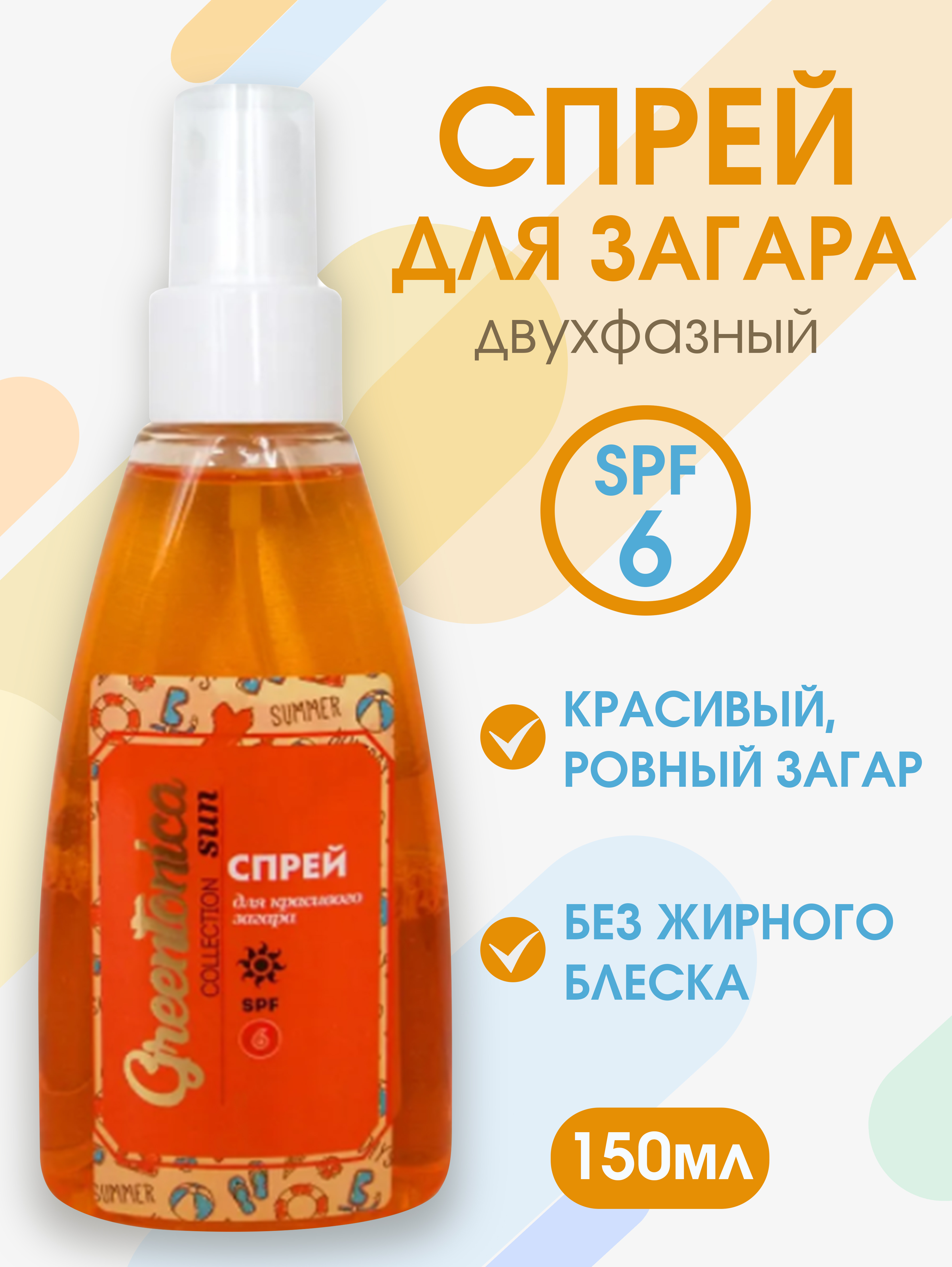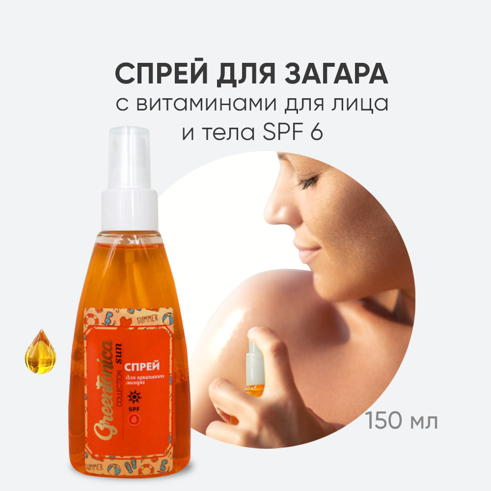 Charm Cleo Cosmetic. Спрей для загара на солнце для лица и тела SPF 6 150 мл. GreenTonica Collection